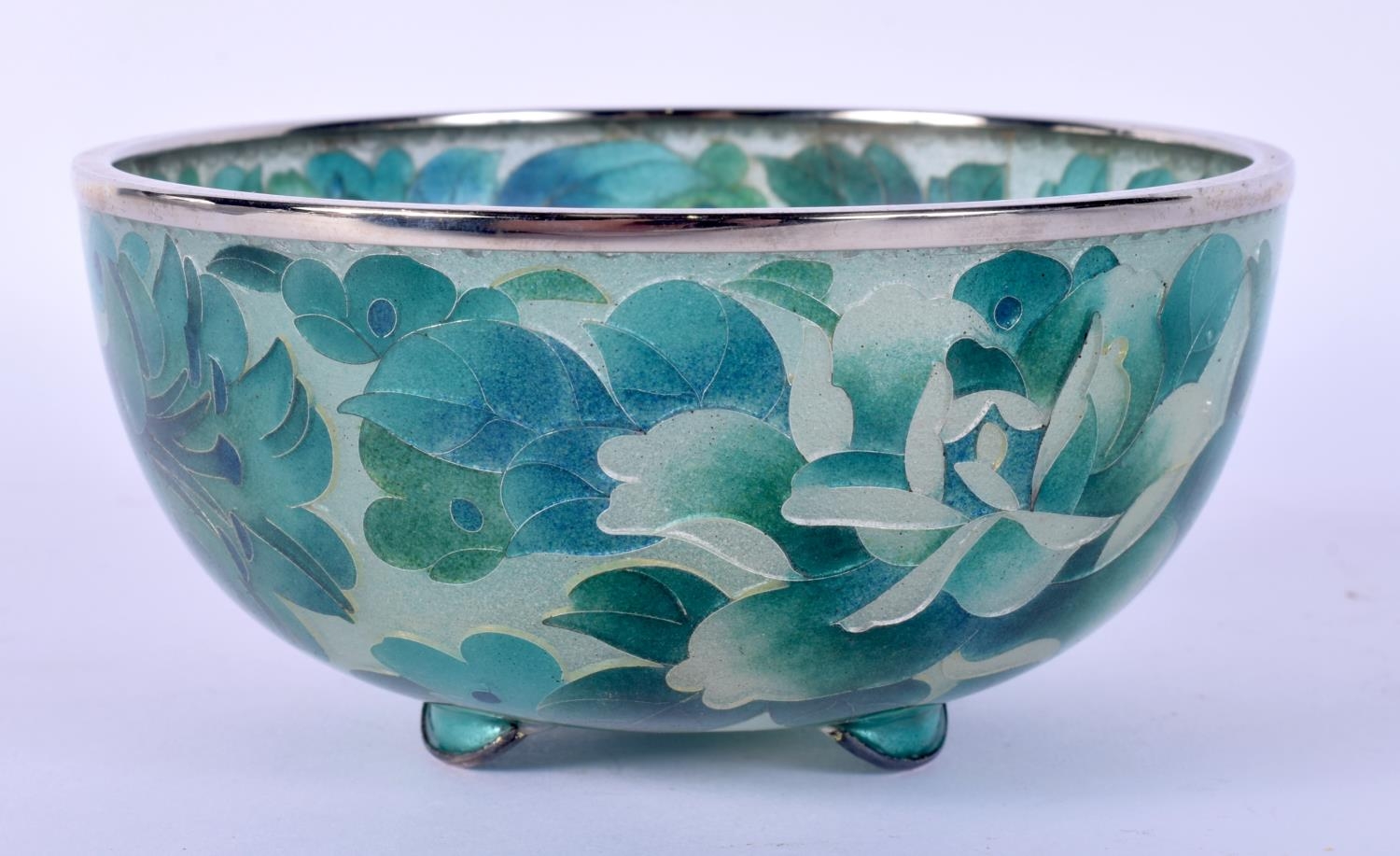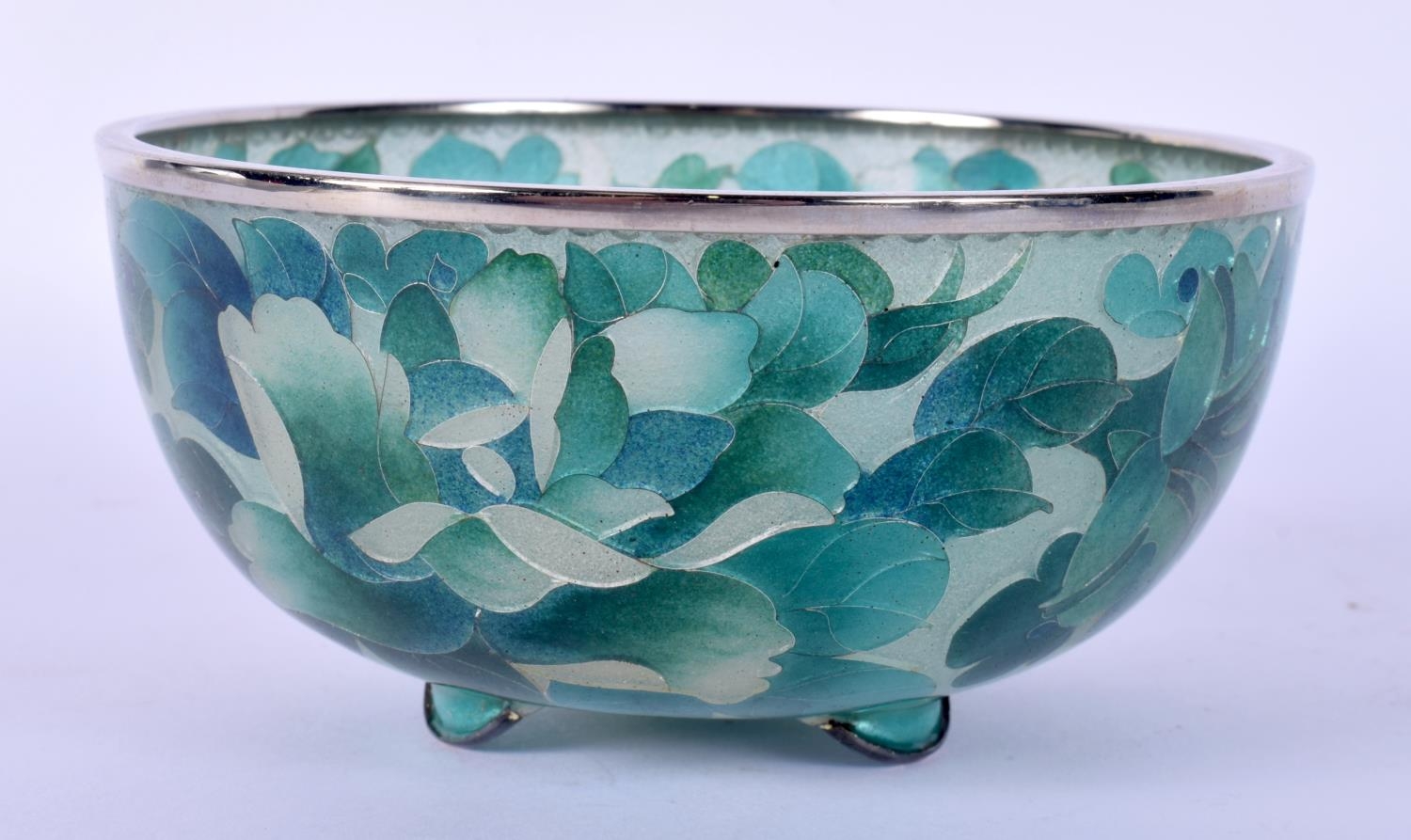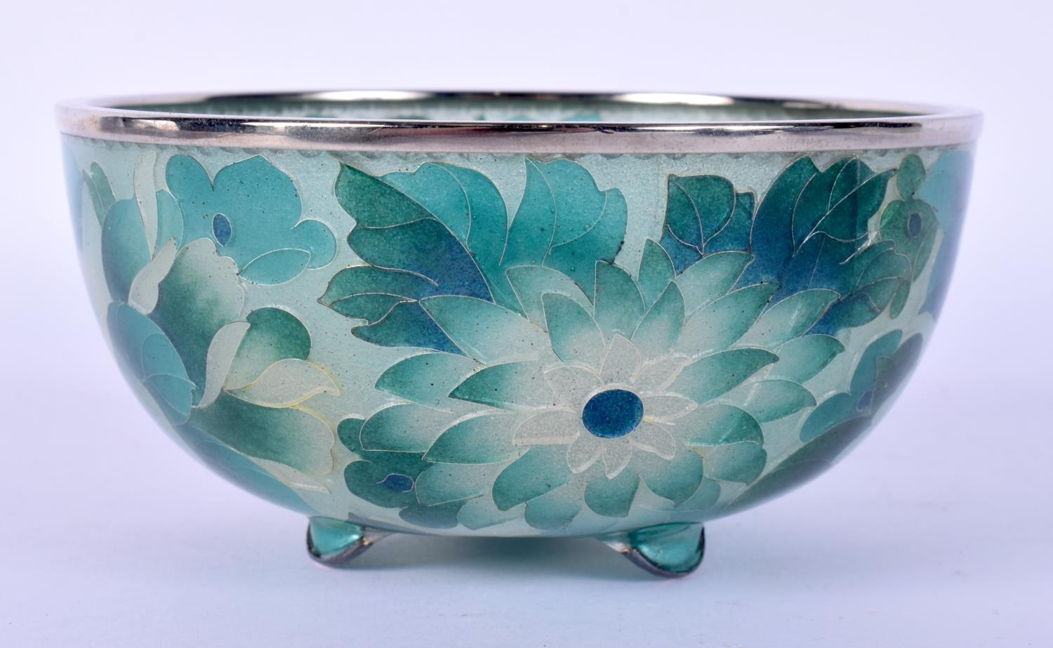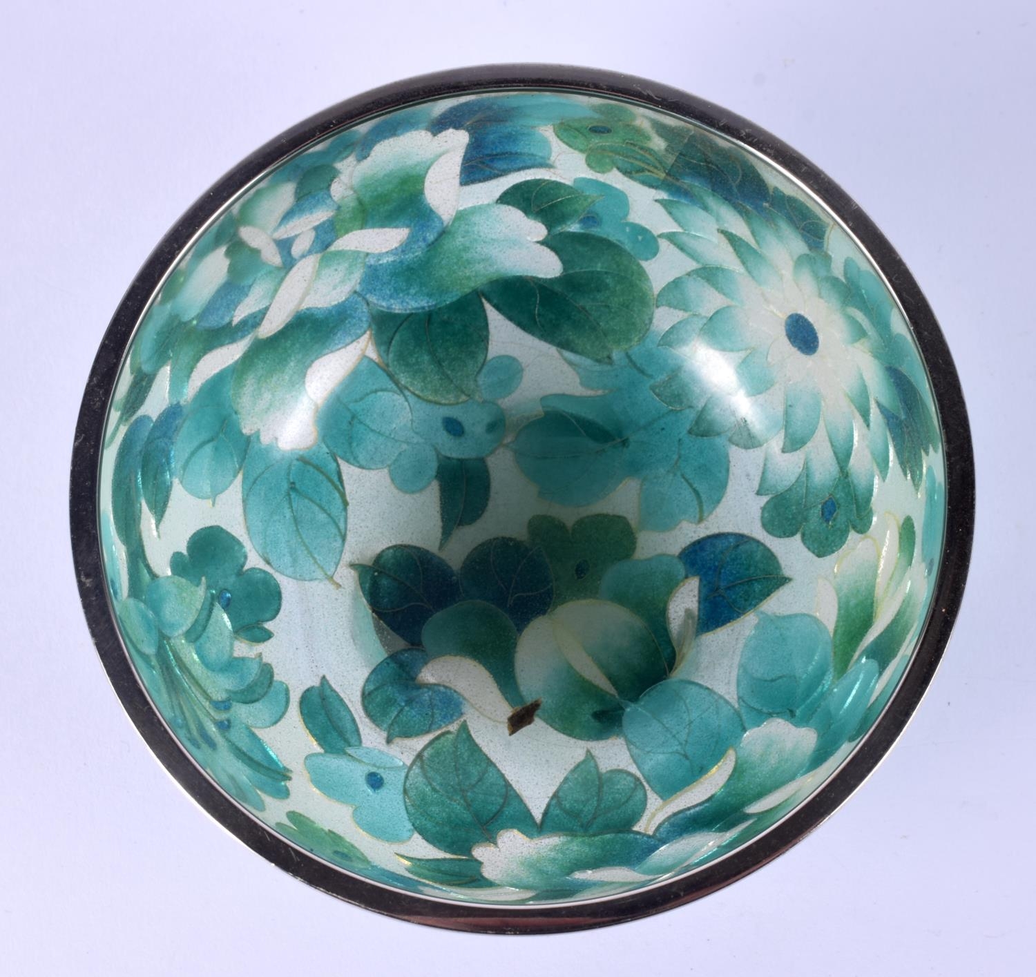 AN EARLY 20TH CENTURY JAPANESE MEIJI PERIOD PLIQUE A JOUR ENAMEL BOWL decorated with foliage. 10 cm diameter.