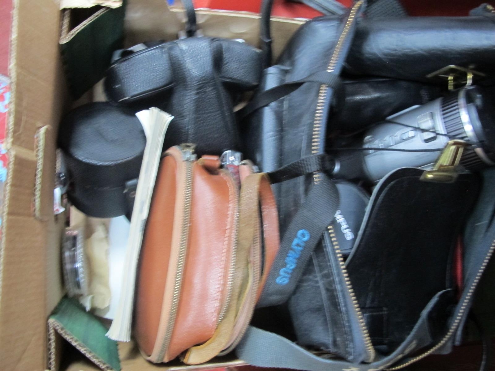 Cameras, Olympus OM-4 and OM-1,Vivitar lens, Paillard Bolex 8, Mpeg movie ex, etc.