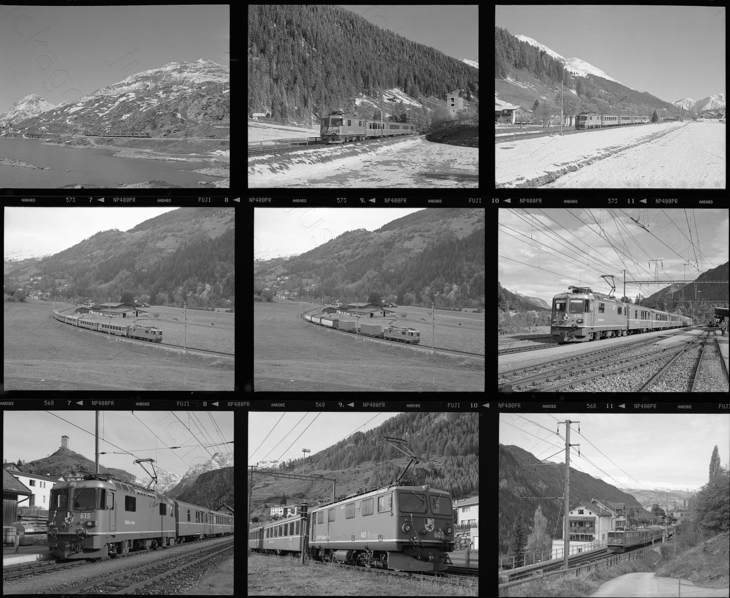 Railway. Overseas Traction-Switzerland. A good quality selection of approx. 143, medium format, black and white negatives, stored in negative sleeves. The negatives feature modern traction electric locomotives and units in SWITZERLAND, including some narrow gauge and Rhaetian Railway photographs. There are some fine photographs in this lot, sadly no captions, however, they are sold with copyright. Sample illustrated.