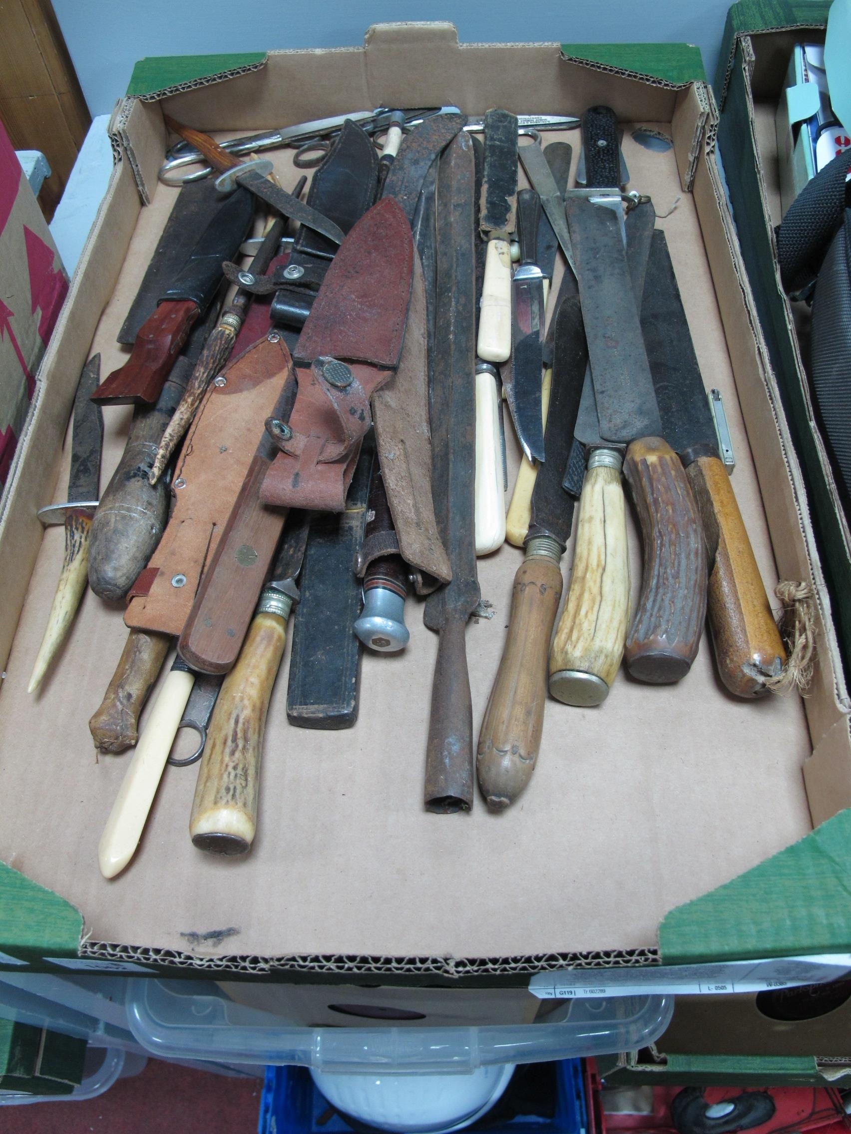 Knives - William Rodgers, wood, Mills, Long, Mosley, and many others, varying sizes and conditions - scissors, skewers:- One Box.