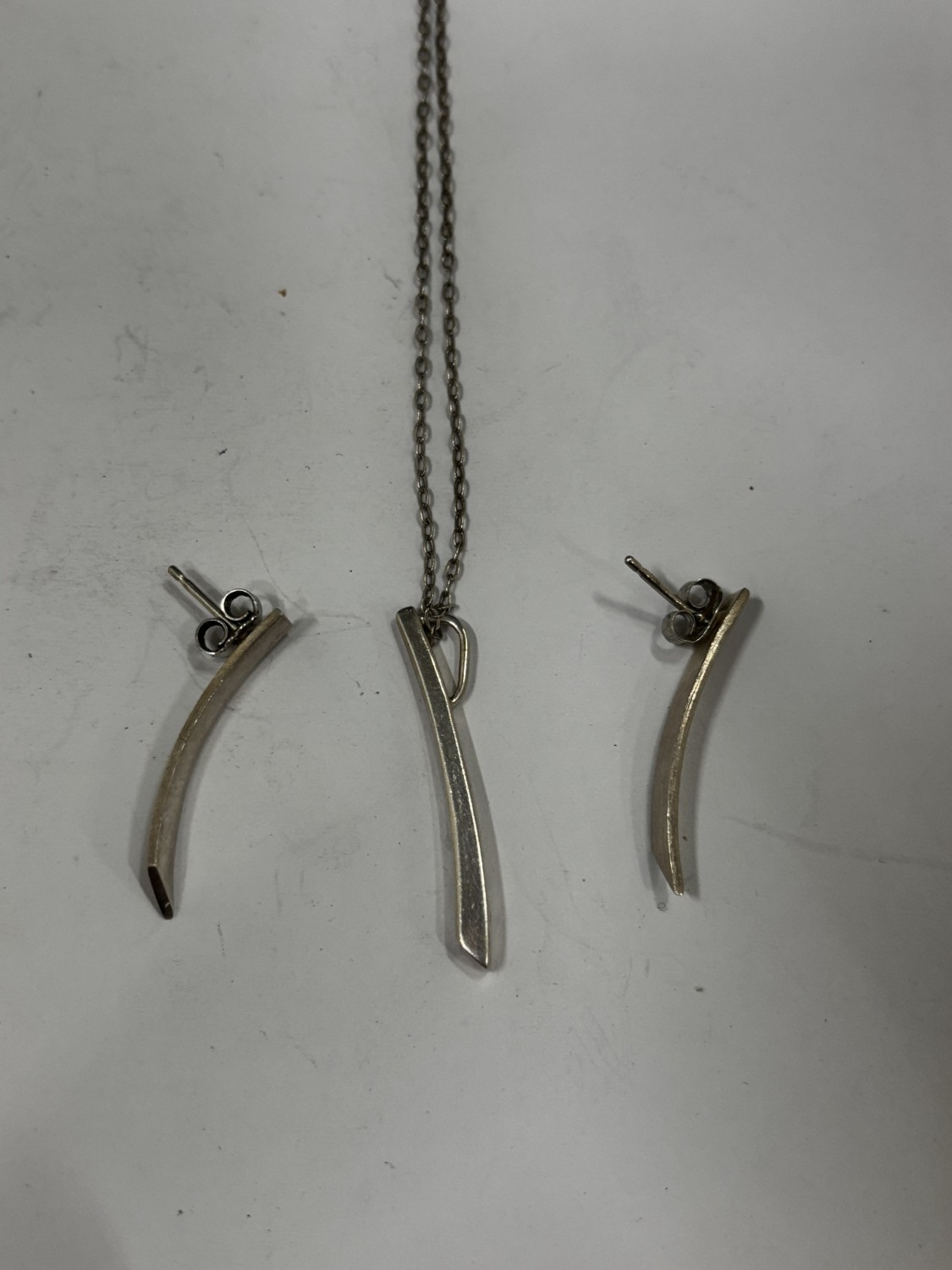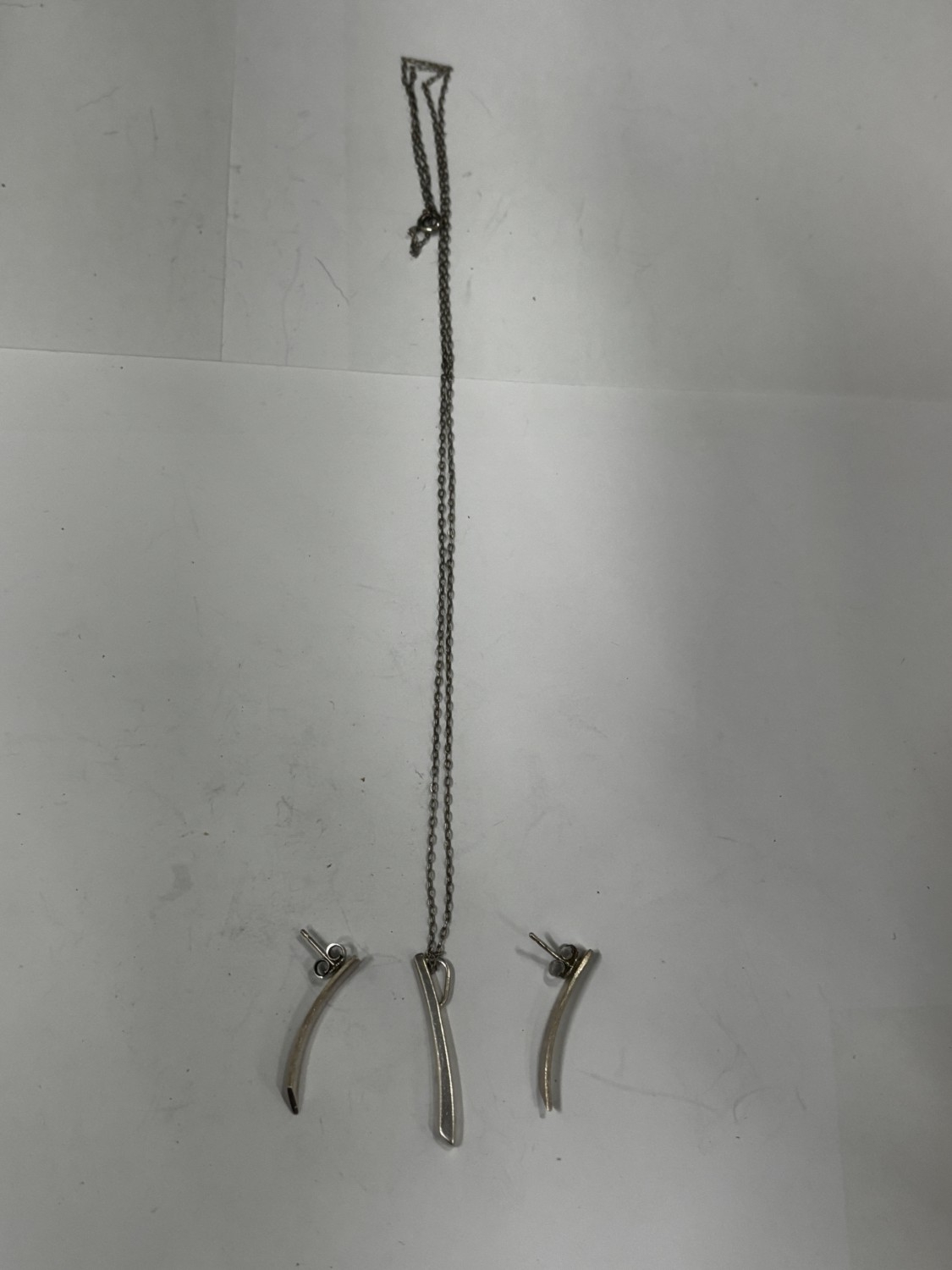 A SILVER NECKLACE AND MATCHING EARRING SET