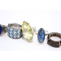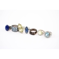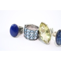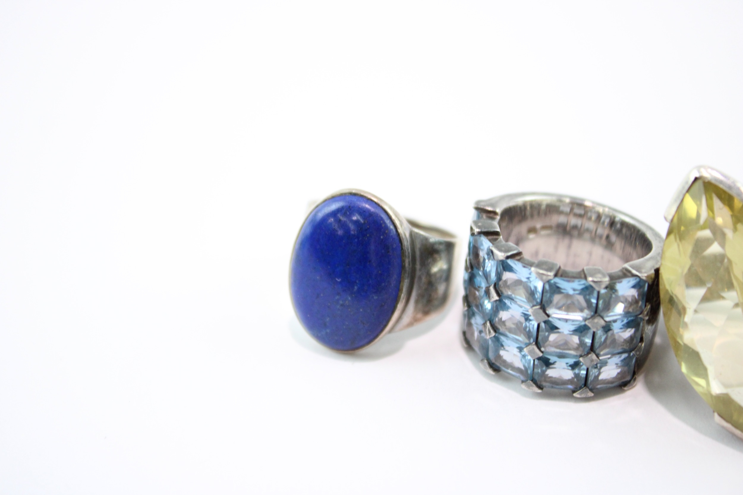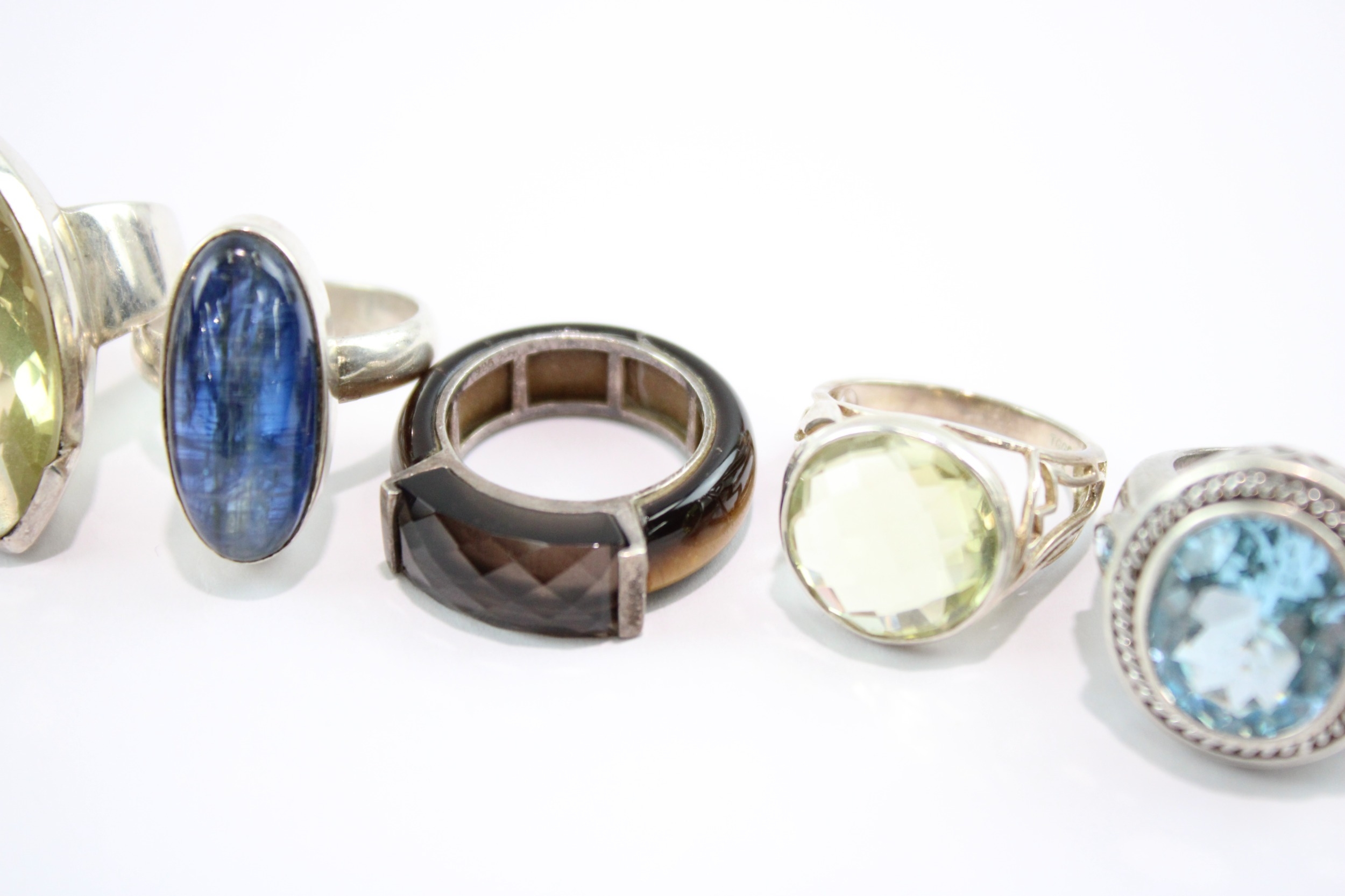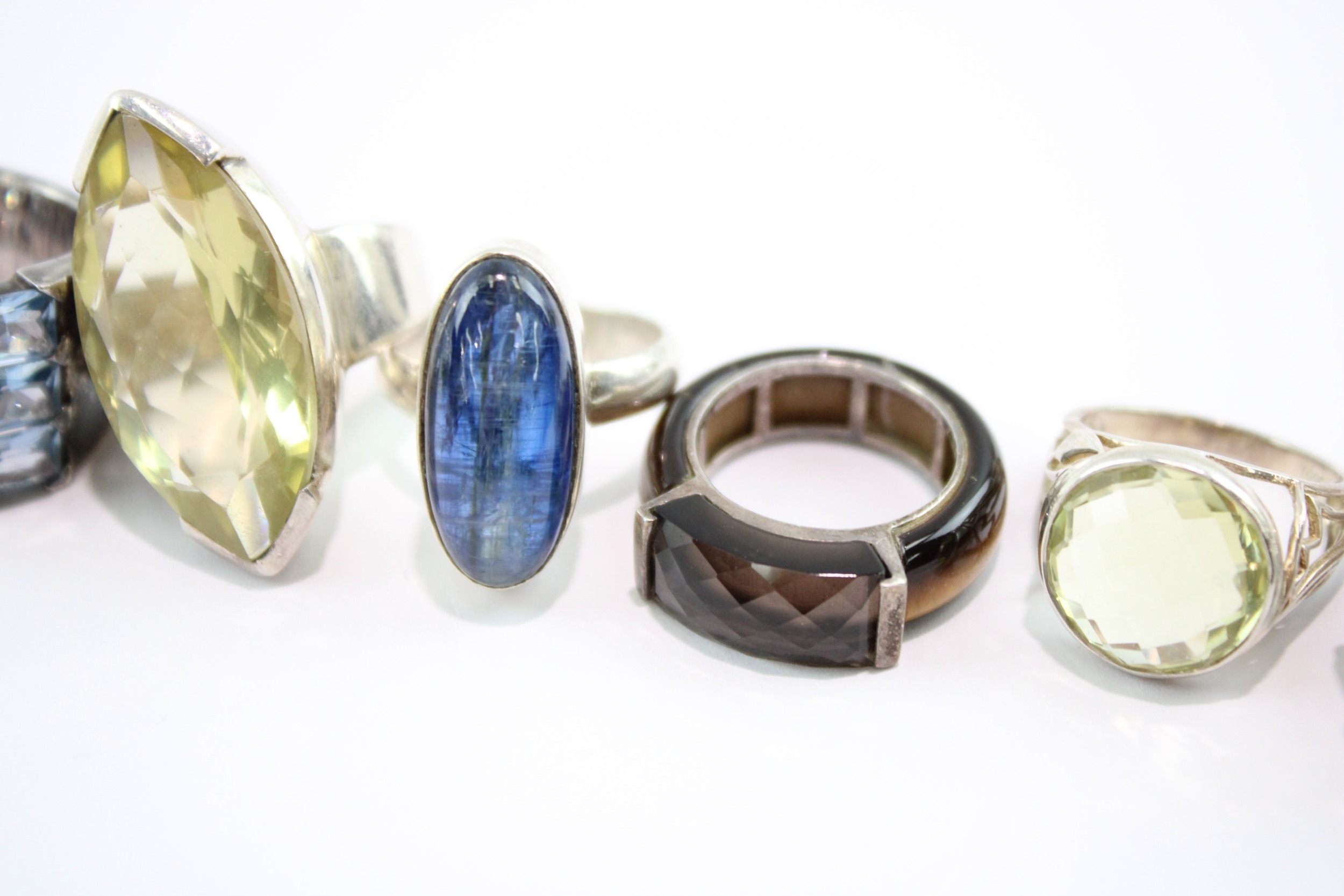 Collection of Sterling Silver Gemstone Rings, inc. Tigers Eye, Lapis Lazuli x 7 (77g)