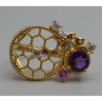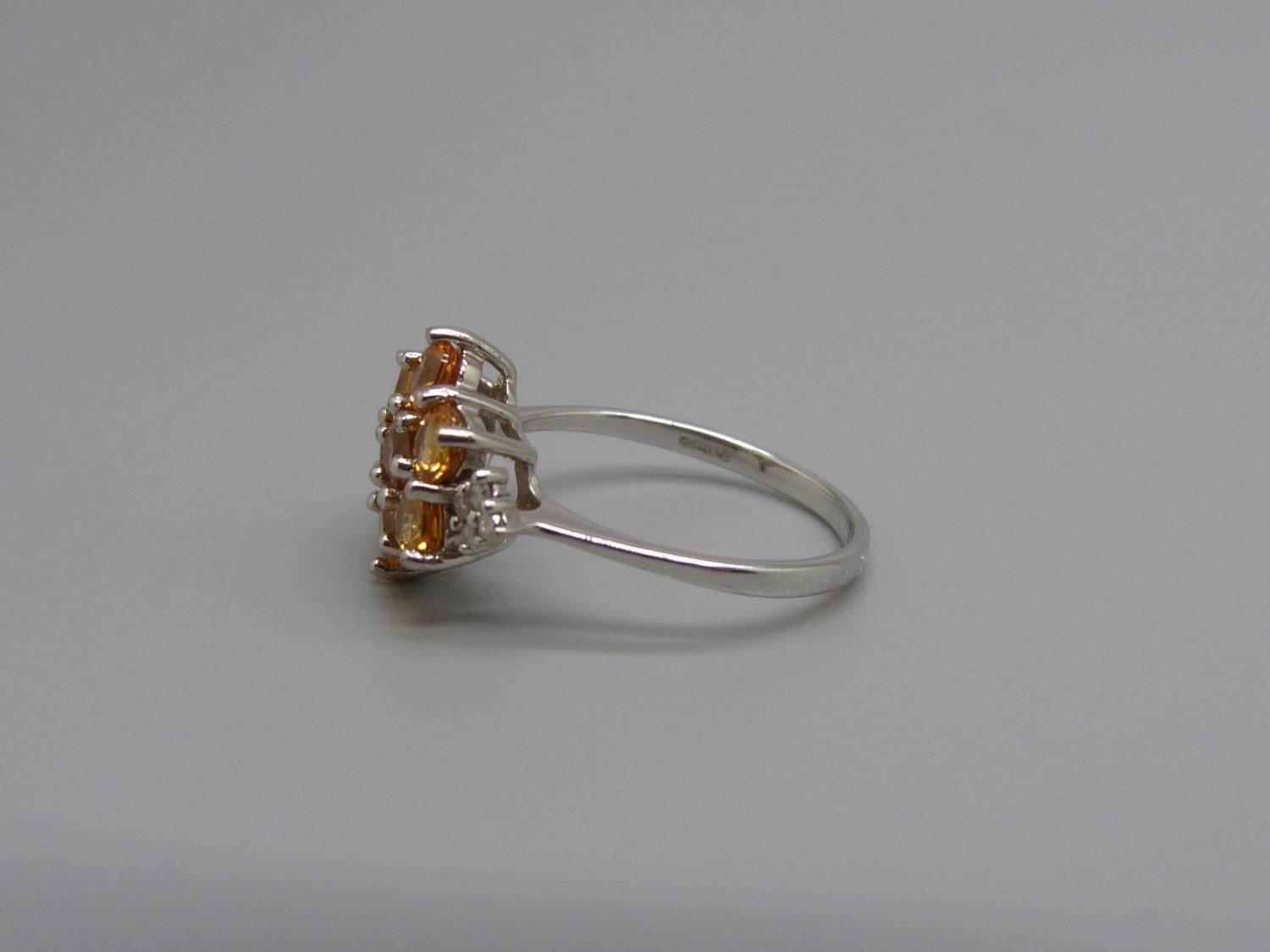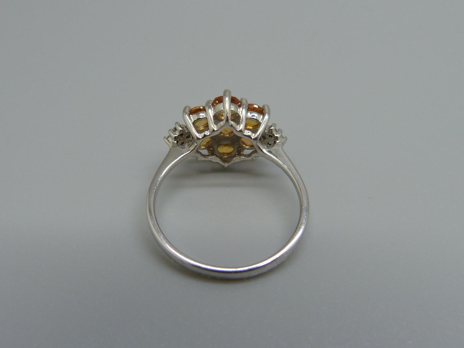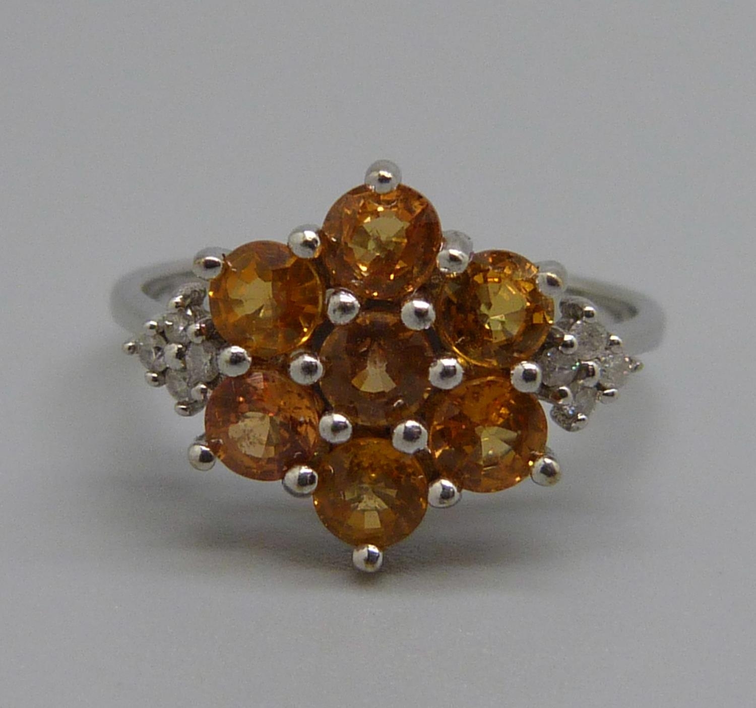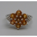 A 9ct gold, Madeira citrine and diamond cluster ring, 2.6g, N