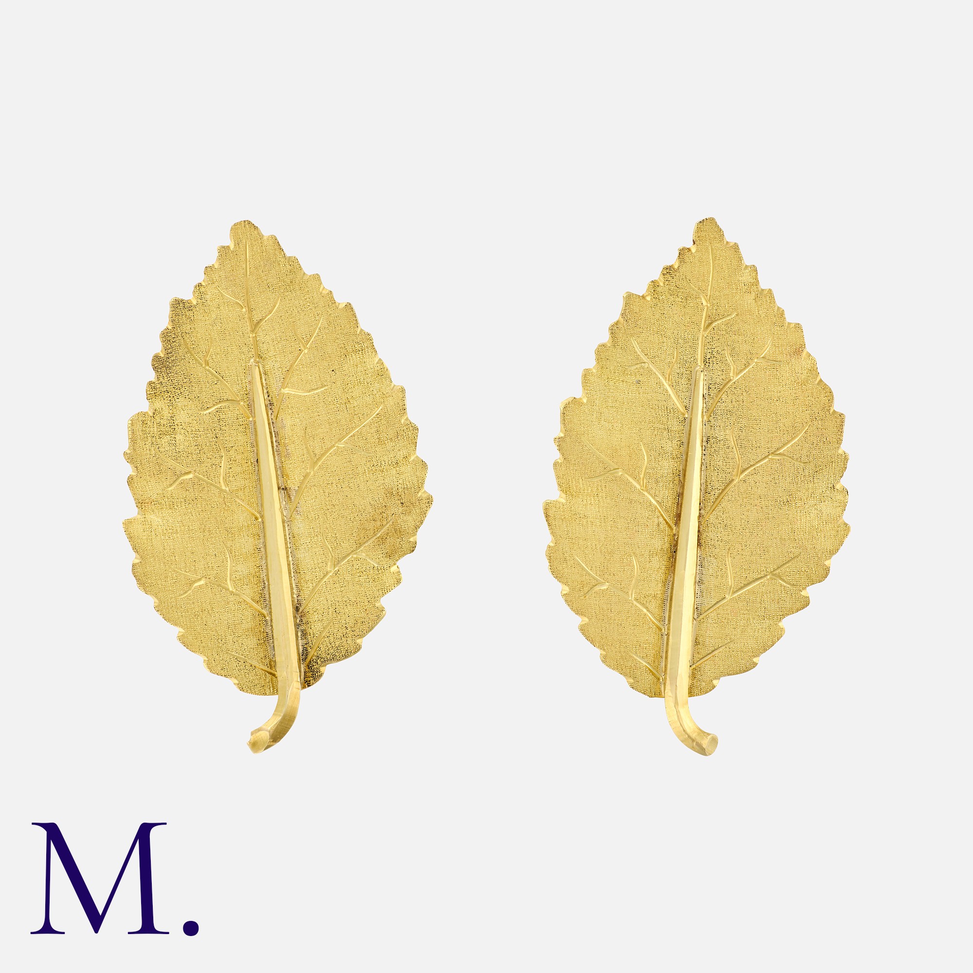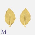 BUCCELLATI. A Pair of Leaf Earrings in 18K yellow gold in an etched scallop form. Signed FEDERICO BUCCELLATI and Italian marks for 18ct gold.