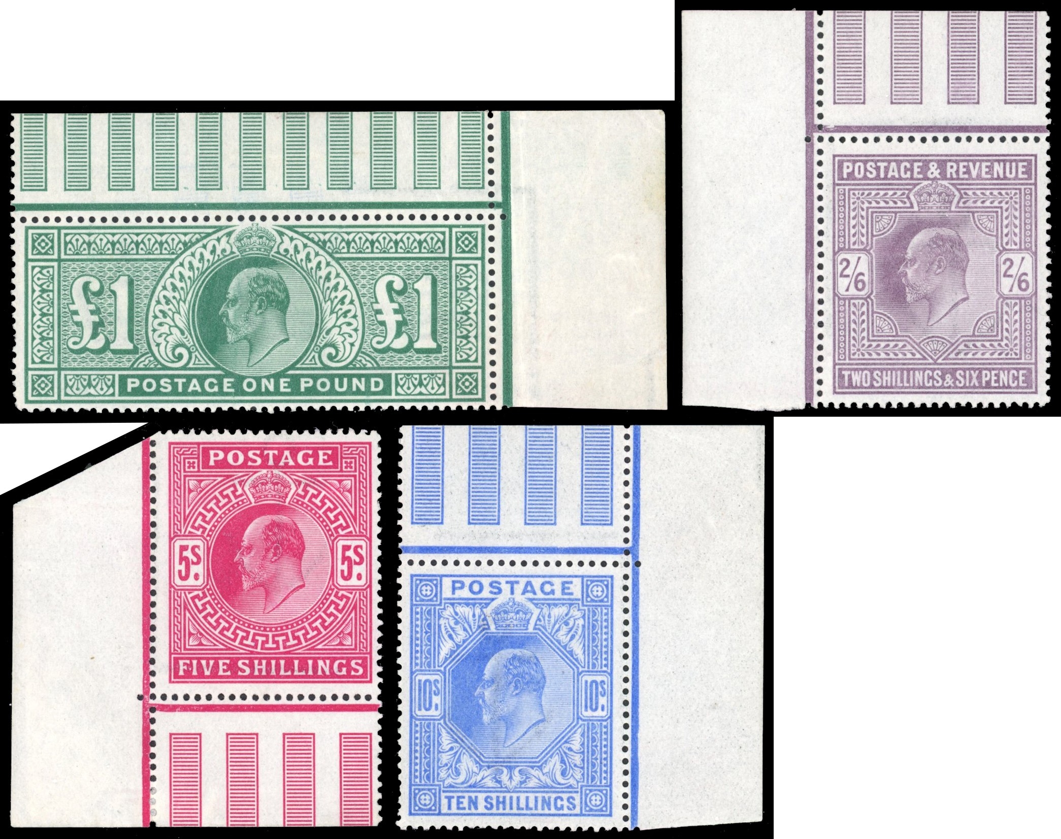 Great Britain 1902-10 De La Rue 2s6d to £1 corner marginals large part o.g