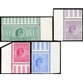 1902-10 De La Rue set of four high values each a corner marginal large part o.g., hinged at centre of stamps, very fine and fresh appearance