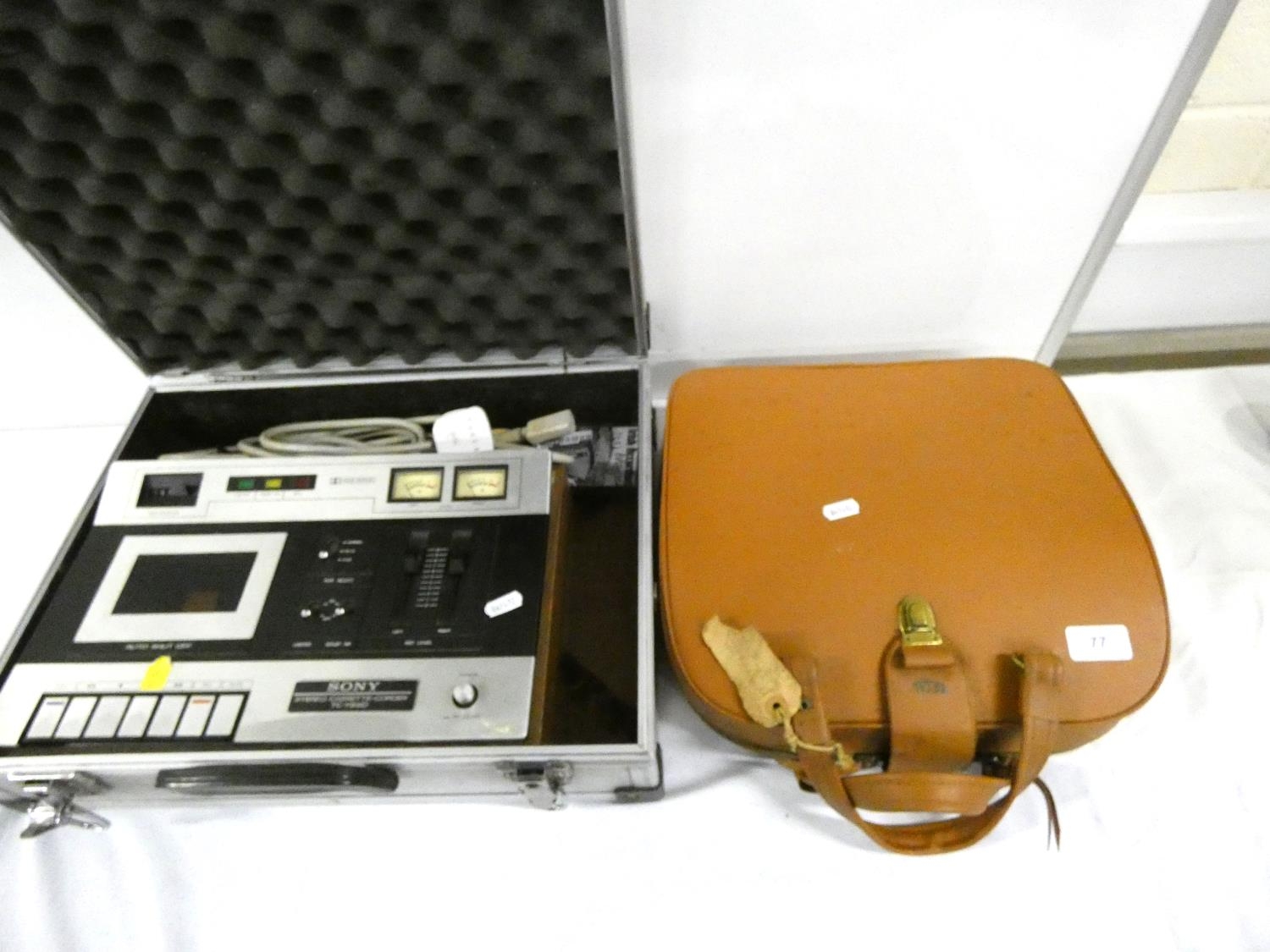 Sony cassette player and vintage typewriter.