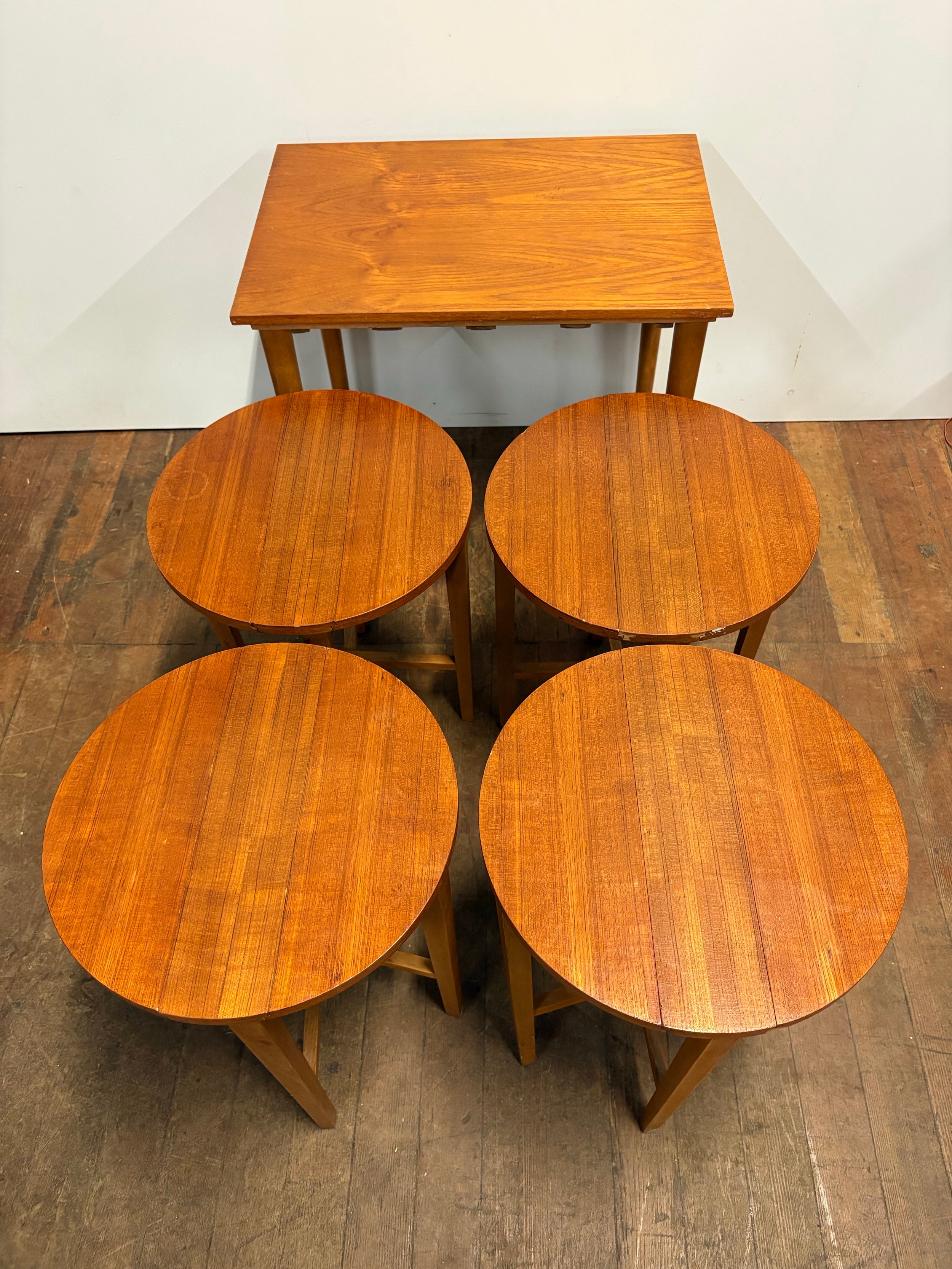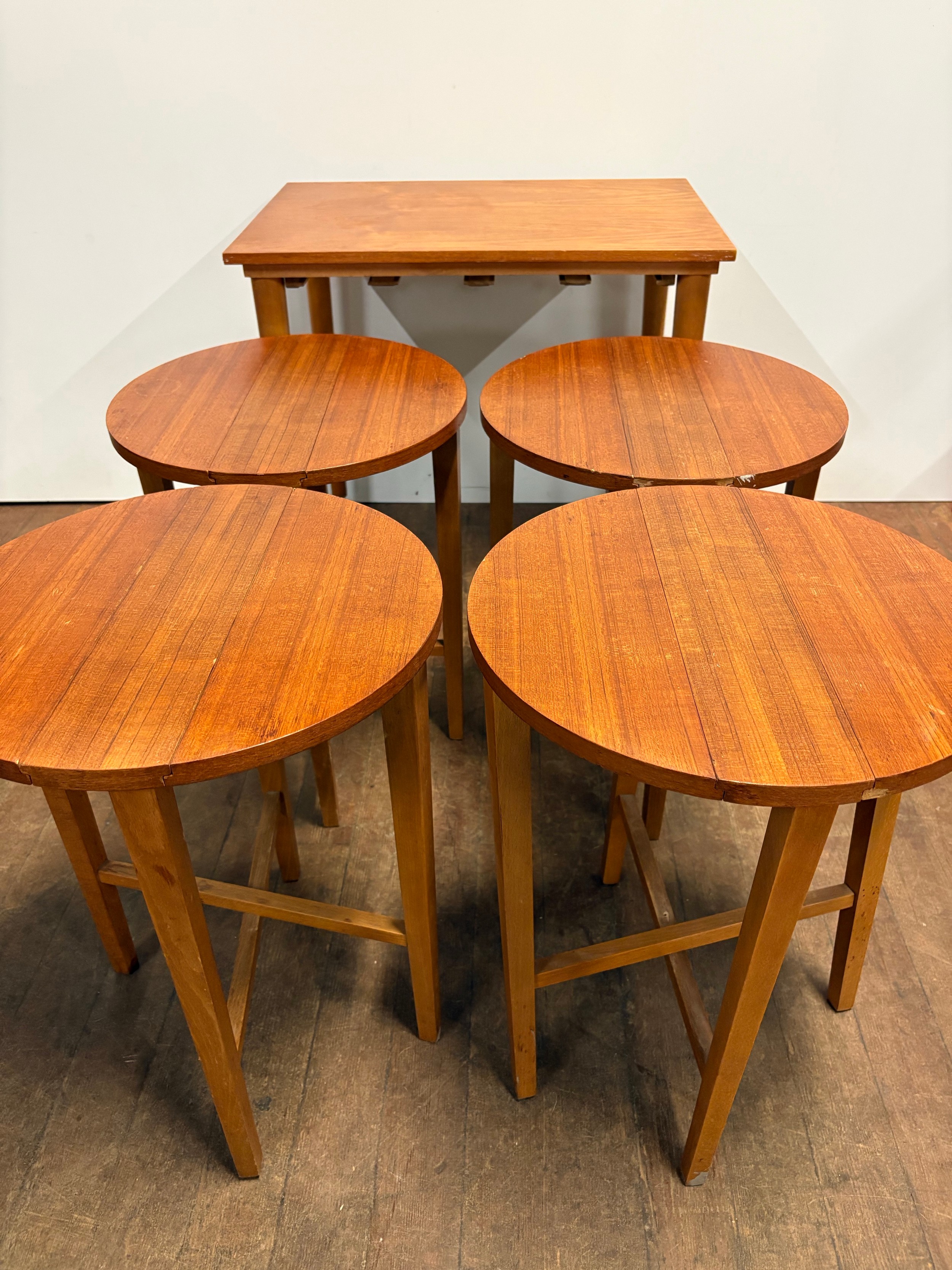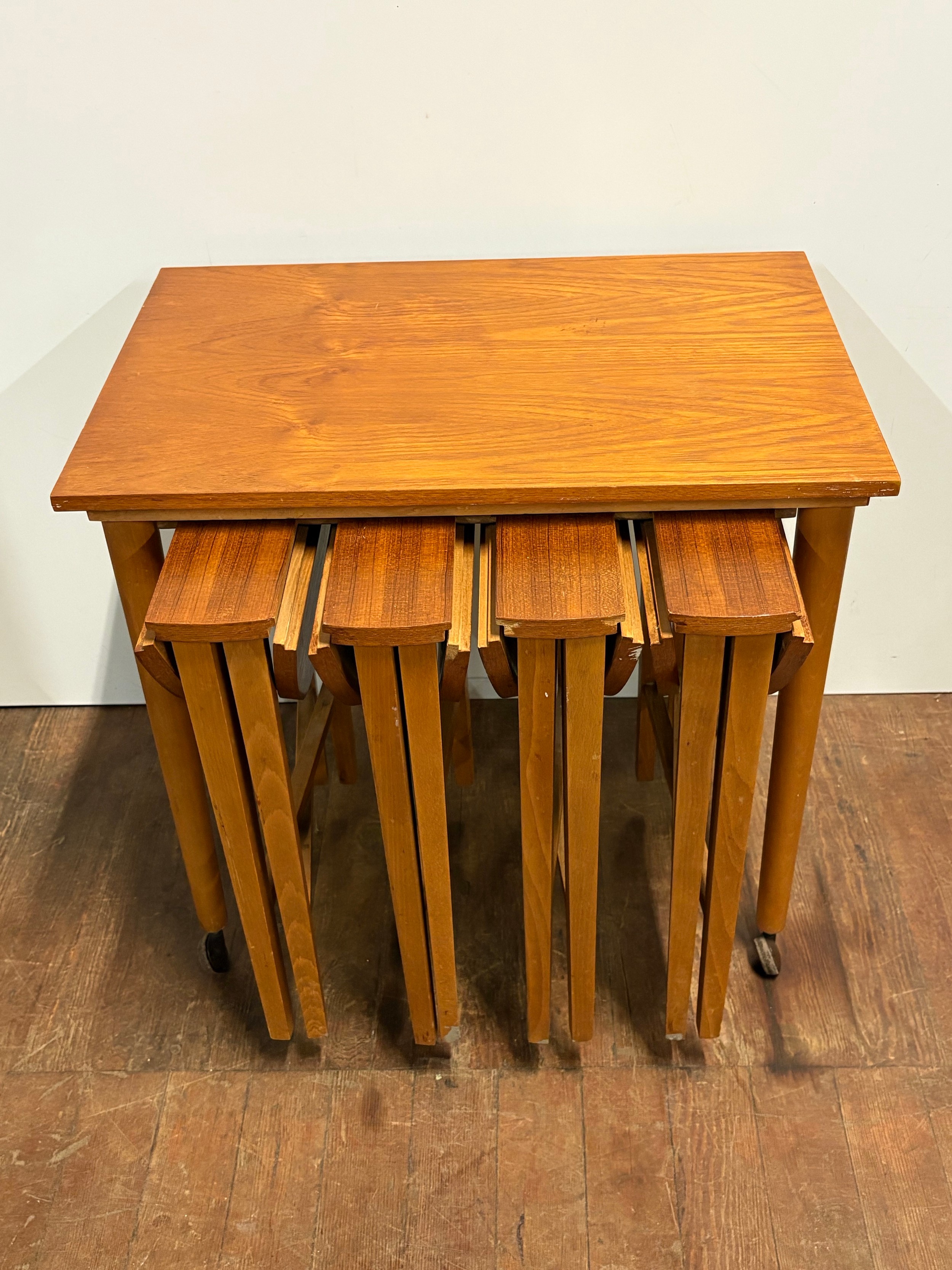 A mid century set of 5 nesting tables by Danish designer Poul Hundevad on behalf of Czech company Nomy Domov in the 1960s