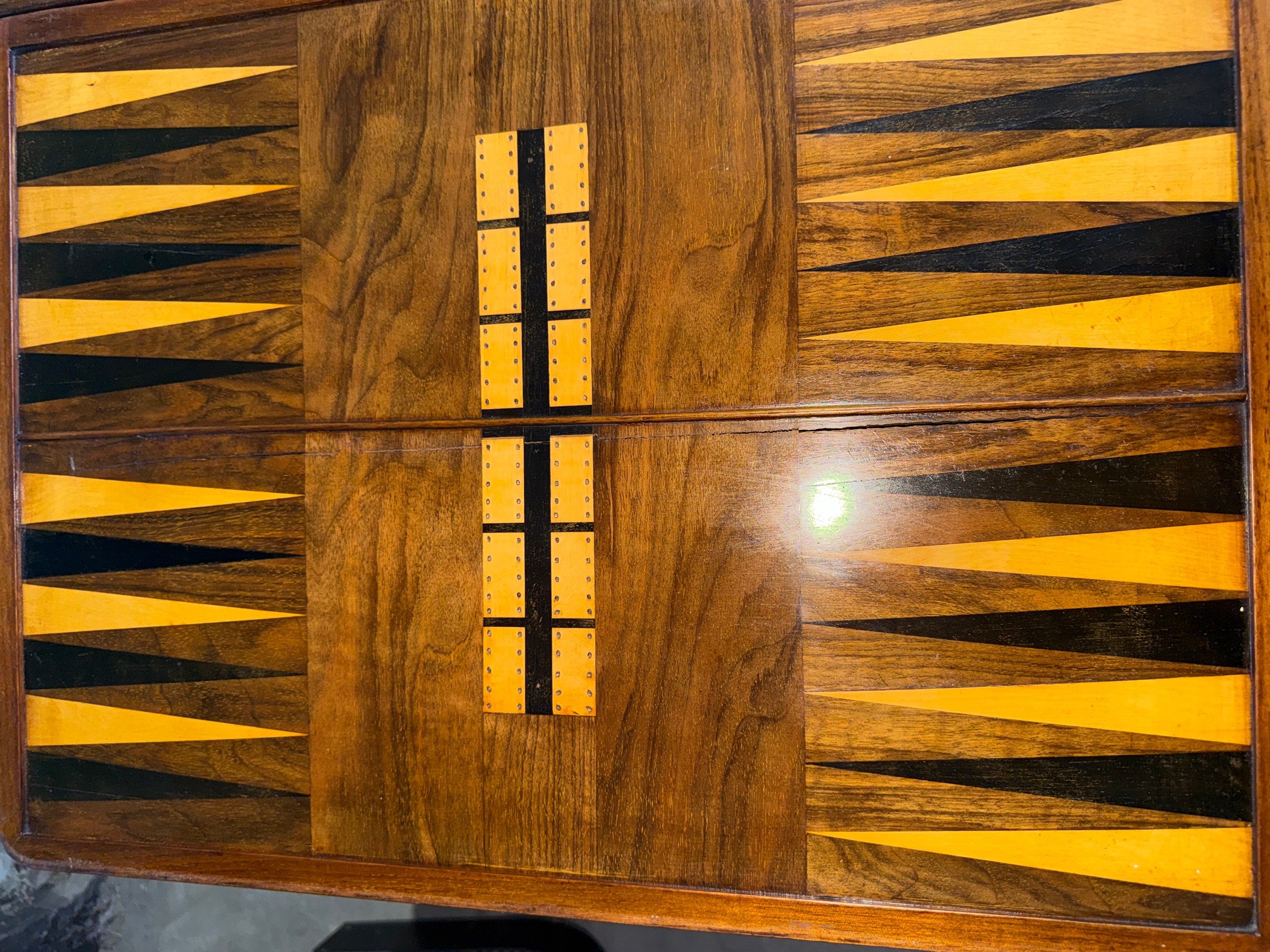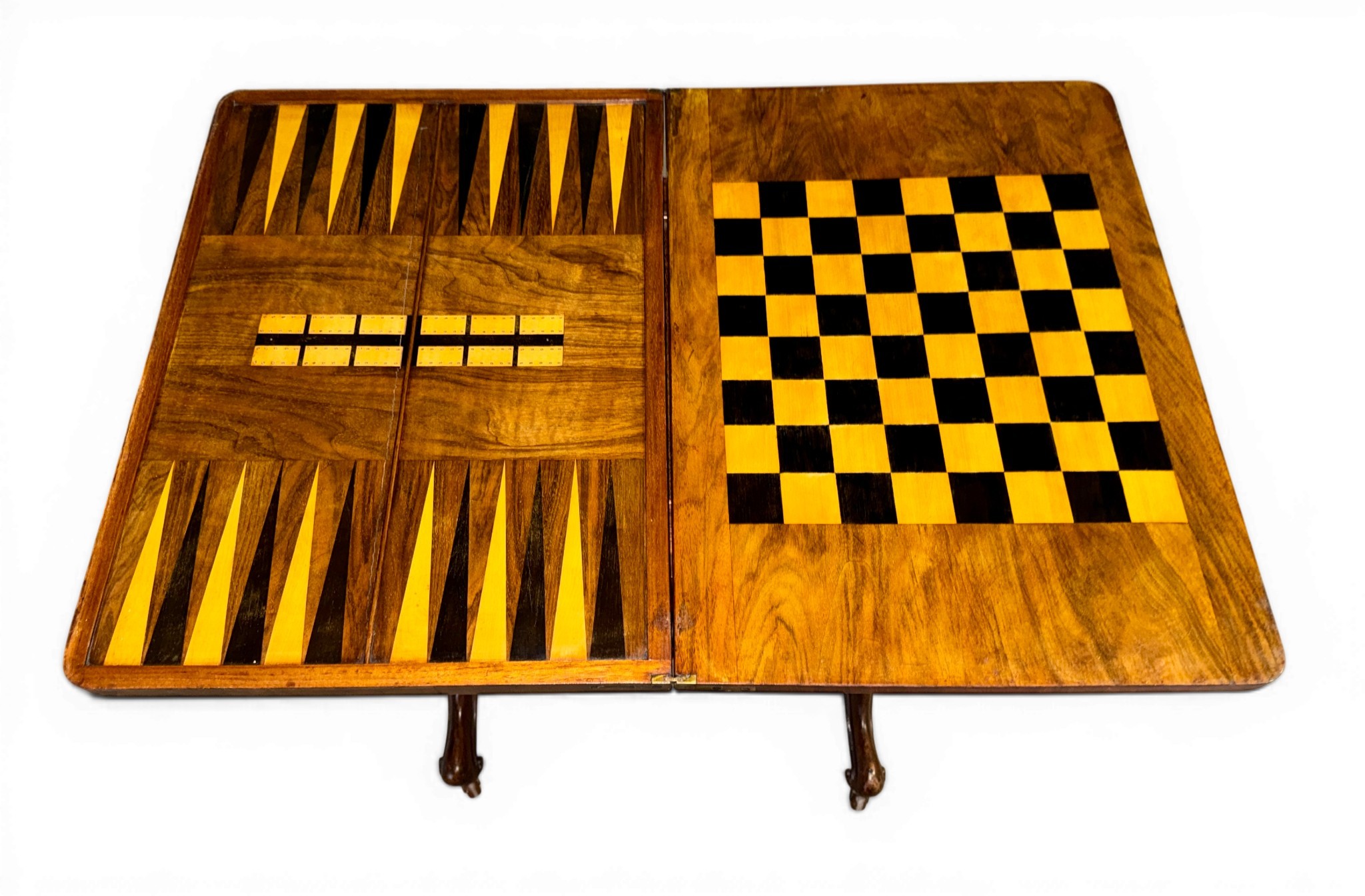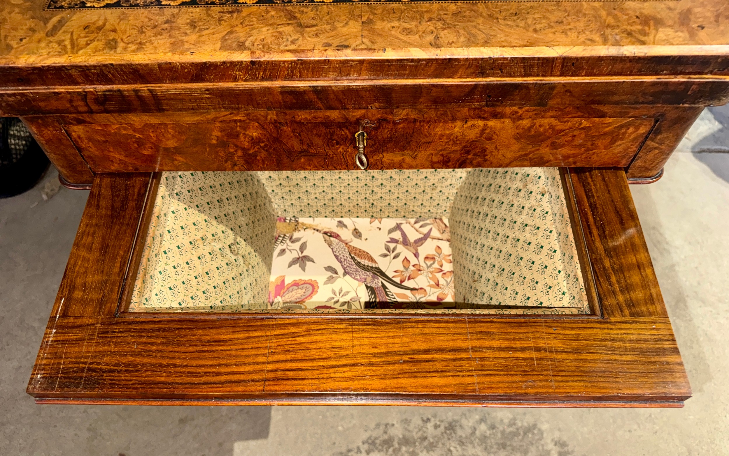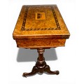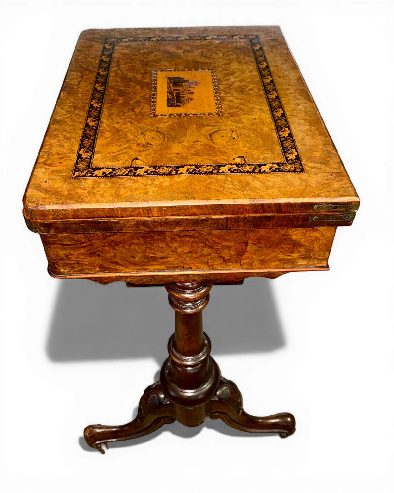 A nineteenth century Tunbridge ware inlaid games/work table, possibly depicting Eridge Castle. 59cm x 43cm x 73cm h.