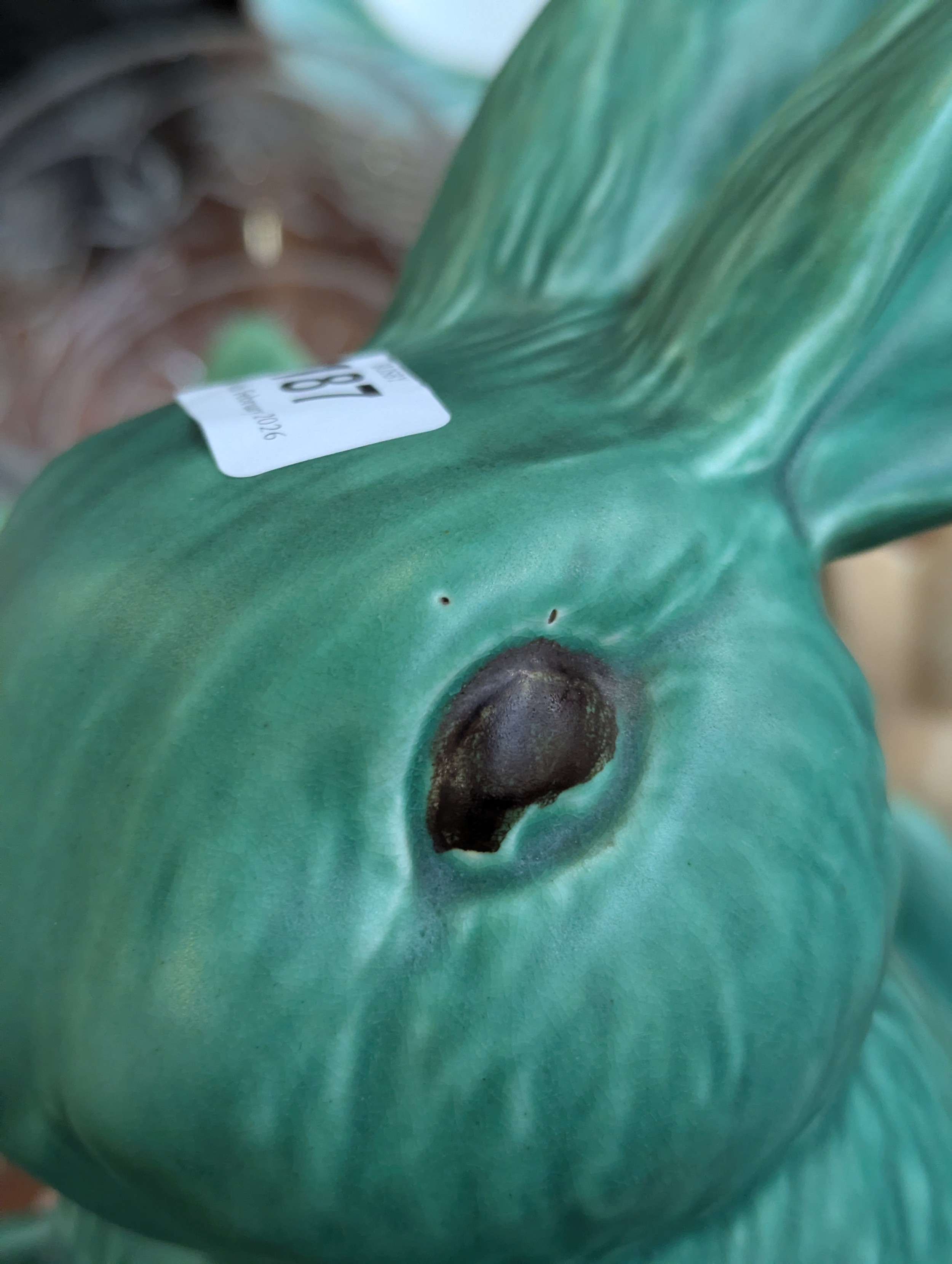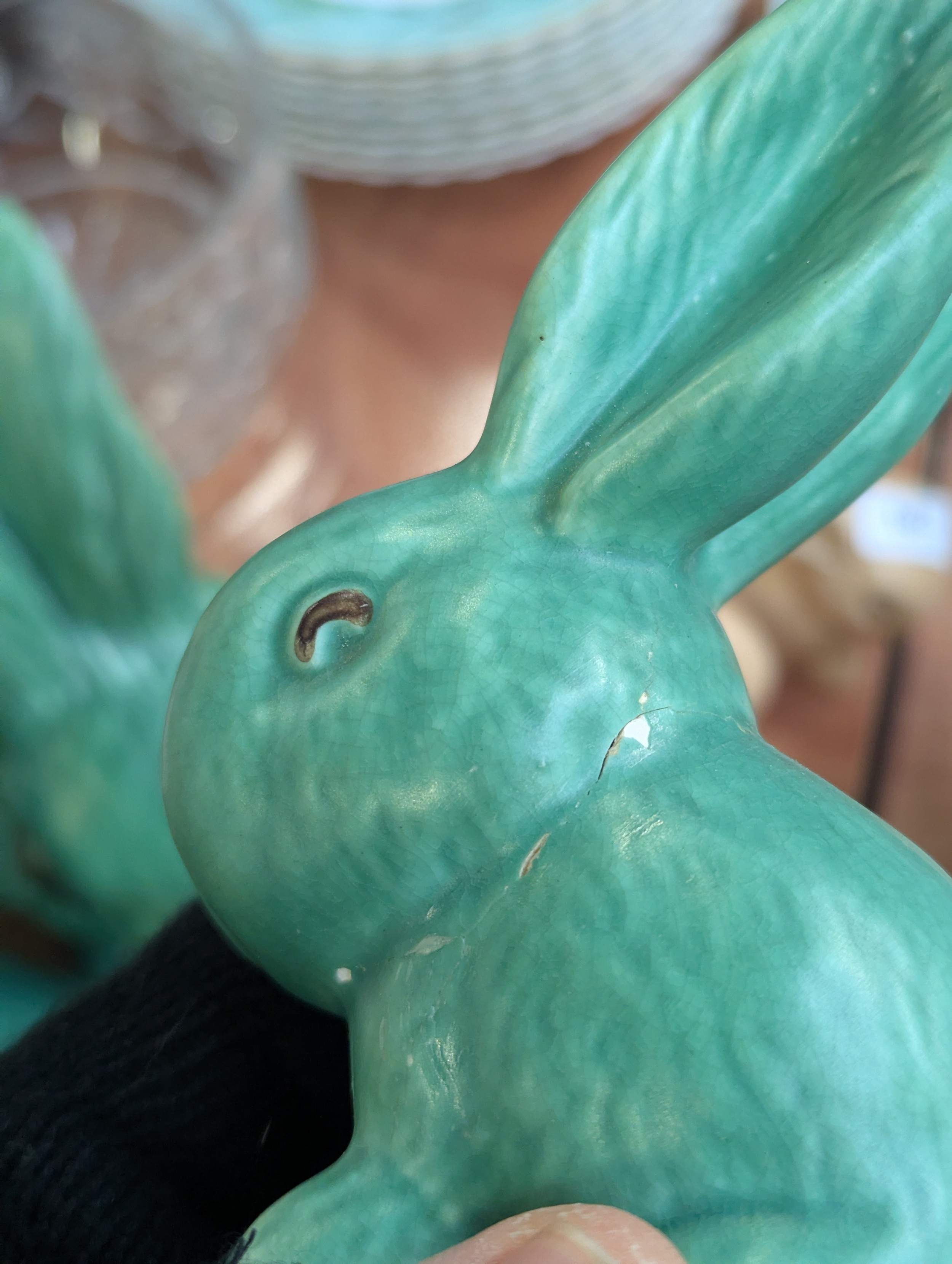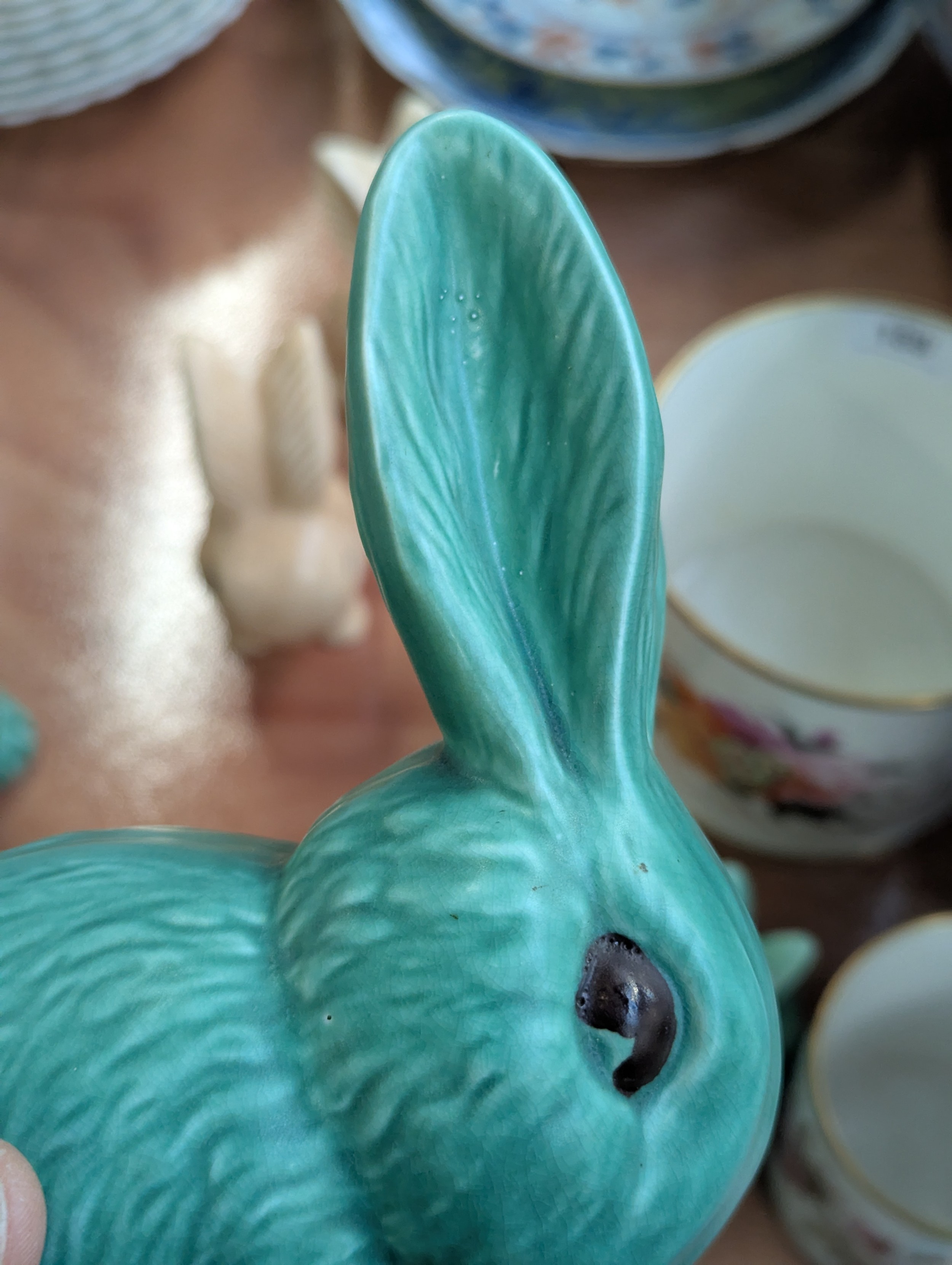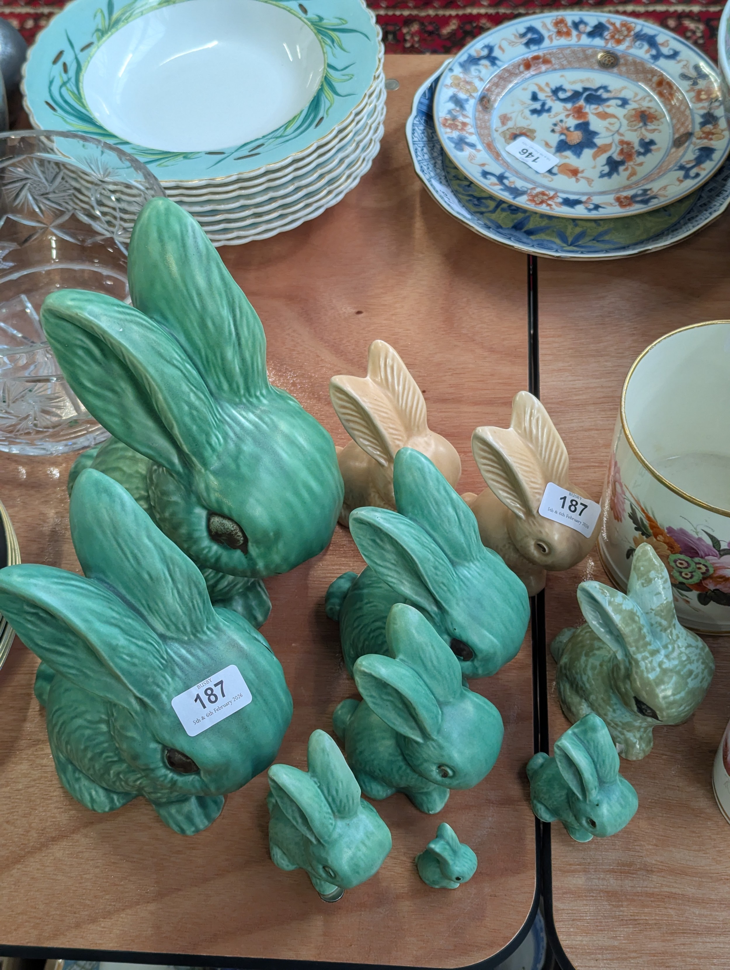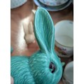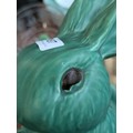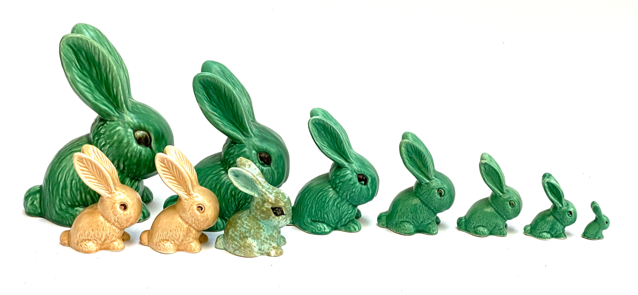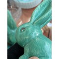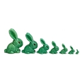 A graduating set of seven Sylvac green rabbits, the largest 25cmH, the smallest 5cmH