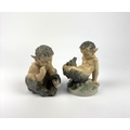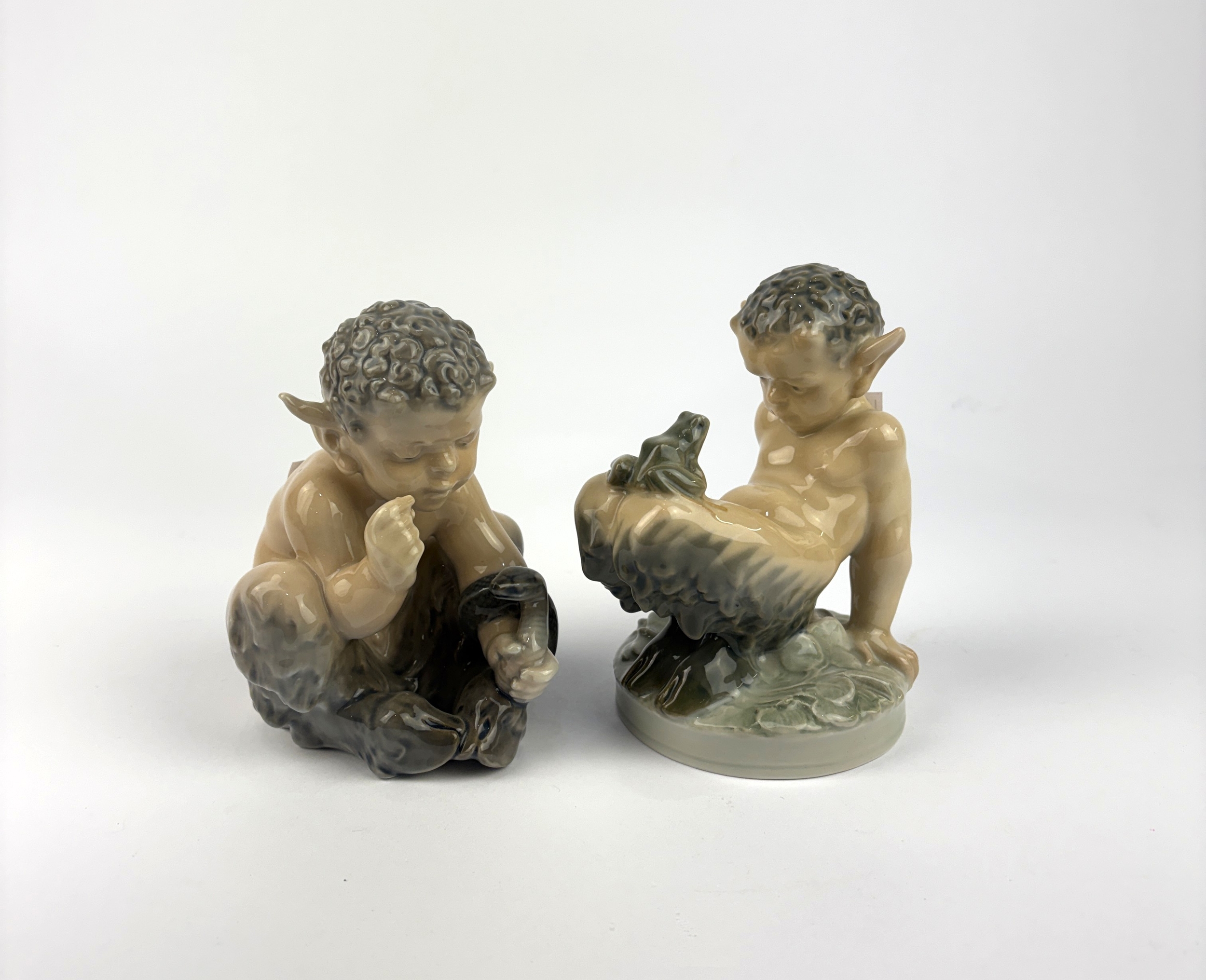 Two Royal Copenhagen porcelain figures of fauns, comprising one with frog 1713, 12.5cm, and one with snake 1712, 12cm