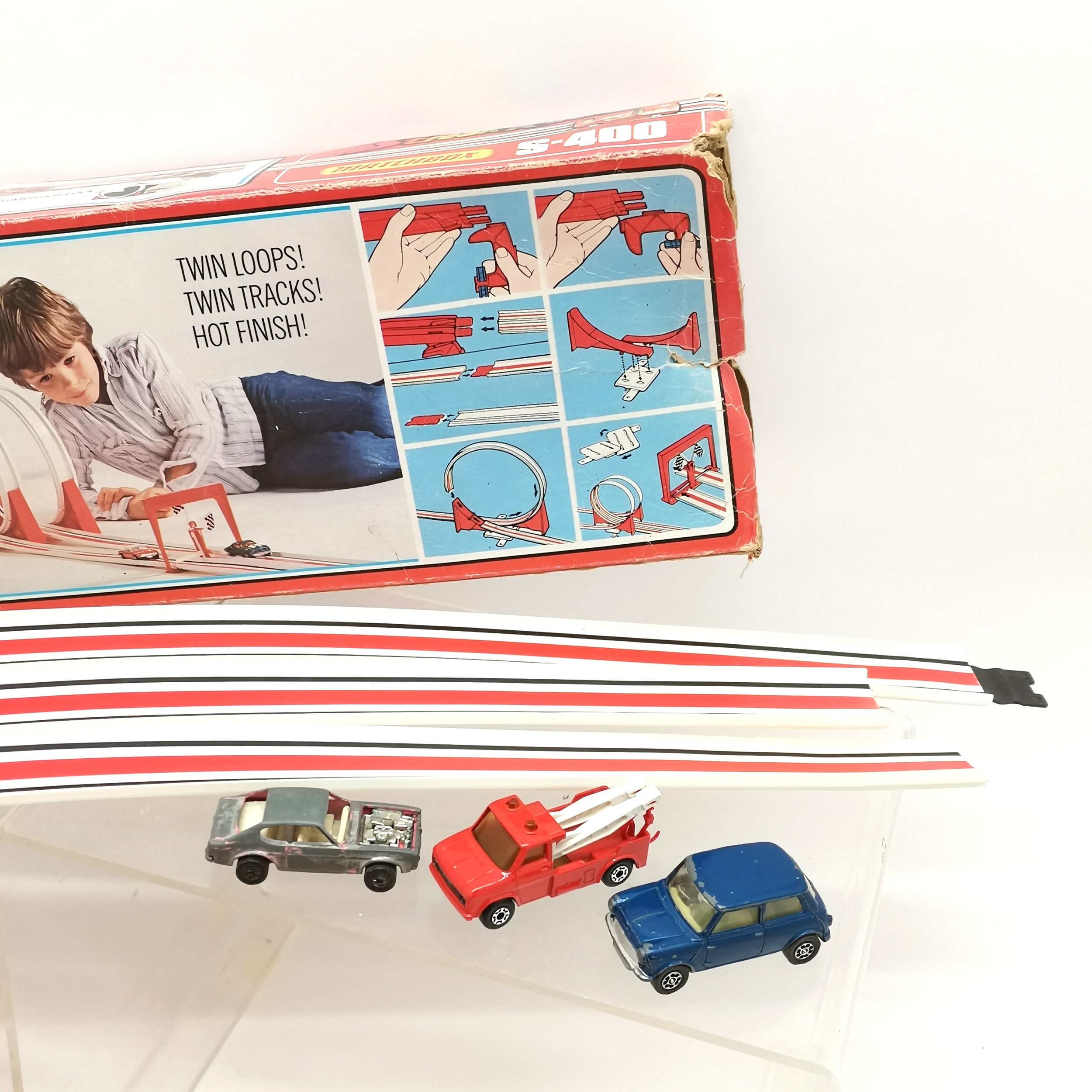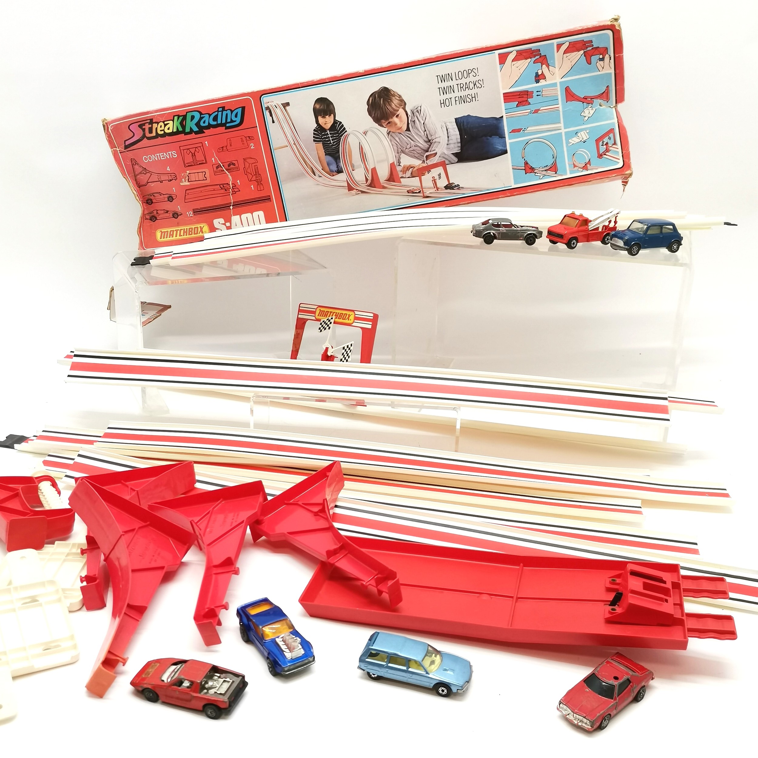 Matchbox streak racing S-400 boxed set - complete but only seems to have 6 x black track connectors & box and finishing flags a/f