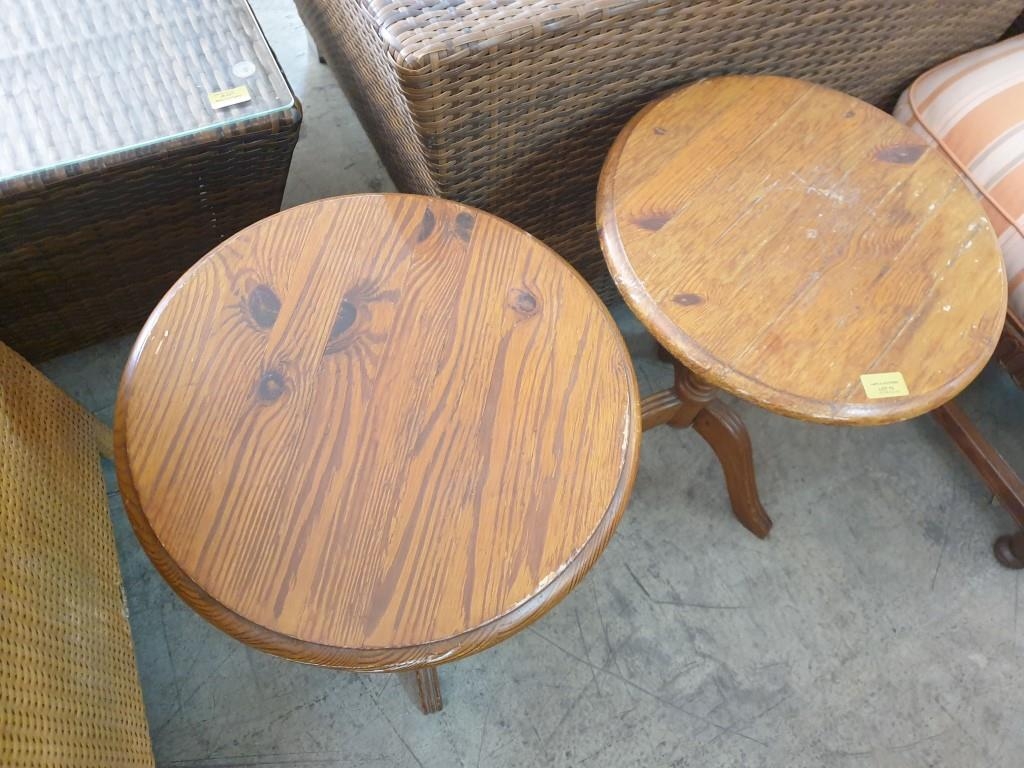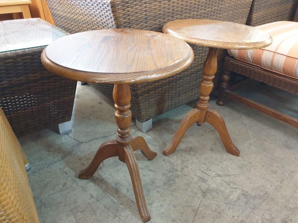 Pair of Vintage Solid Wood Round Pedestal Side Tables with Tripod Feet (Ø39cm) (2)
