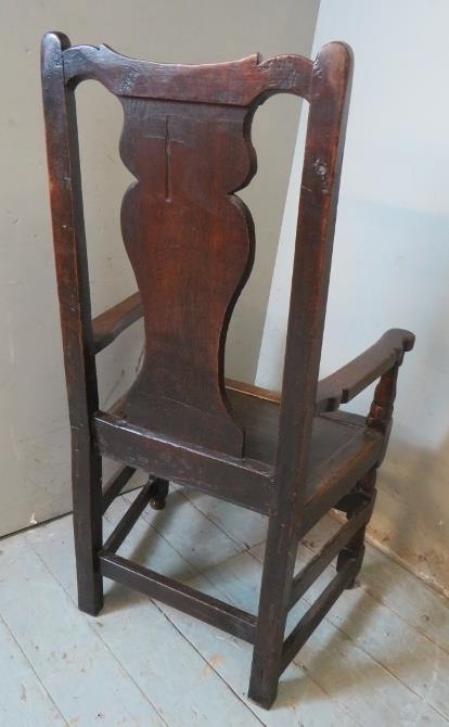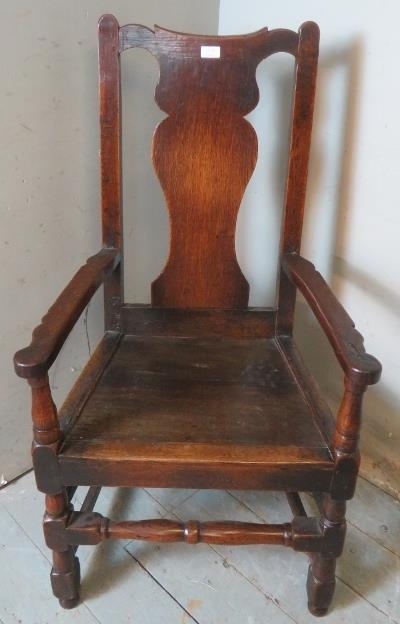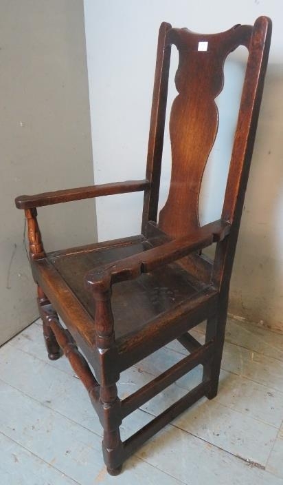An early 18th century oak carver hall chair of excellent colour and patina.