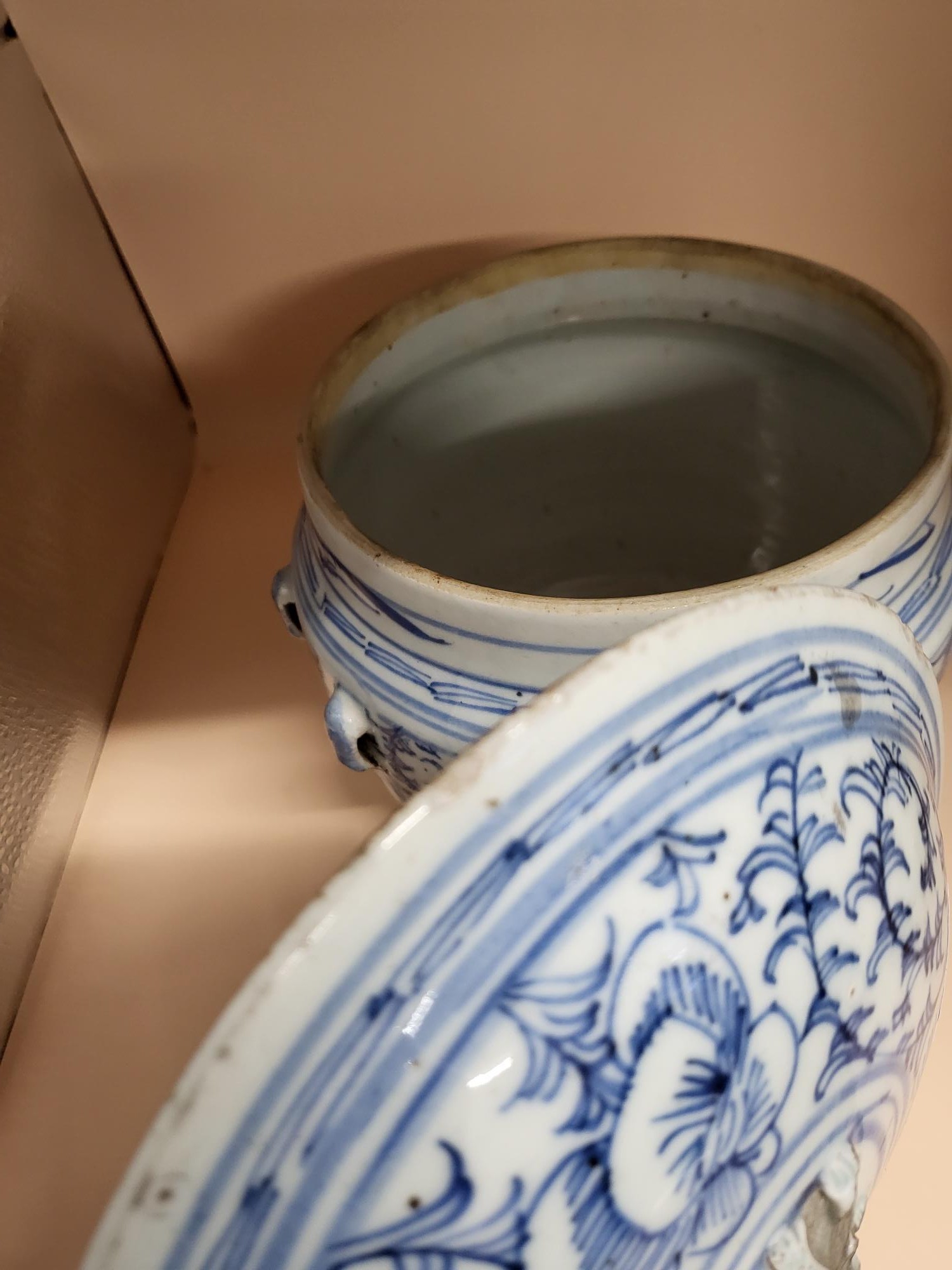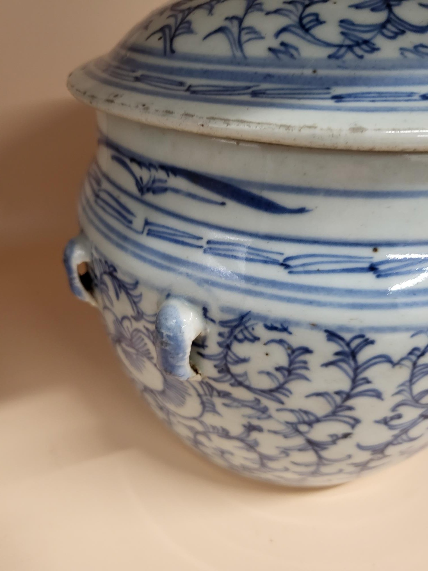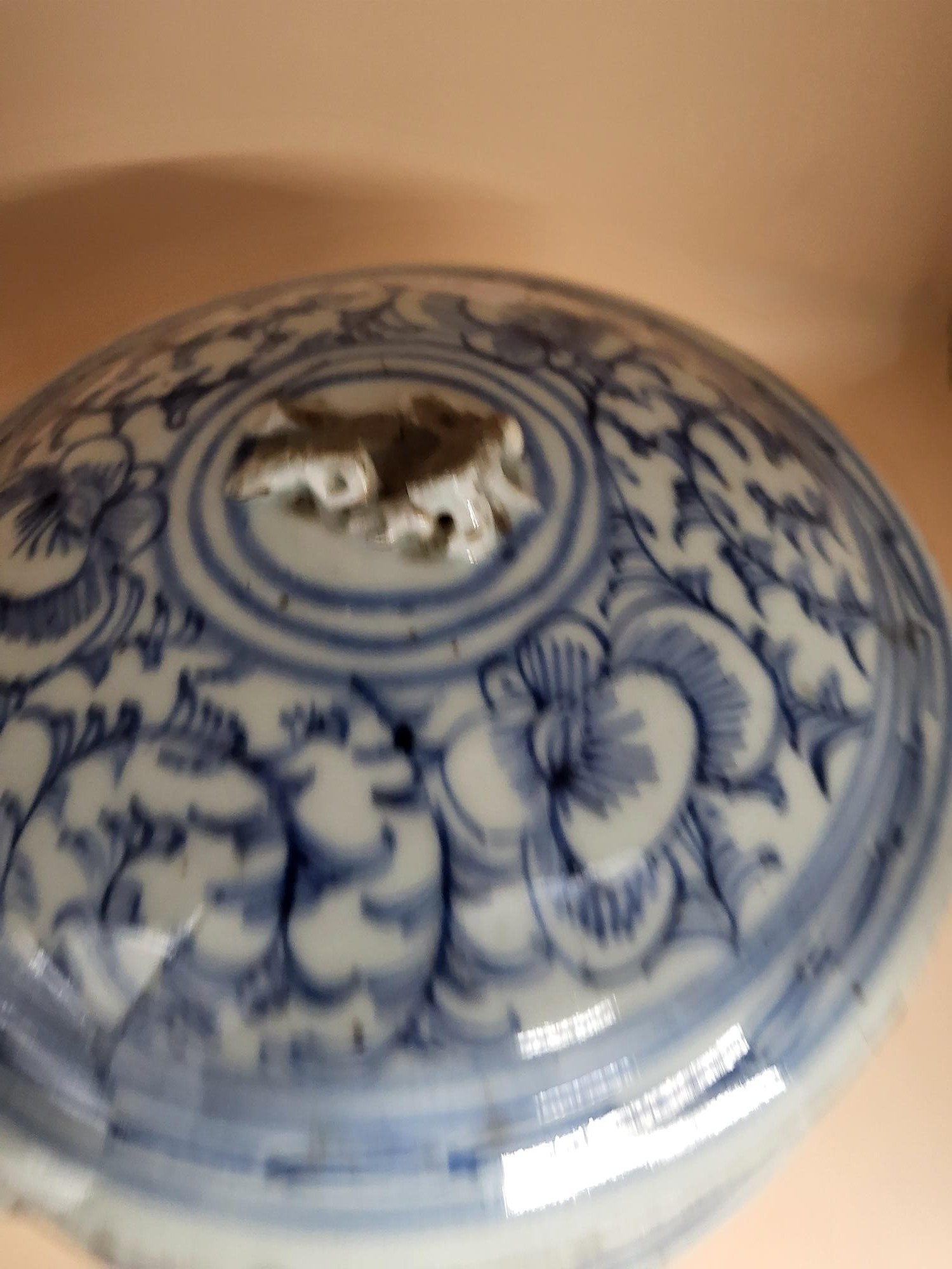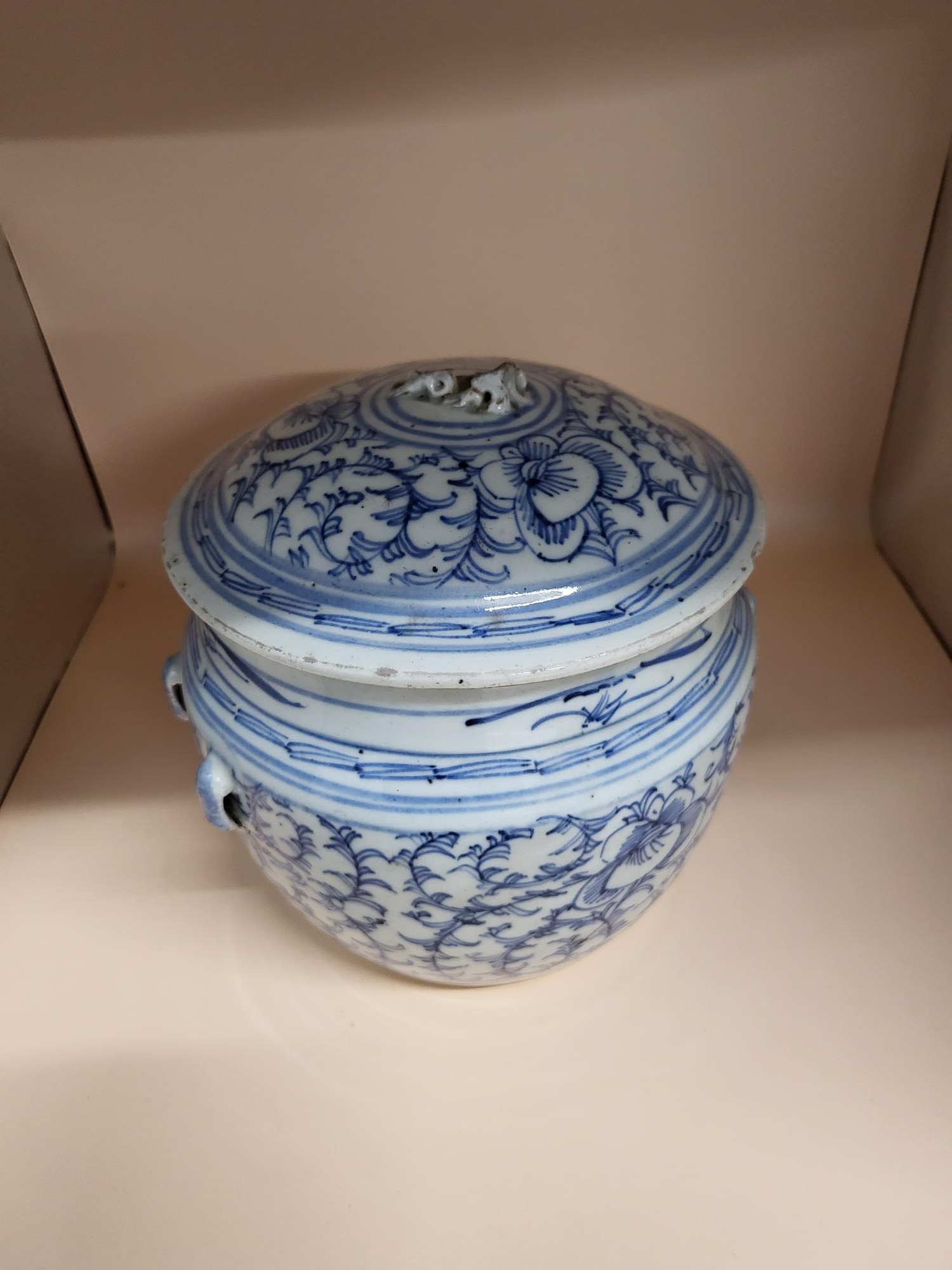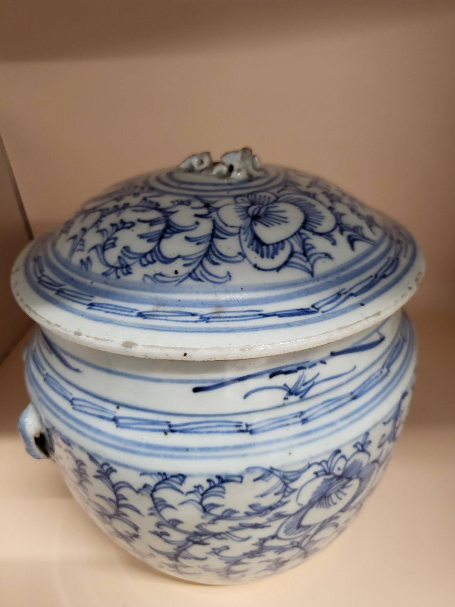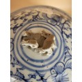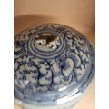 Antique 19th Century Late Qing Dynasty Chinese Blue & White Kamcheng Jar Does Have Issues The Small Lion That Should Have Sat on Top is Broken And Has A Few Chips Around The Lid Check Photos Measures 17cm Tall By 17cm in Diameter