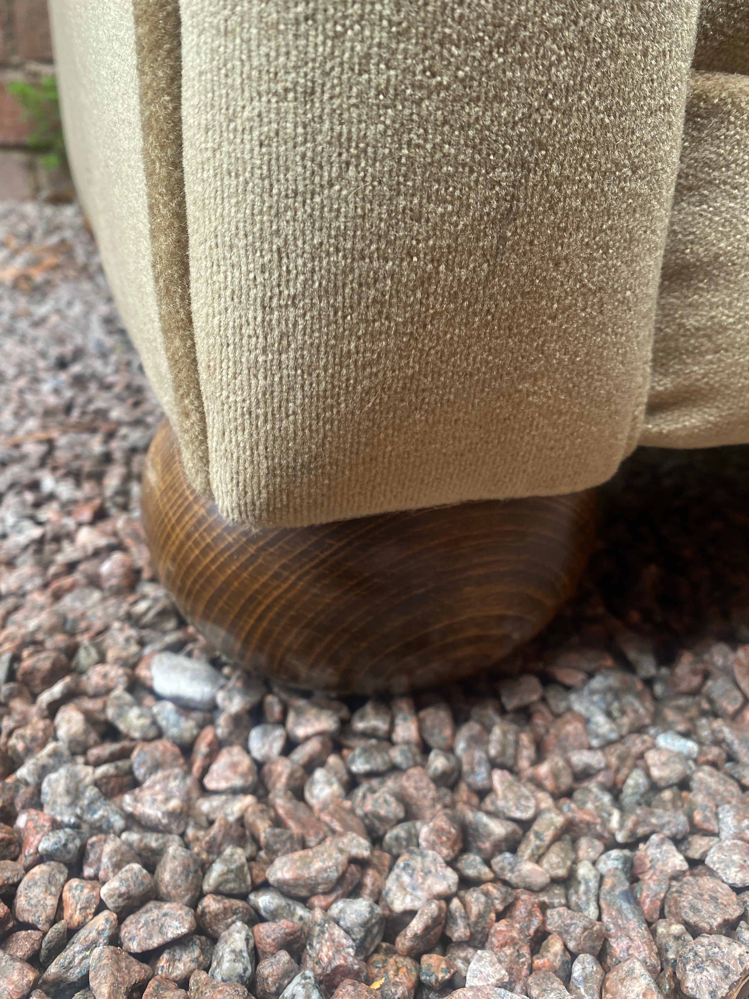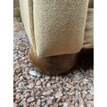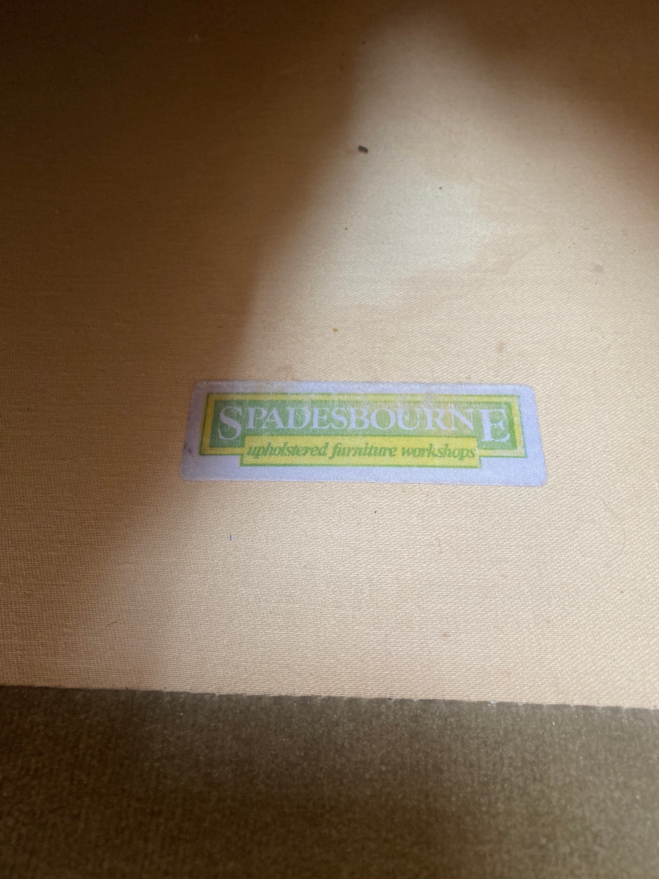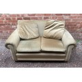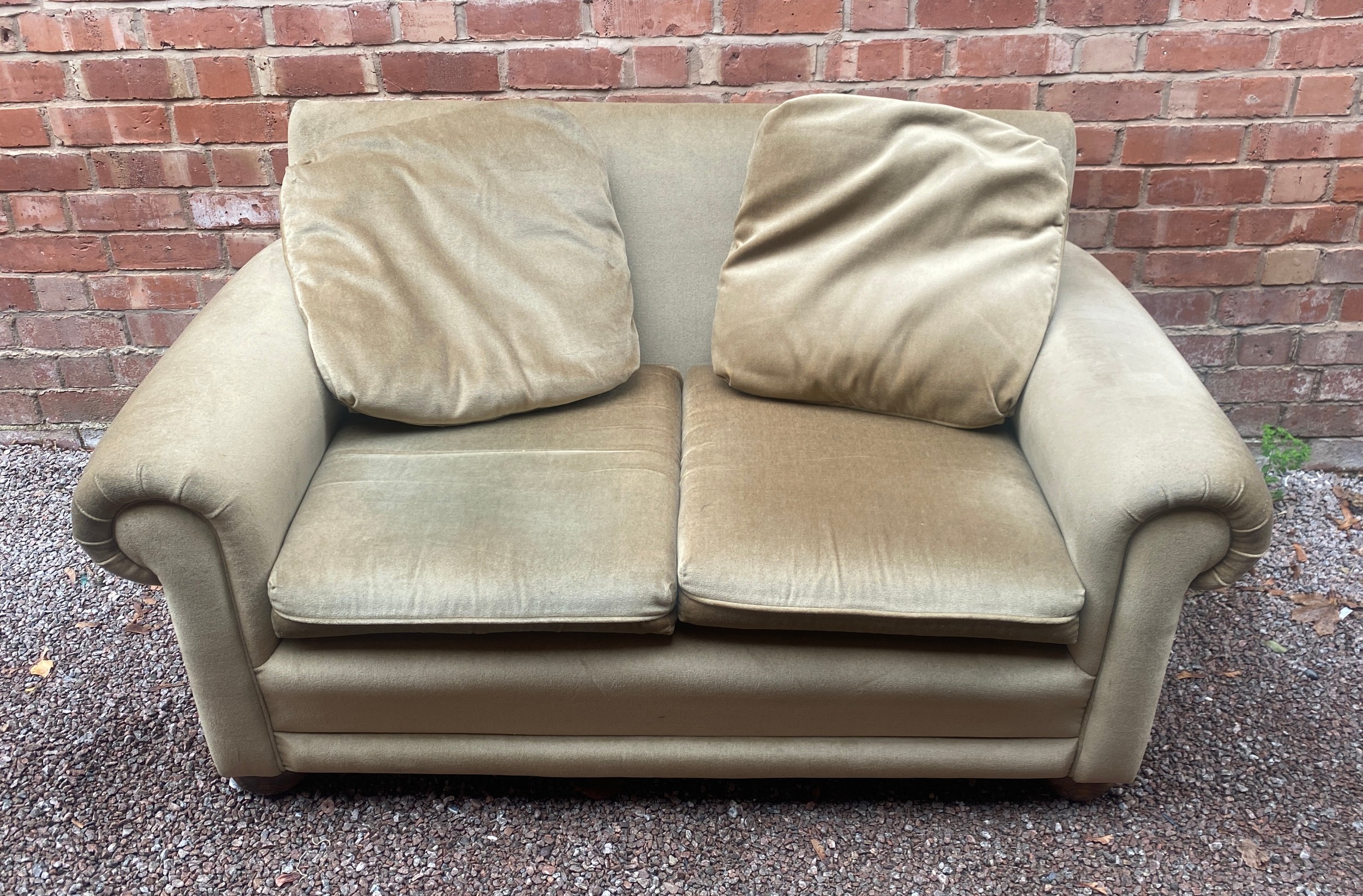 EDWARDIAN STYLE GREEN UPHOLSTERED SOFA ON BUN FEET