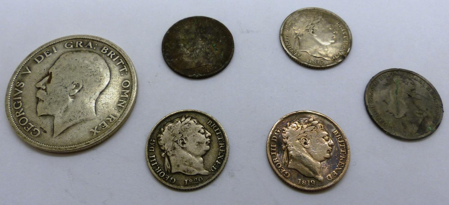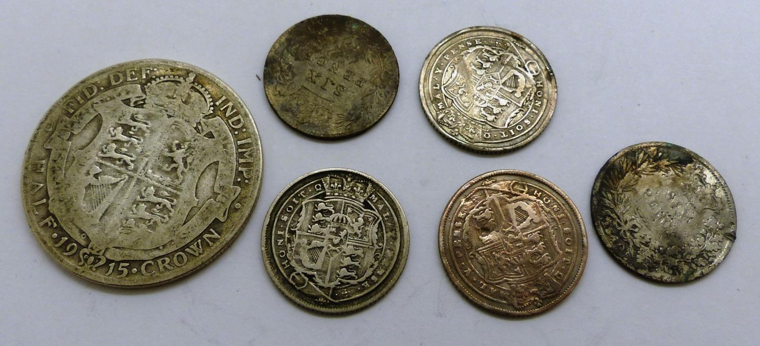Collection of English milled silver coins (6). P&P Group 0 (£5+VAT for the first lot and £1+VAT for subsequent lots)