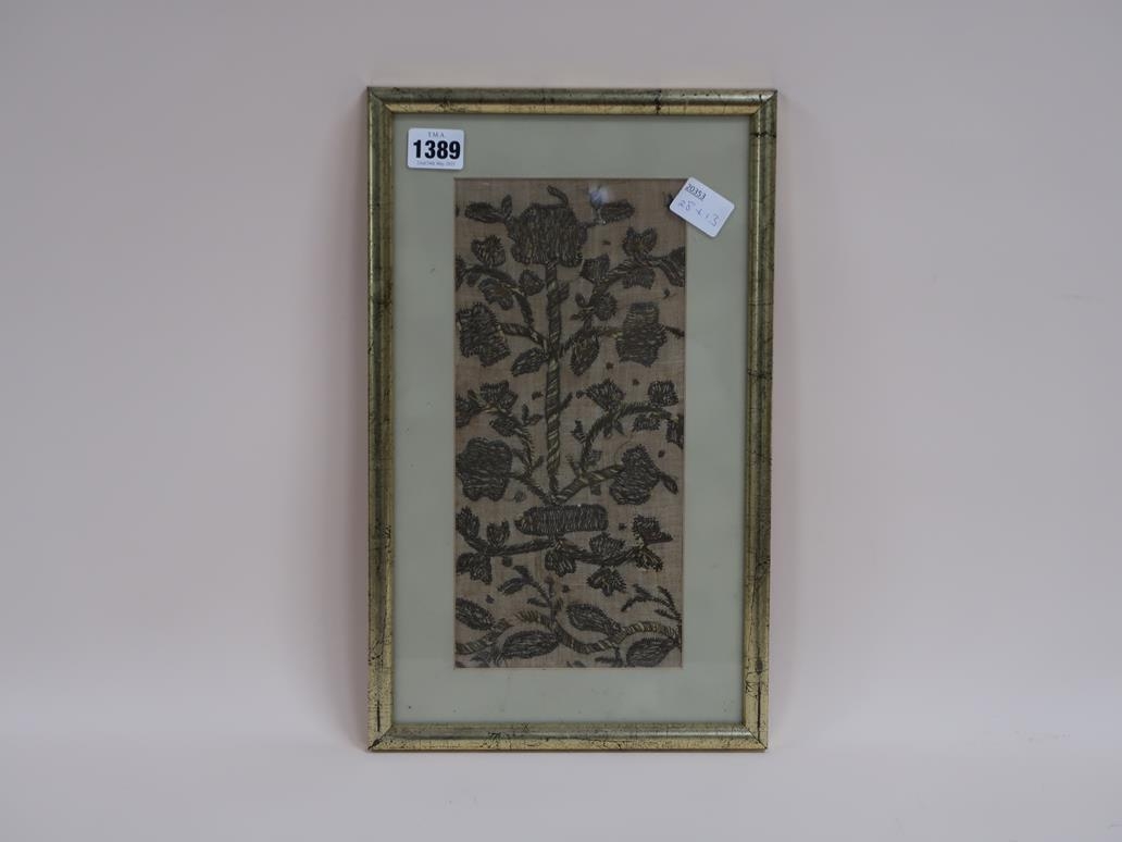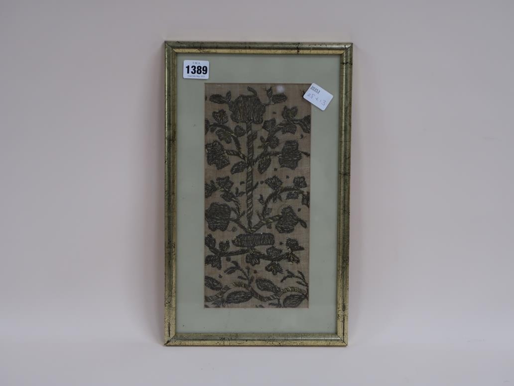 18C NEEDLEWORK PANEL, F/G, 28CM X 13CM
