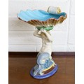 Minton 19th century majolica mermaid centrepiece, supporting a shell in her outstretched arms, (top re-attached), impressed marks and date code for 1873, 14.75" high.