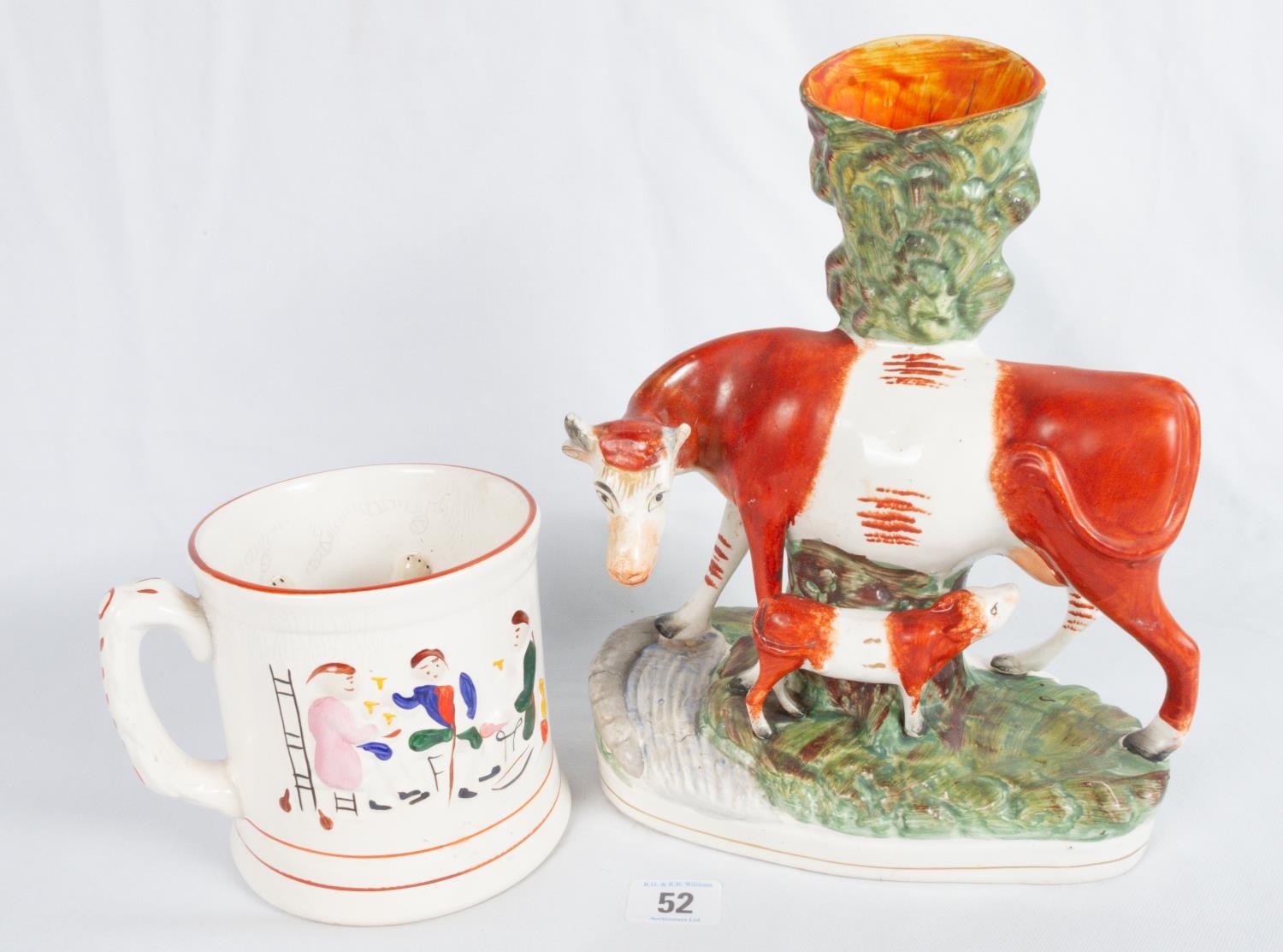 STAFFS' COW FLATBACK SPILL VASE A/F & A VINTAGE FROG MUG