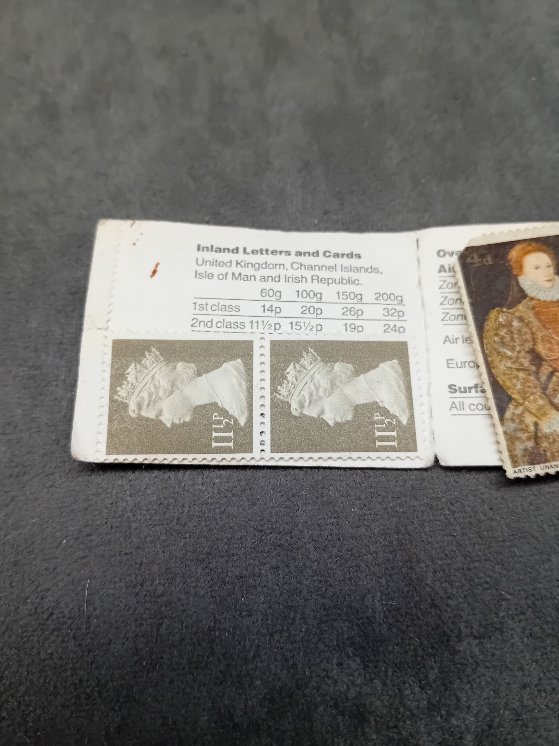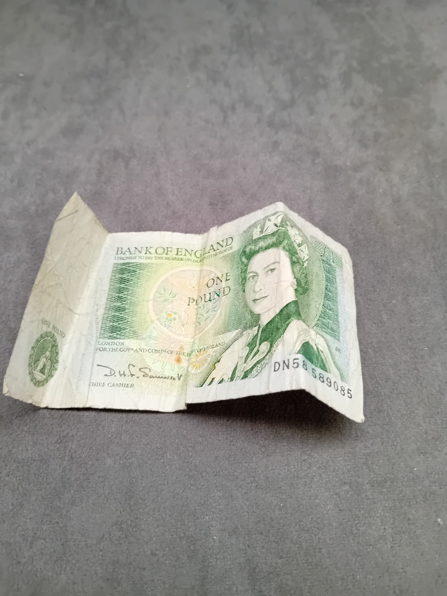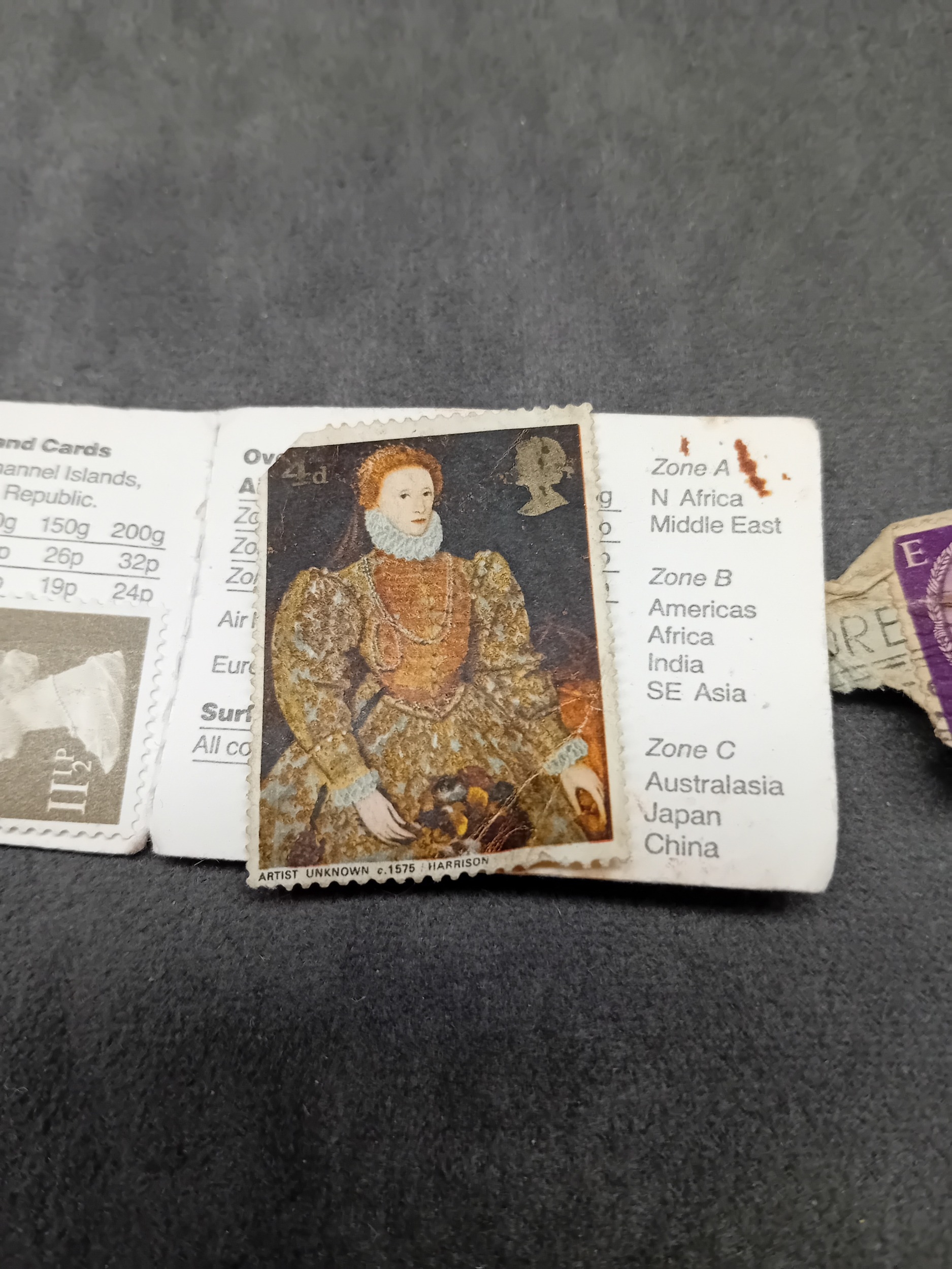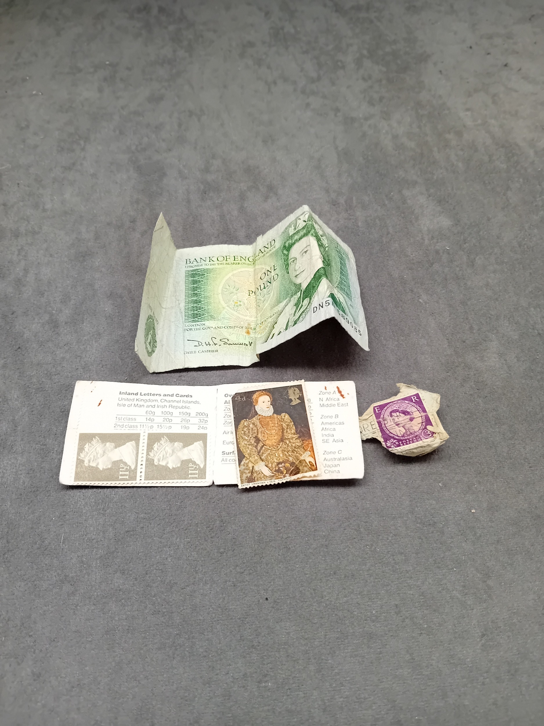 Mixed lot containing 1 £1 note and 4 stamps as pictured