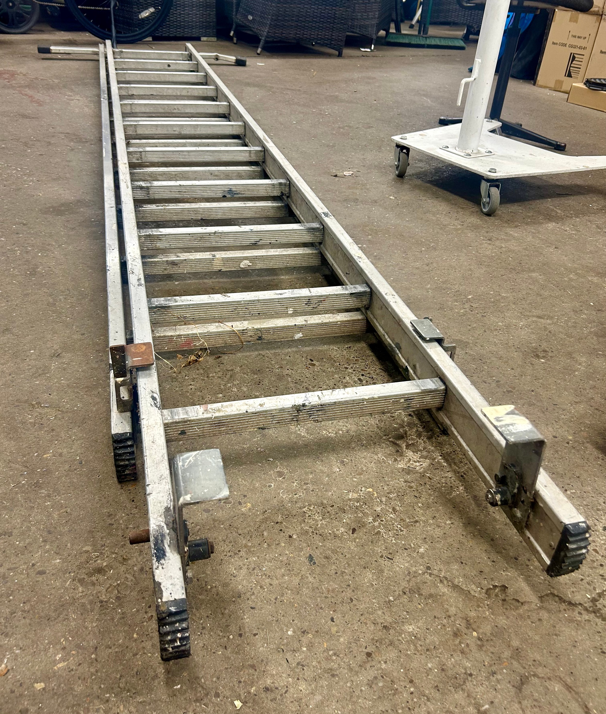 An 11 rung - double rung aluminium extension ladder