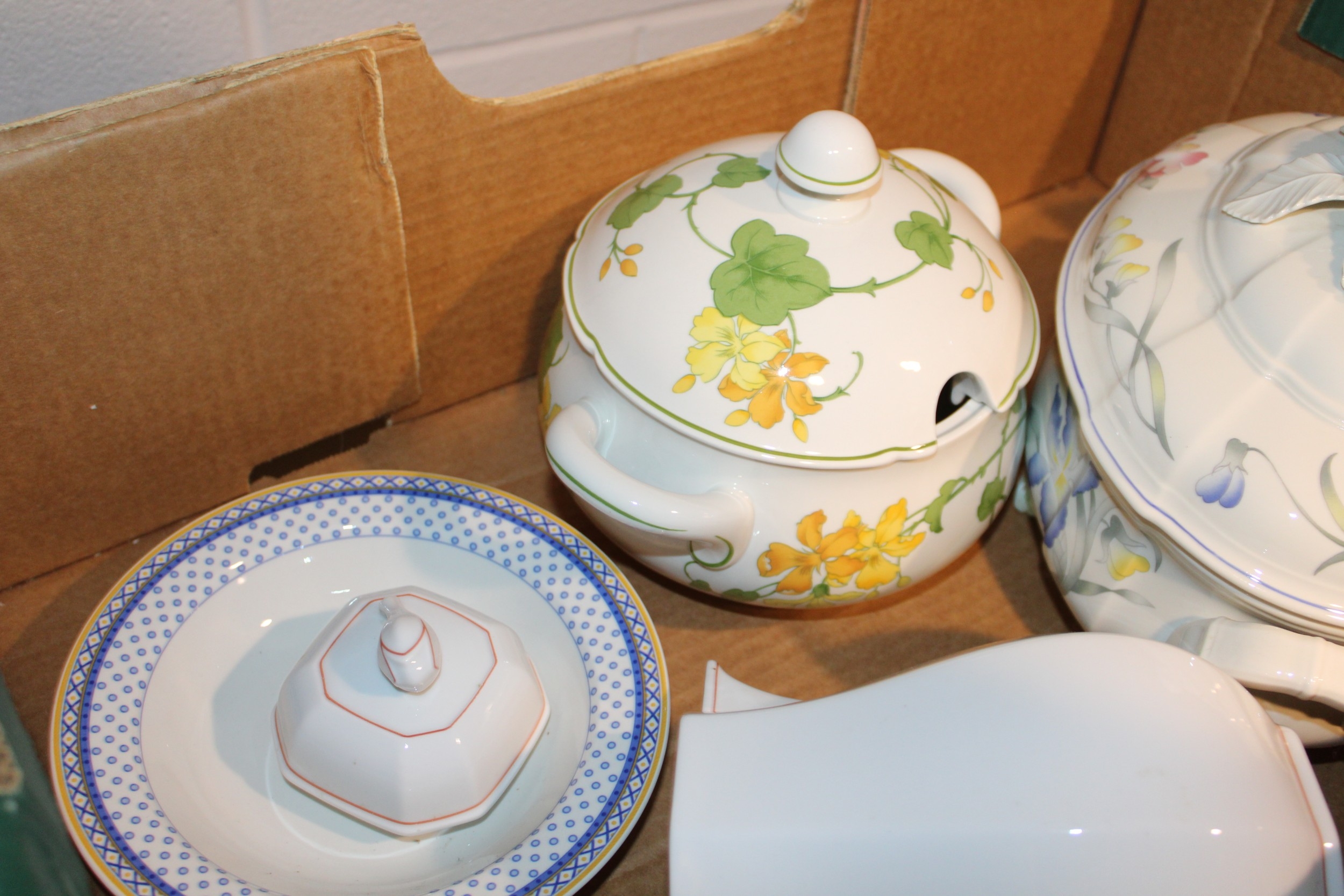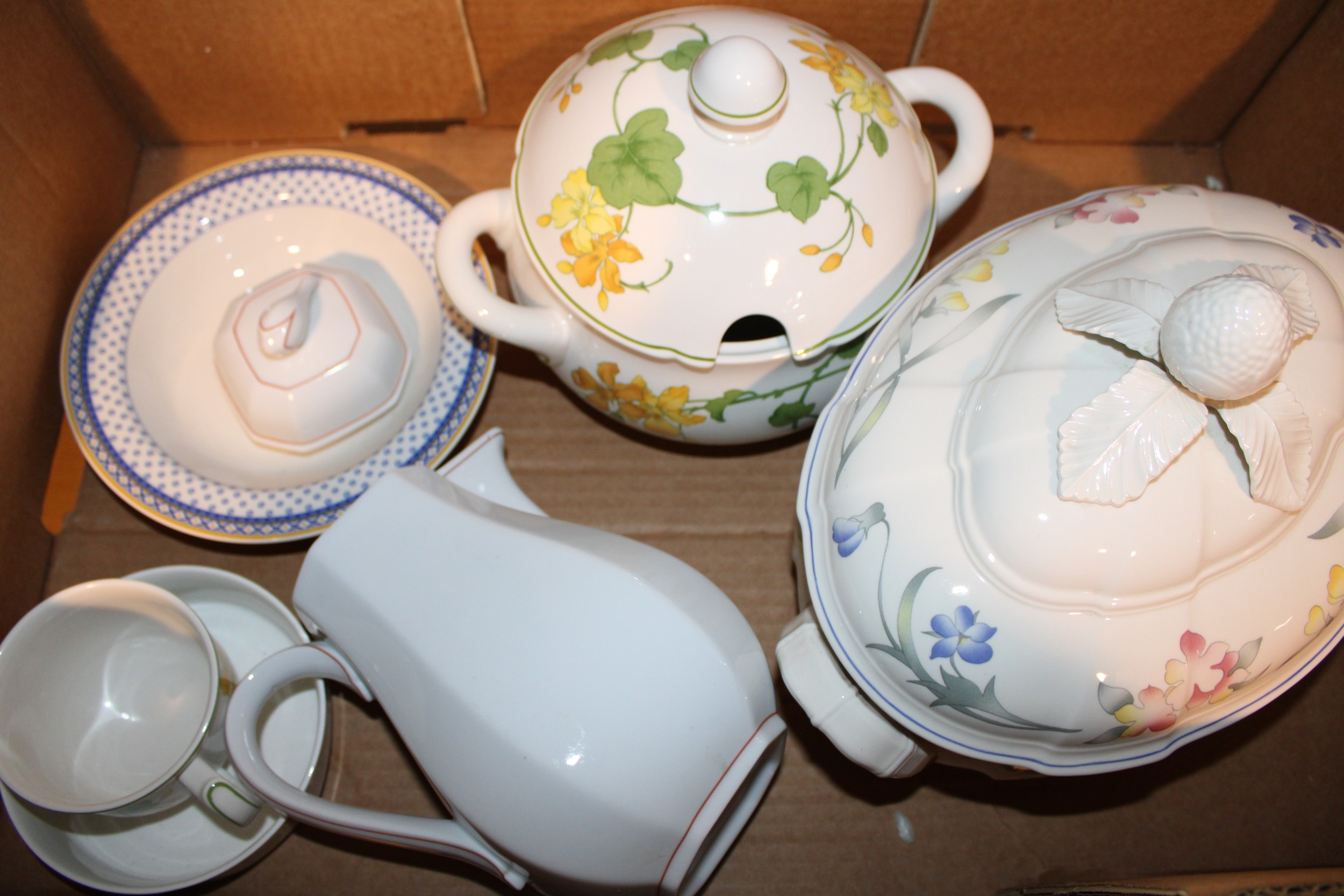 A collection of Villeroy Boch Dinnerware and Teaware to include patterns such as Riveira, Geranium, Facetted Rouge, Iris, Holly, Perpignon in various shapes (Qty).