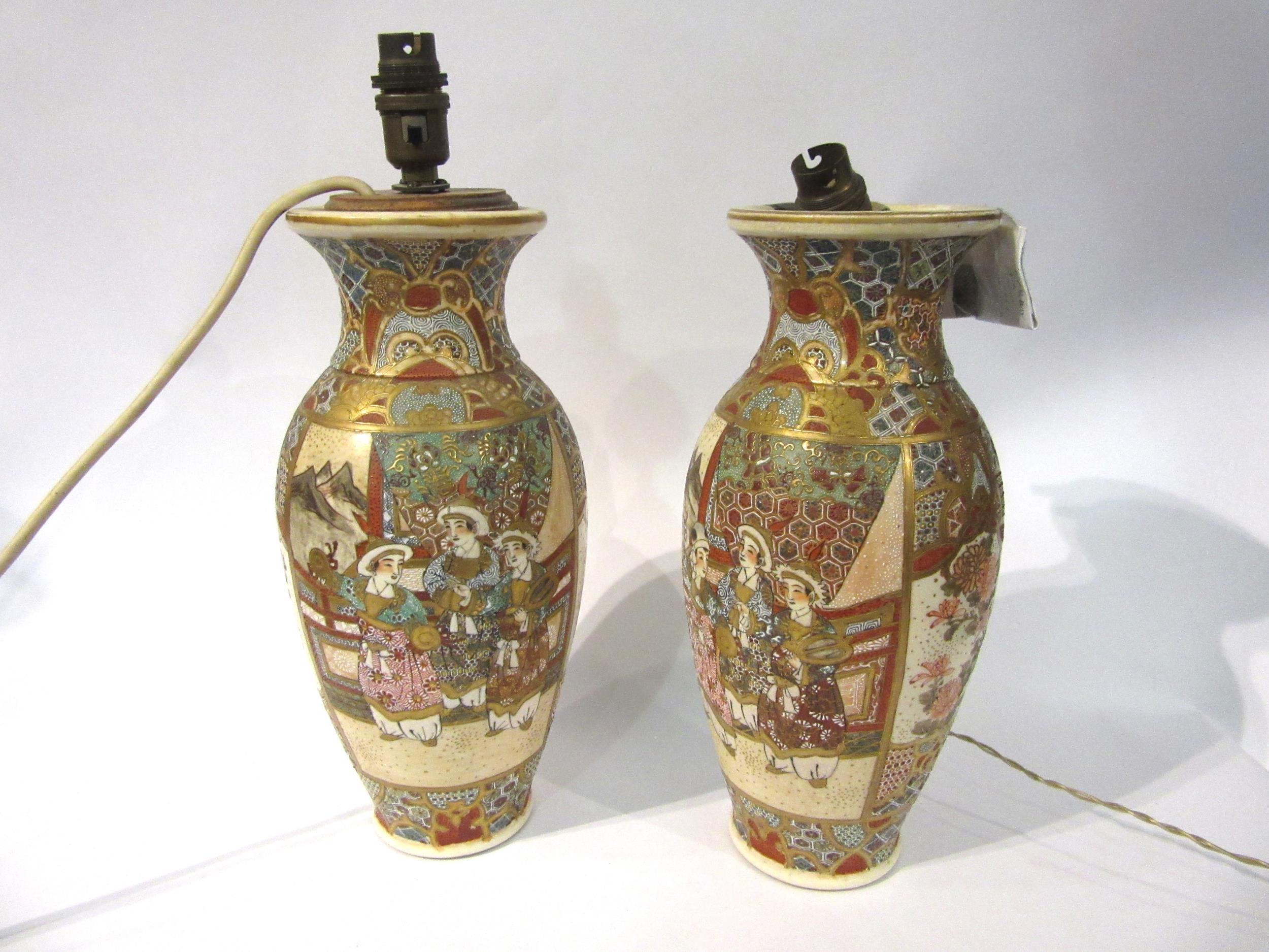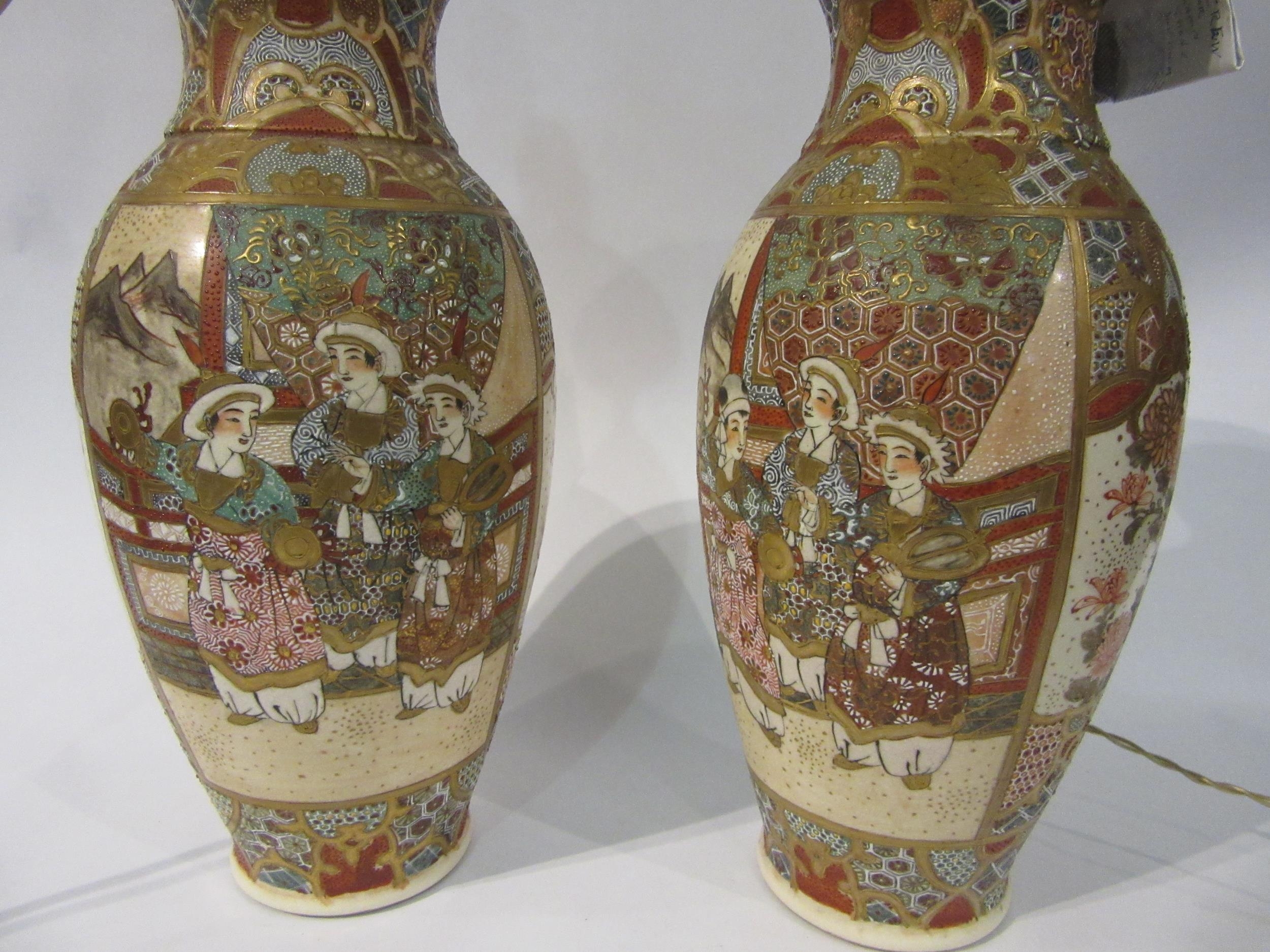 A pair of Japanese Satsuma style table lamps, bases 32cm high