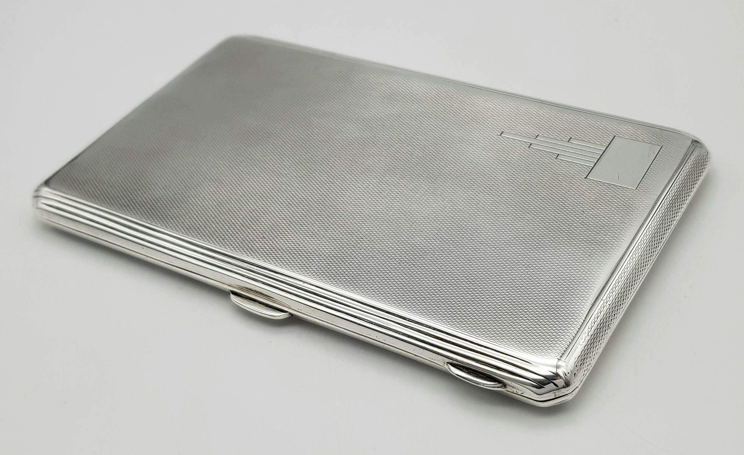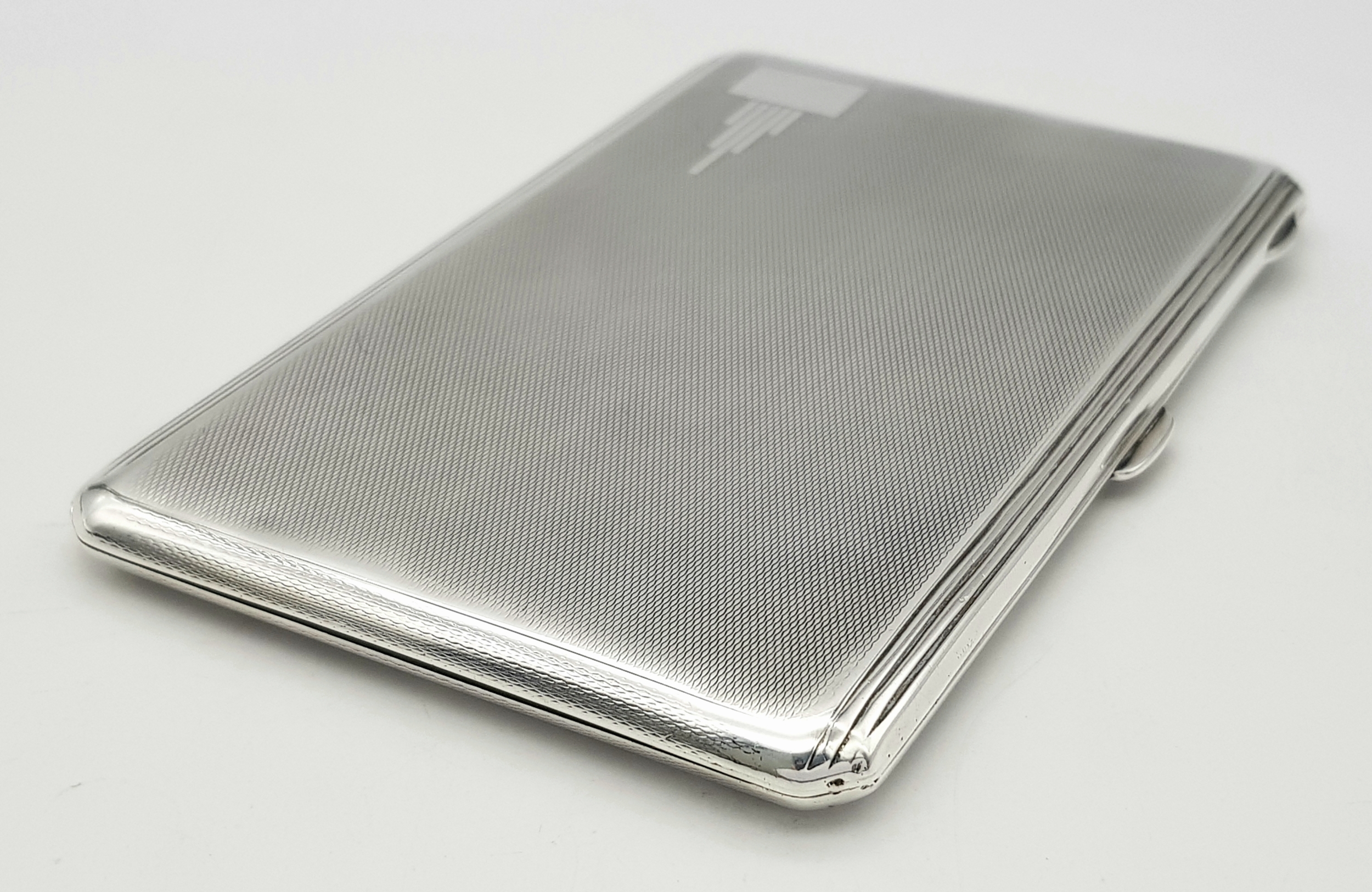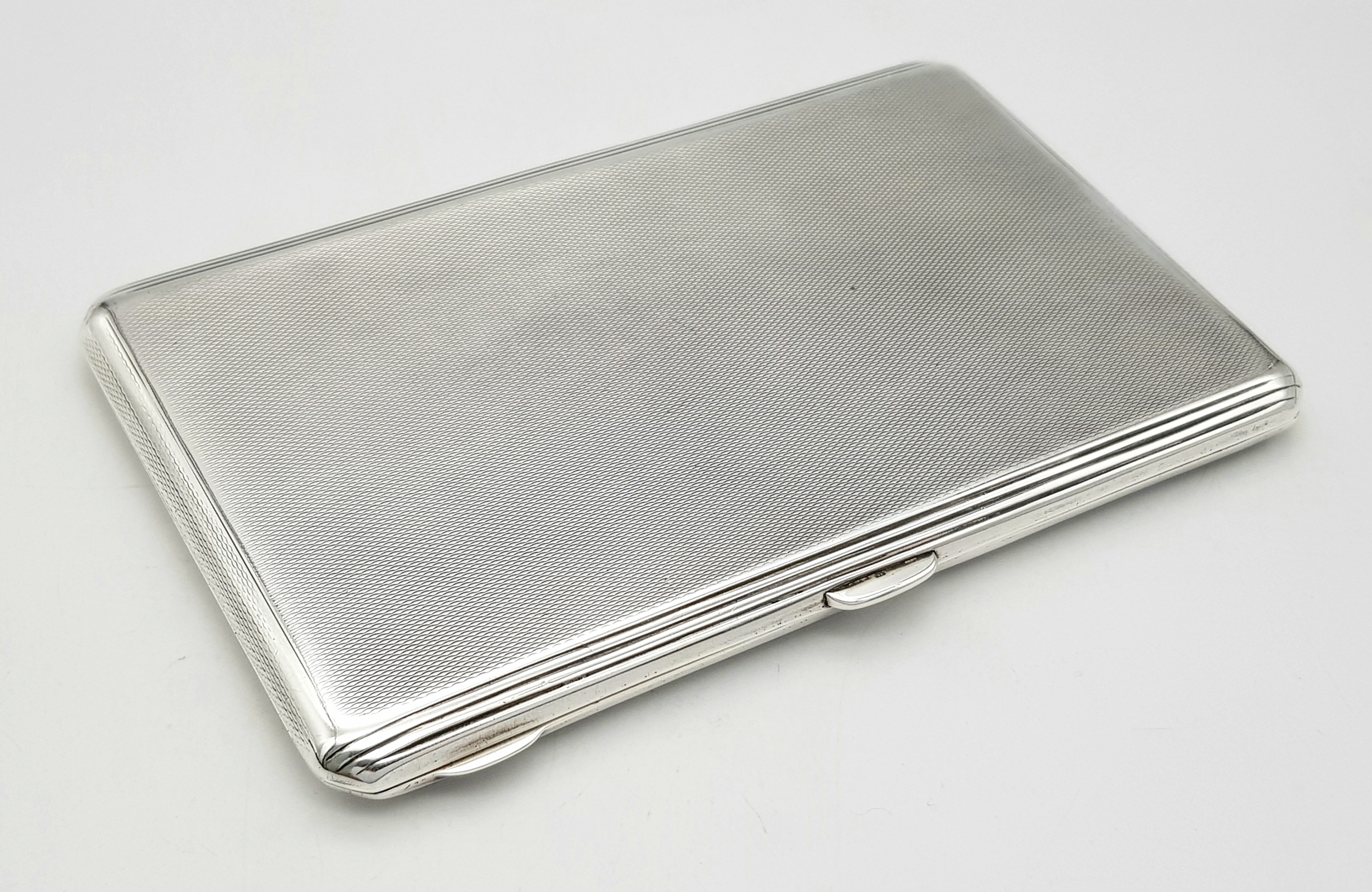 A 1937 Sterling Silver Large Cigarette Case. Machine tooled decoration. In very good condition for its age. Birmingham hallmarks. 14 x 8.5cm. 224g.