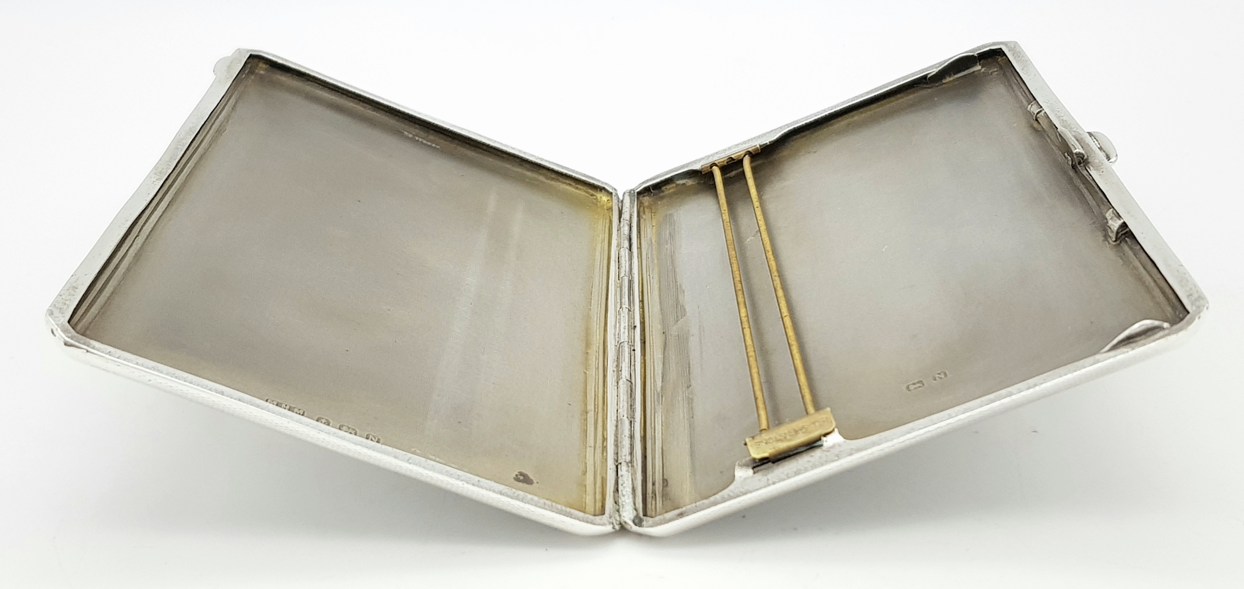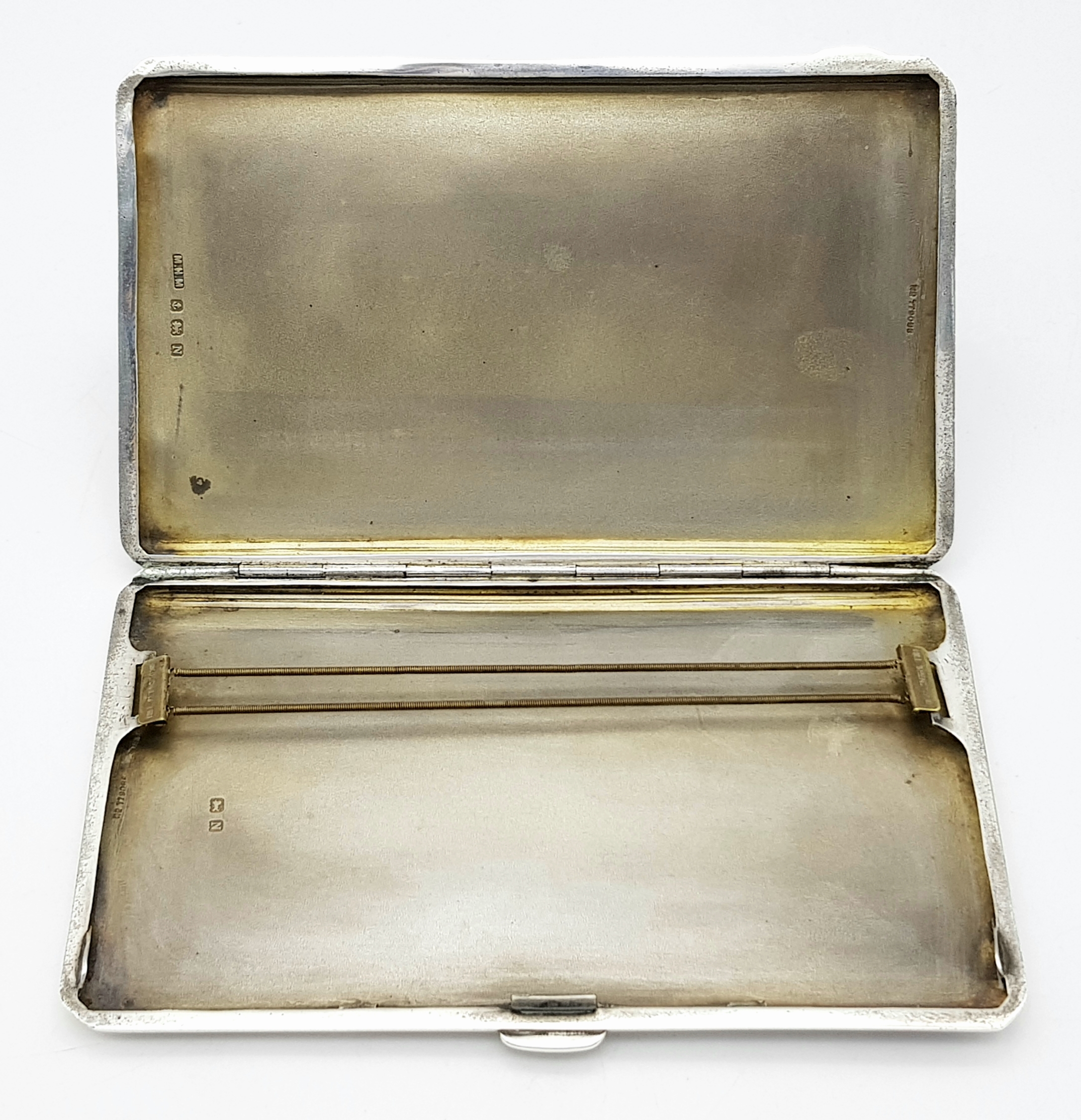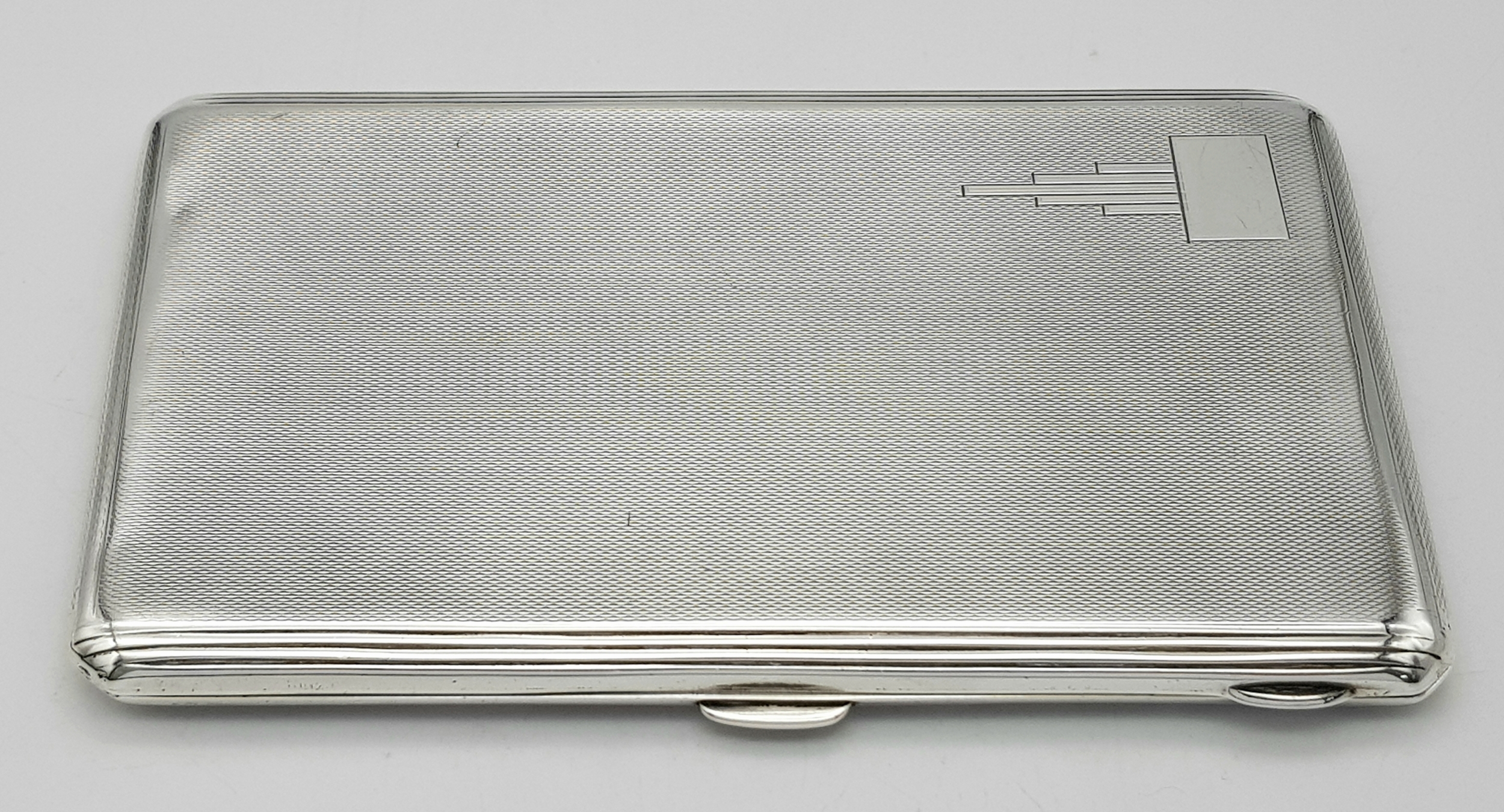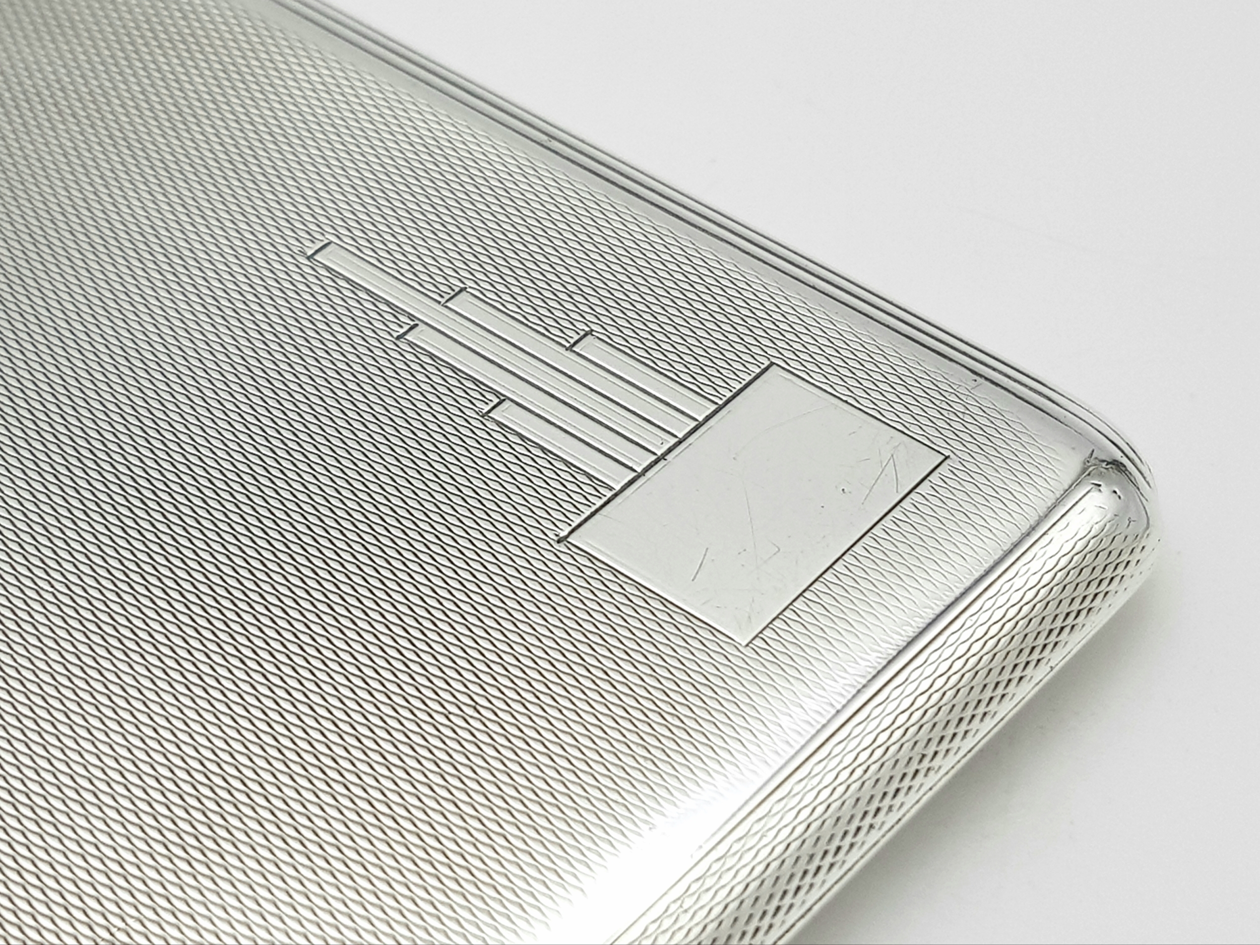 A 1937 Sterling Silver Large Cigarette Case. Machine tooled decoration. In very good condition for its age. Birmingham hallmarks. 14 x 8.5cm. 224g.