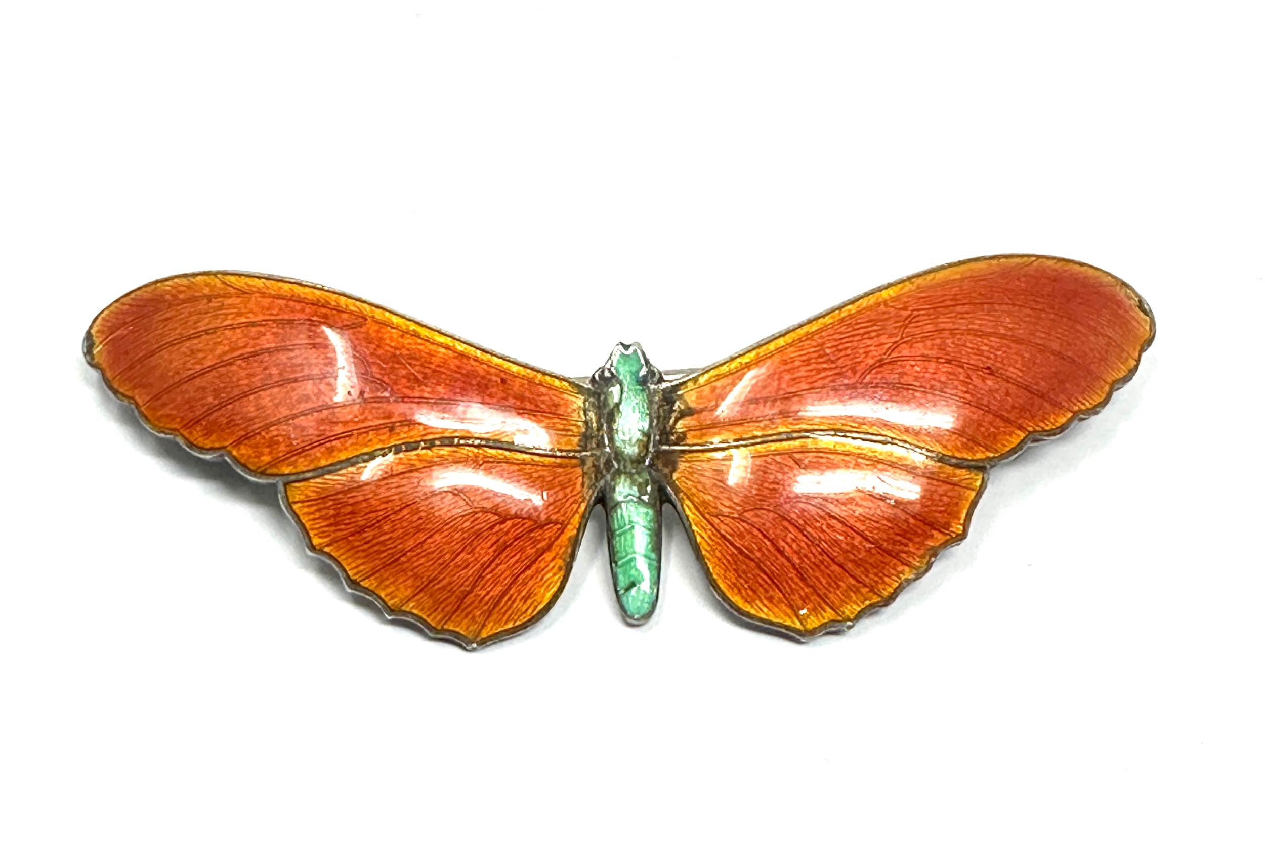 Large silver & enamel butterfly brooch measures approx 7cm wide