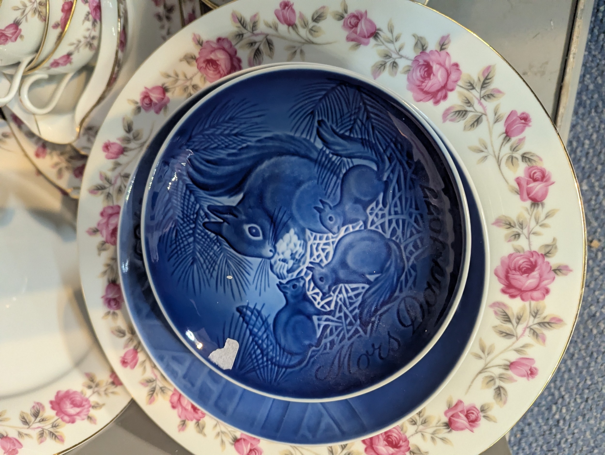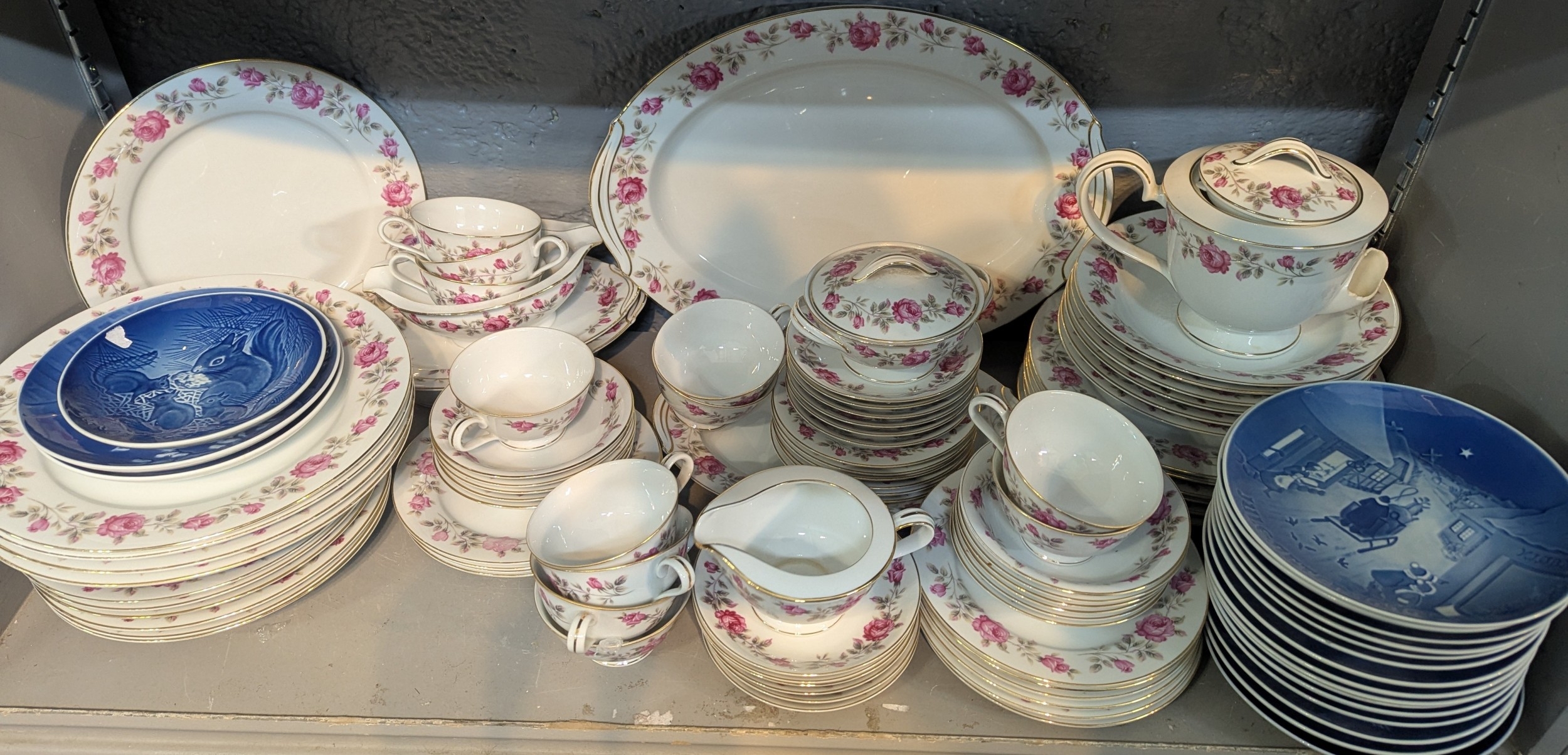 Mixed ceramics to include a collection of Copenhagen Christmas plates, together with a dinner/tea part service having floral decoration A/F Location: