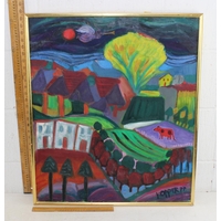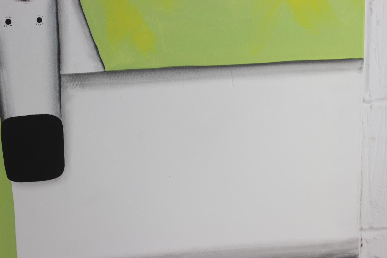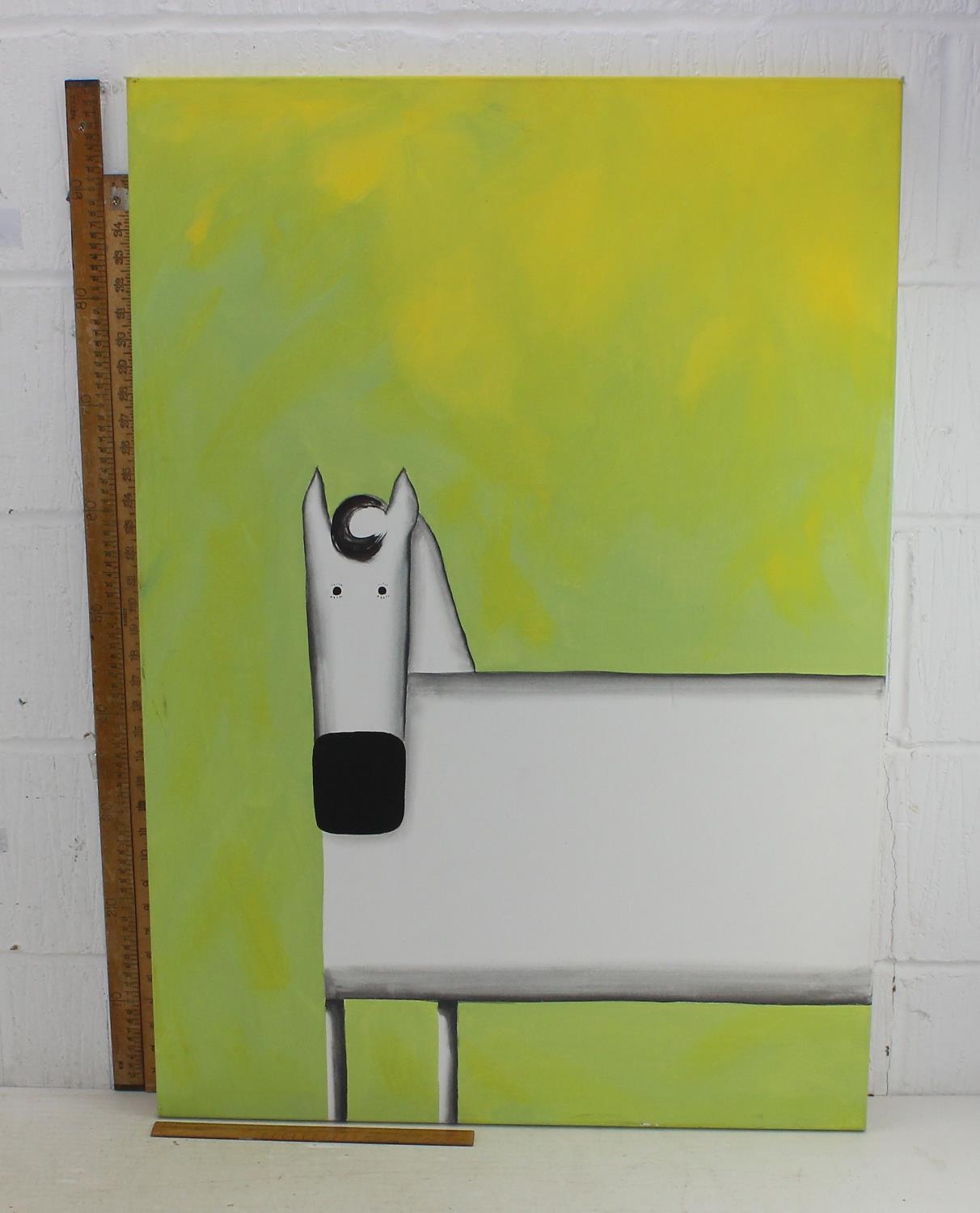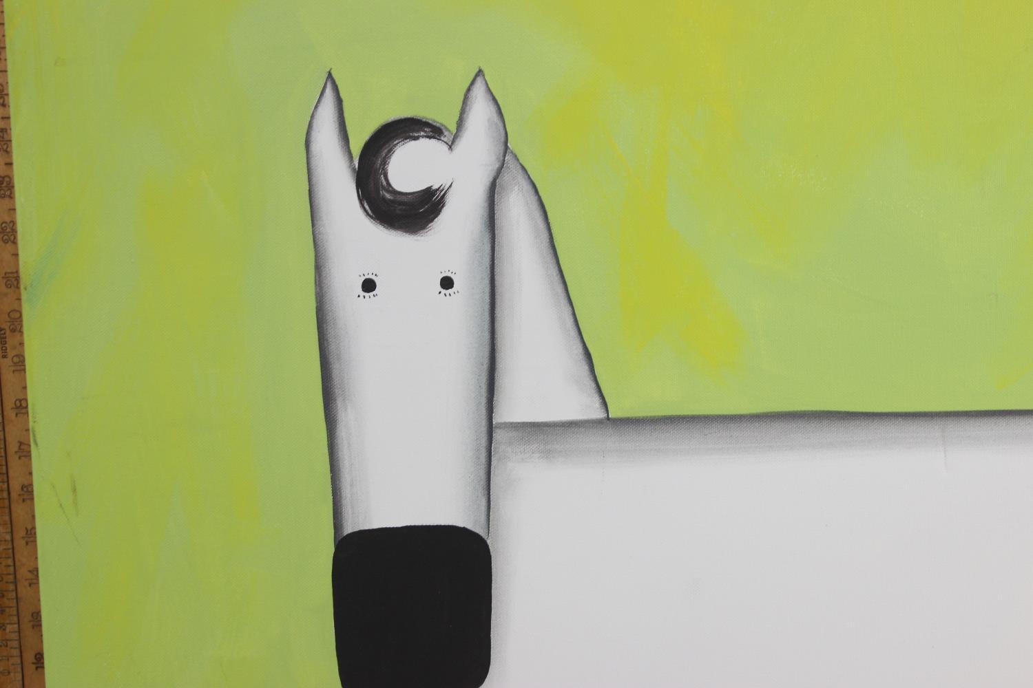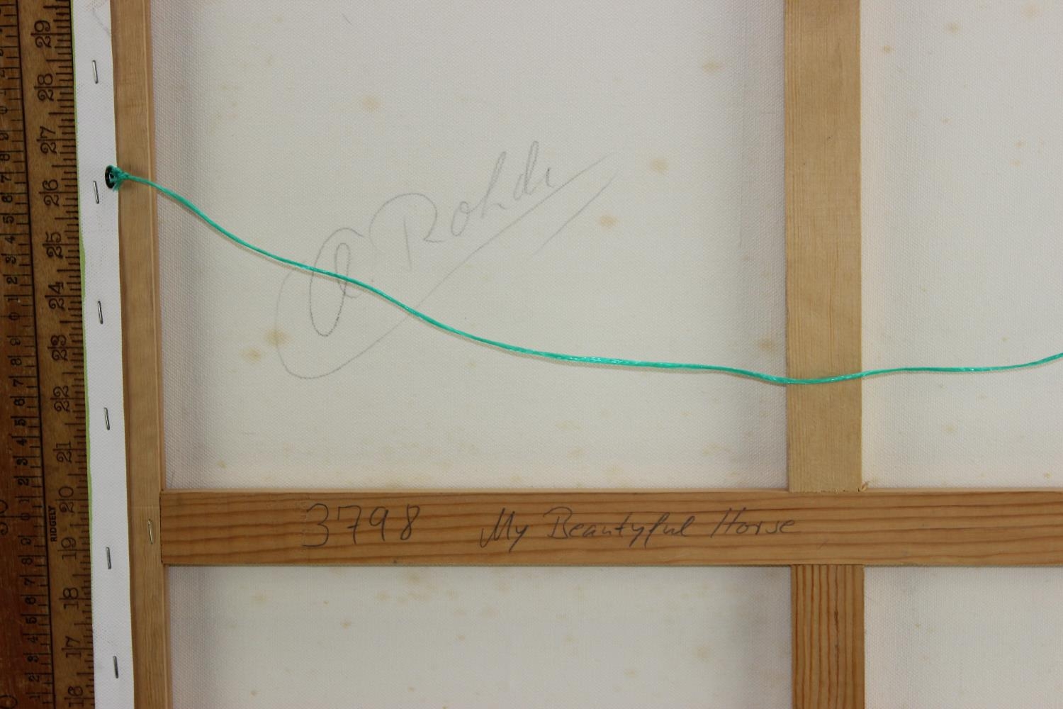 Large modern oil on canvas of a white horse on green background. Signed to frame A. Rohdi?