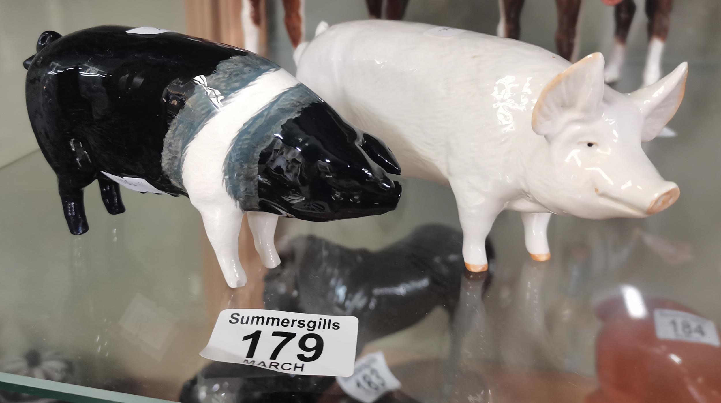Two Beswick Pigs - A Wessex Saddleback model 1511 Merrywood Silver Wings 56th plus White Boar CH Wall Champion Boy 53rd