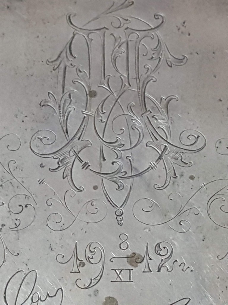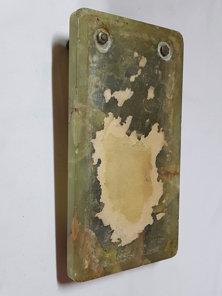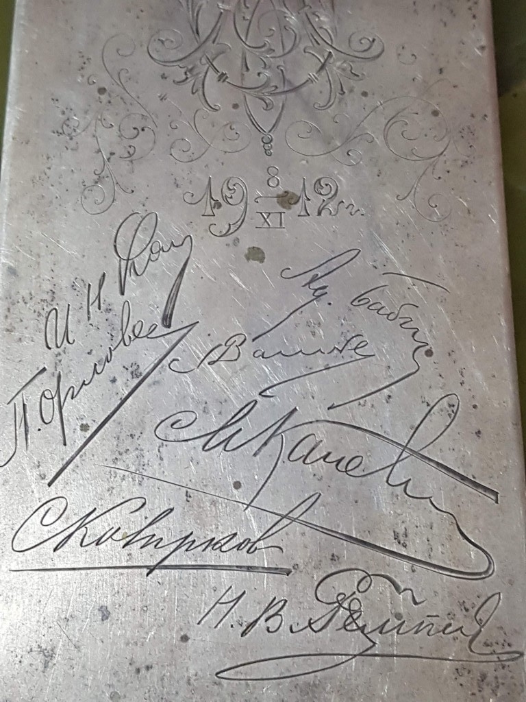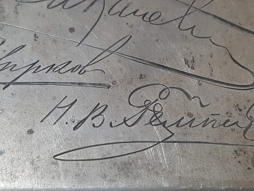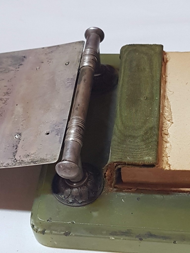 Antique Russian Silver (Circa 1920) Writing Pad Holder with Several Engraved Signatures and a Monogram on Green Onyx Base (Approx. 24cm x 13cm)/Antique Onyx Desk Notebook.