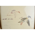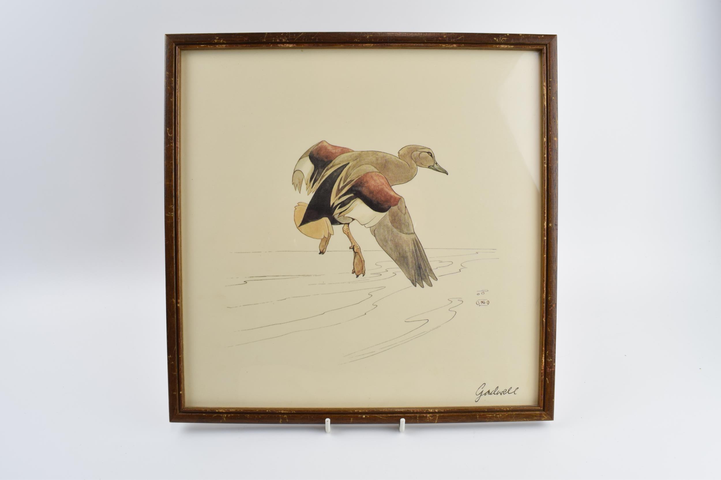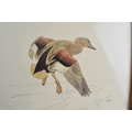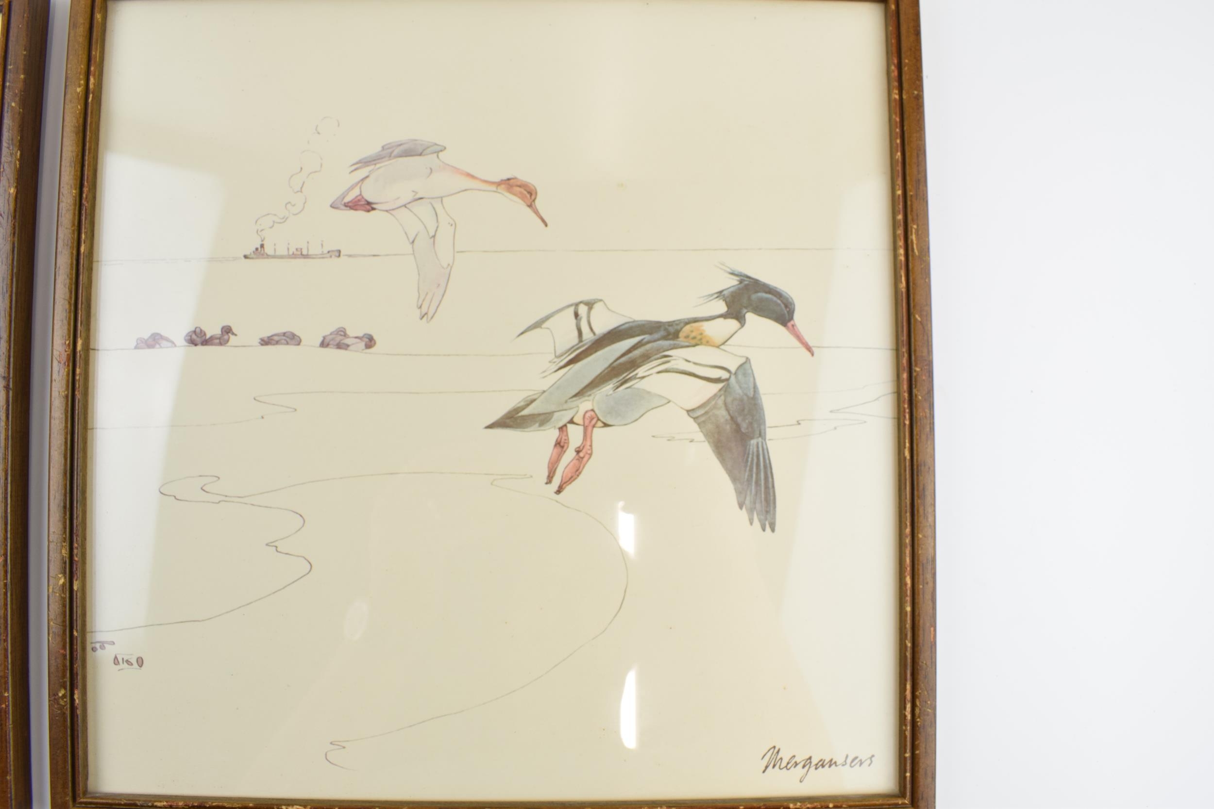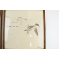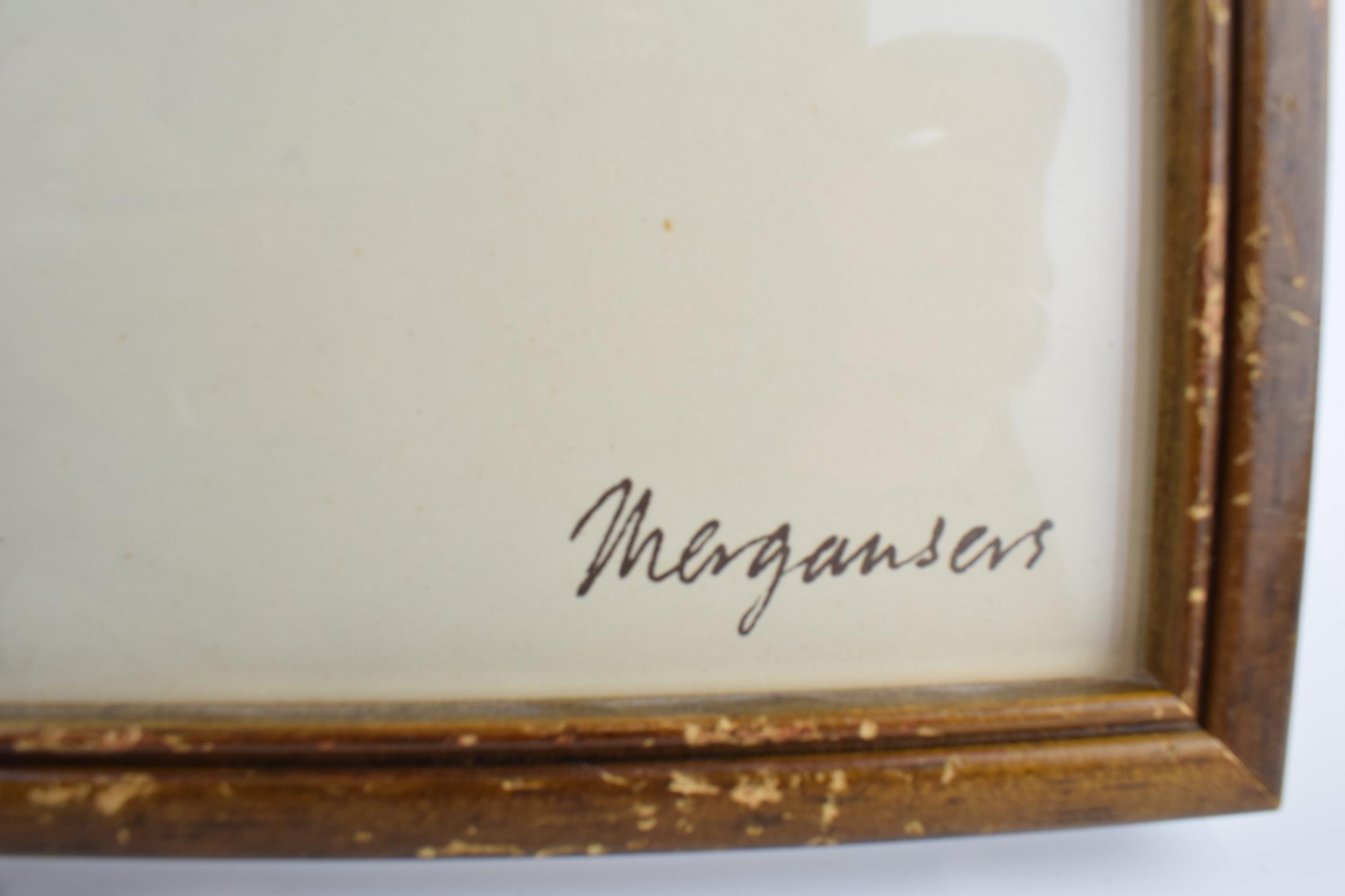Pair of early 20th century prints of Mergansers ducks and a Gadwell duck. 31cm x 31cm including frame.