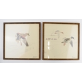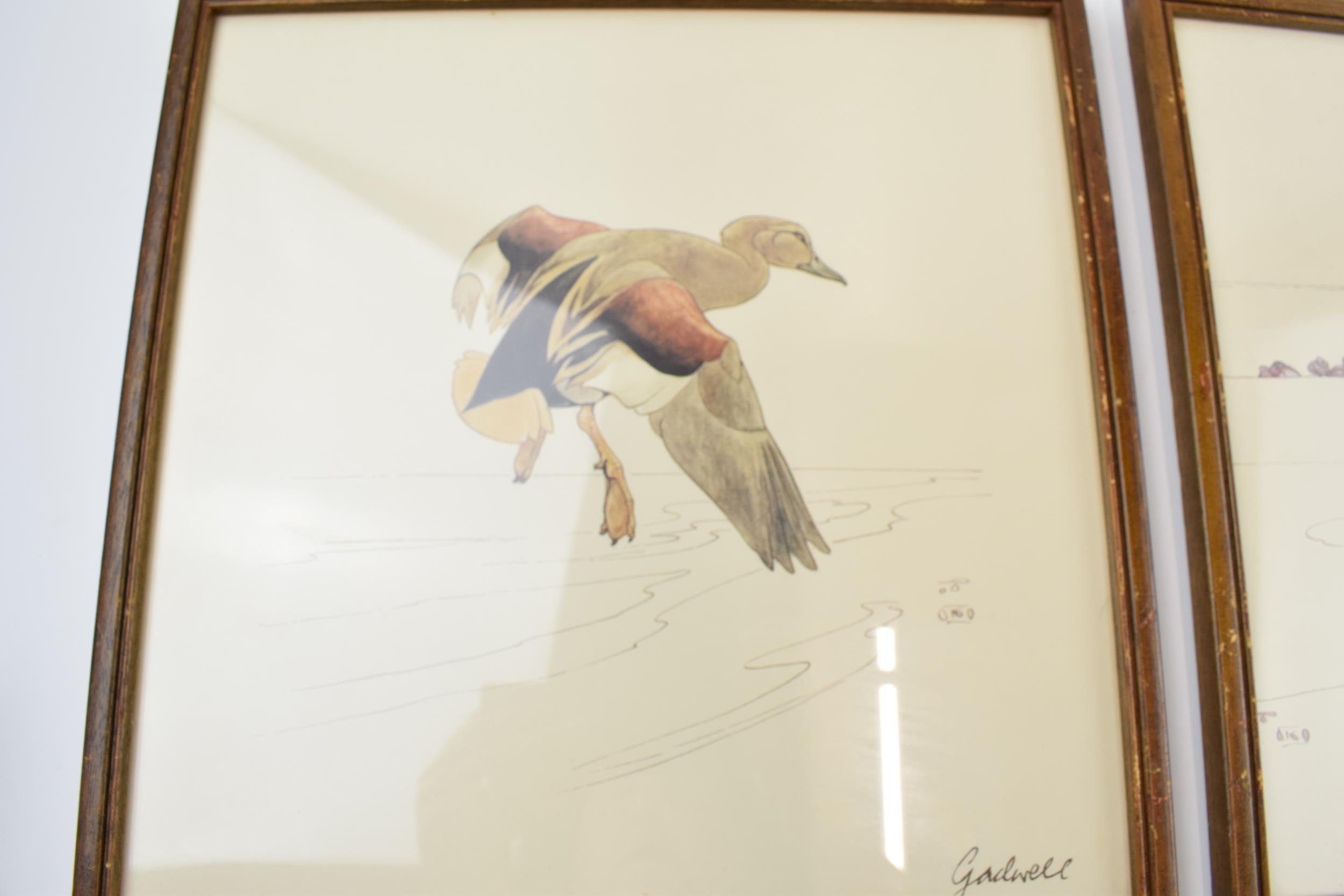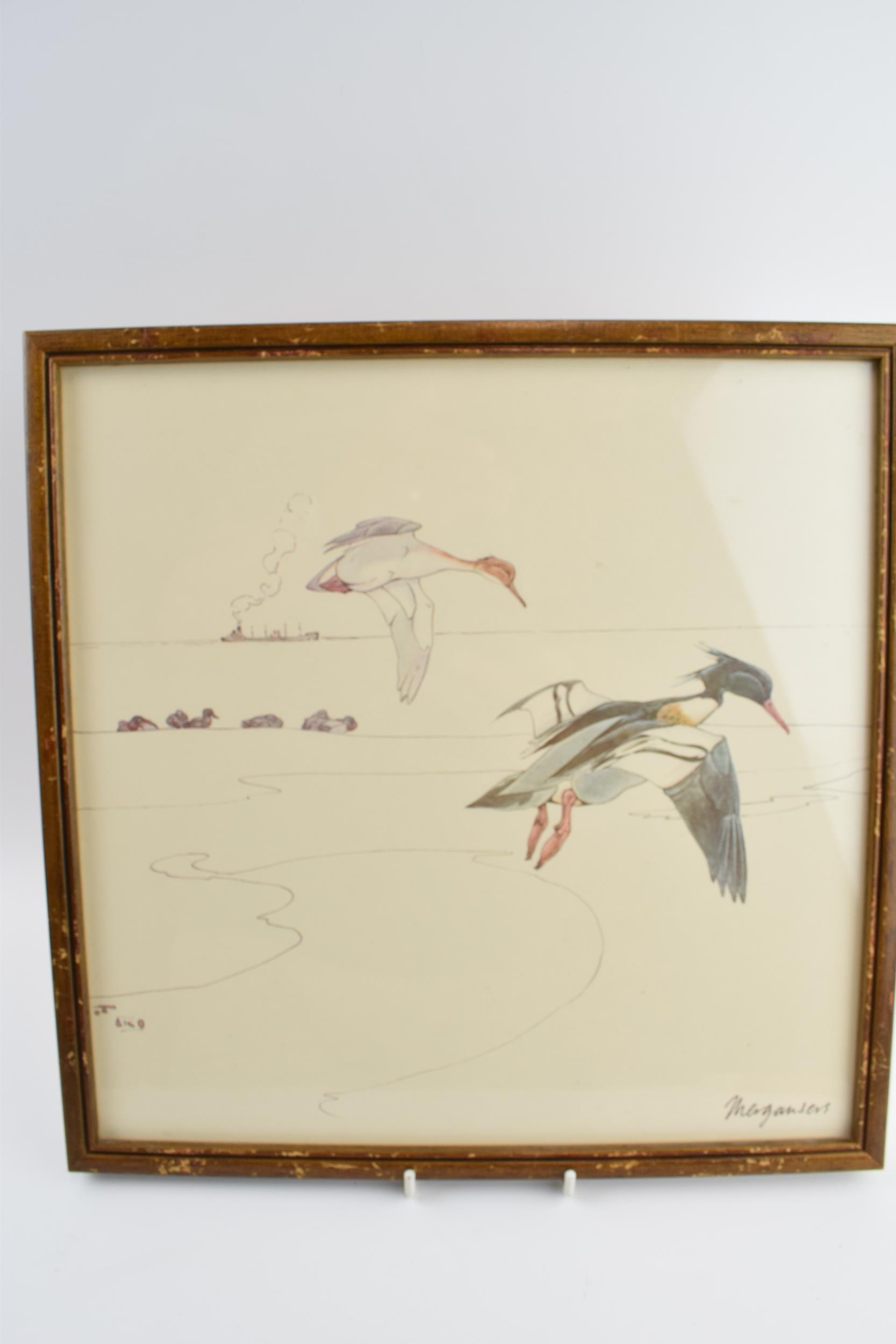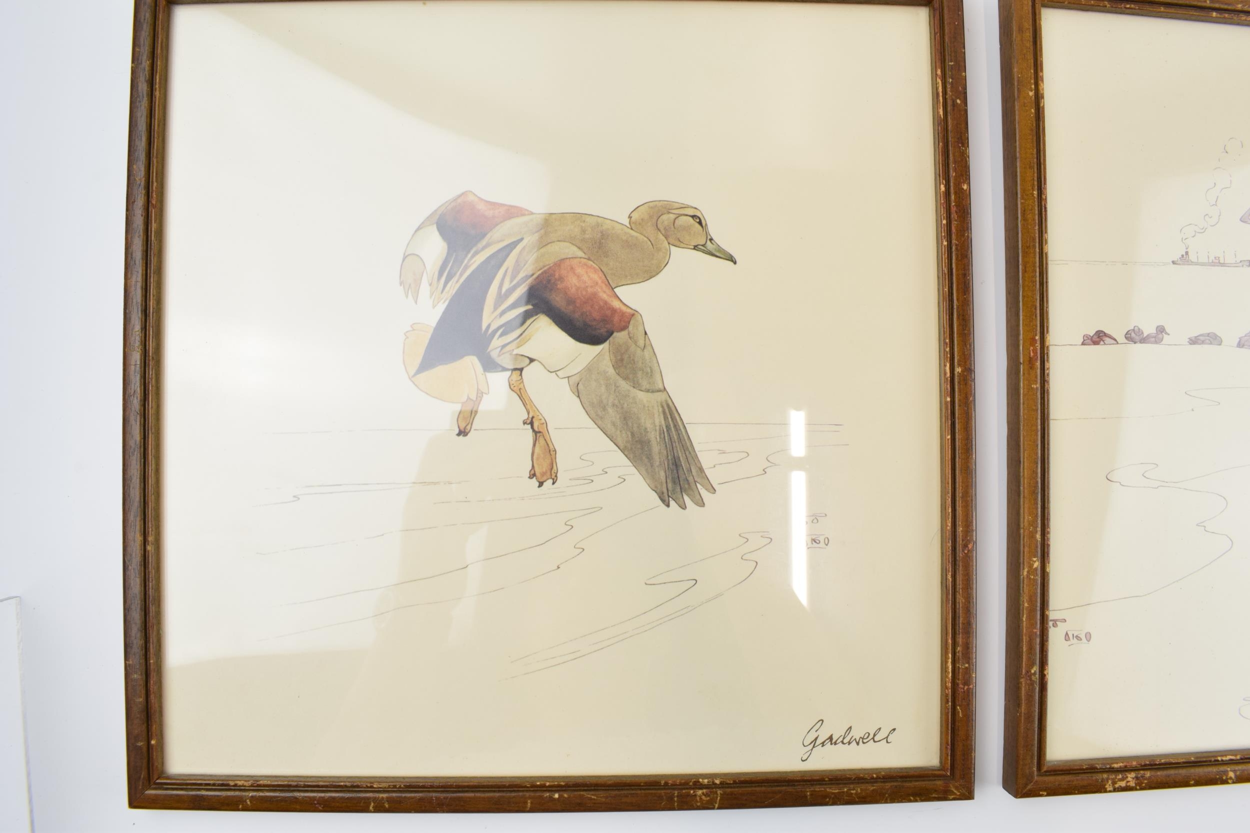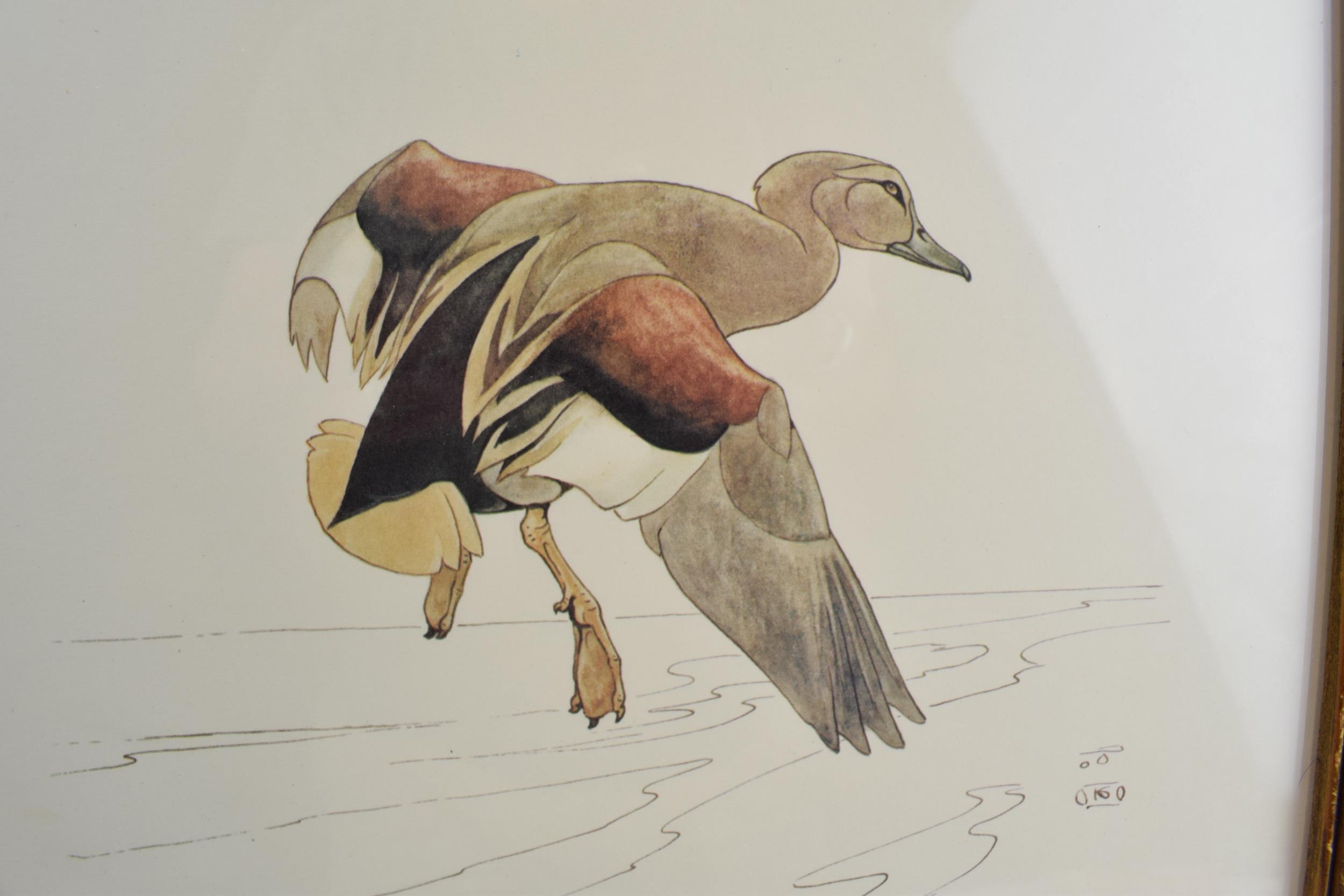 Pair of early 20th century prints of Mergansers ducks and a Gadwell duck. 31cm x 31cm including frame.