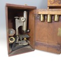 A collection of 19th century and later Scientific and Mathematical Instruments, including; two case 20th century R&J Beck Microscopes, two cased Carl Zeiss-Jena attachments, cased set of Aston & Mander and Stanley rulers, Stanley of London mathematical Instrument, Georgian Marratt & Short Improved Chondrometer, etc. (a lot)