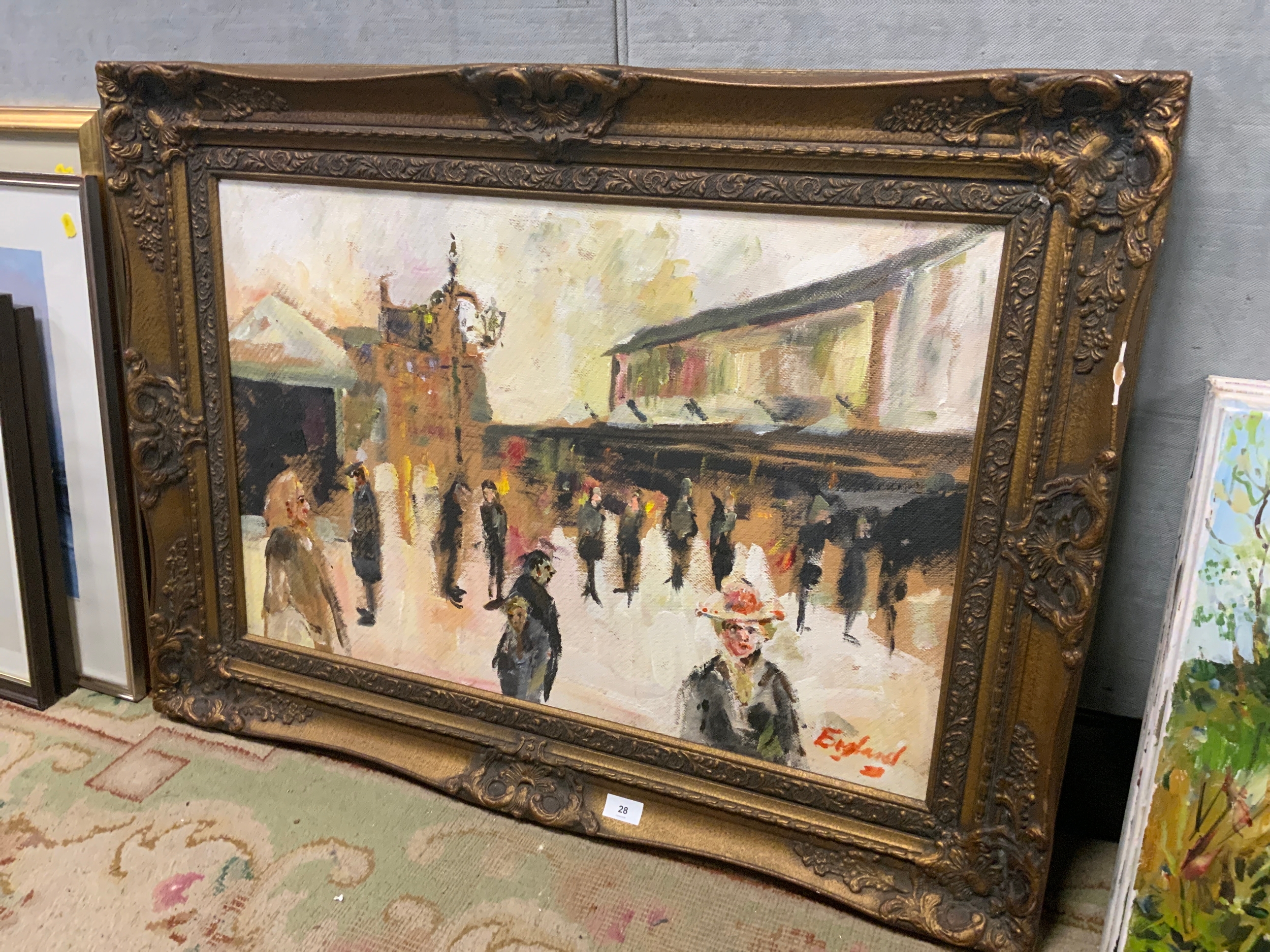 Frederick J England ‘Sybil’s Saturday market revival’? Oil on board 50 x 75 cm