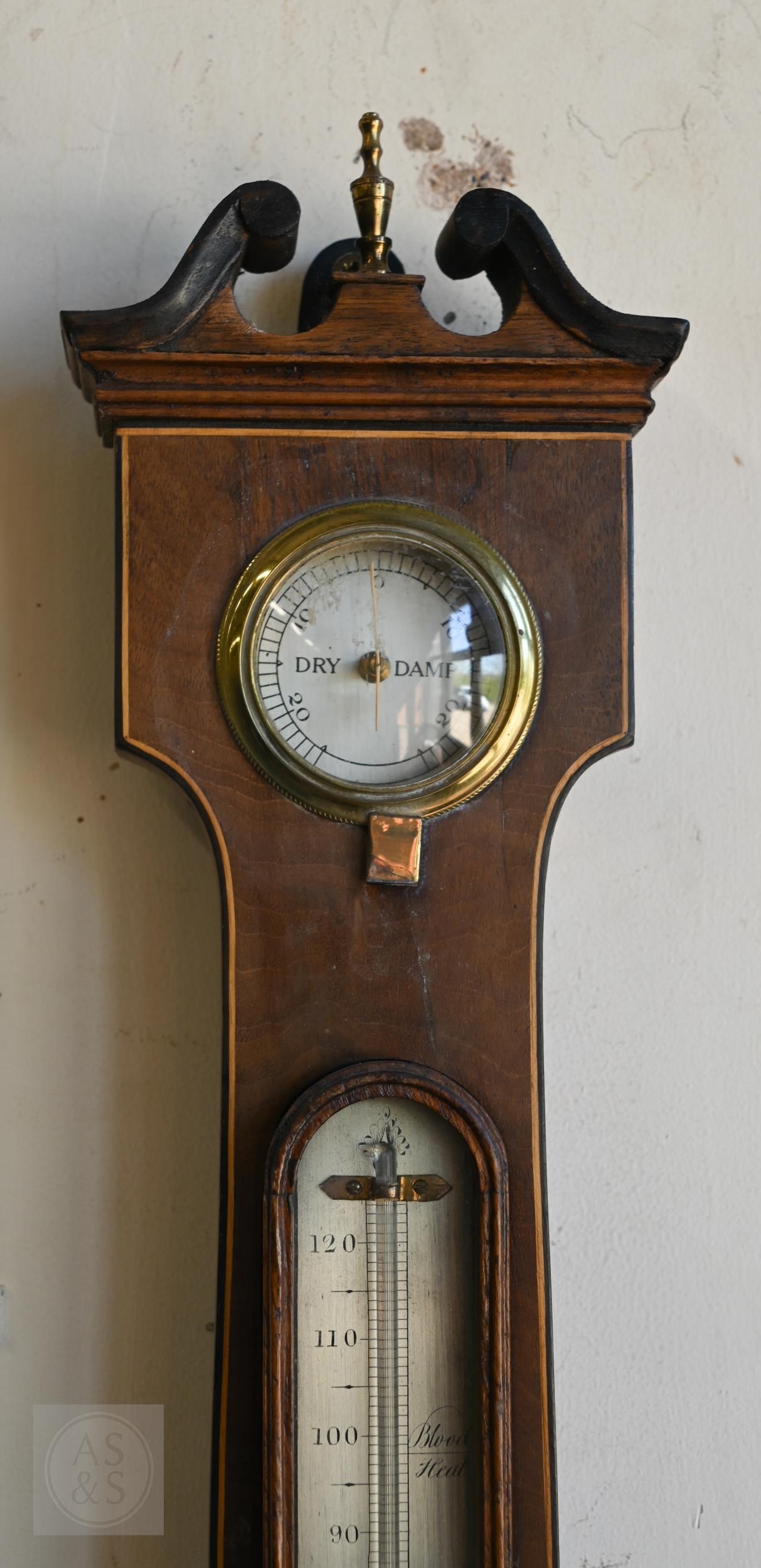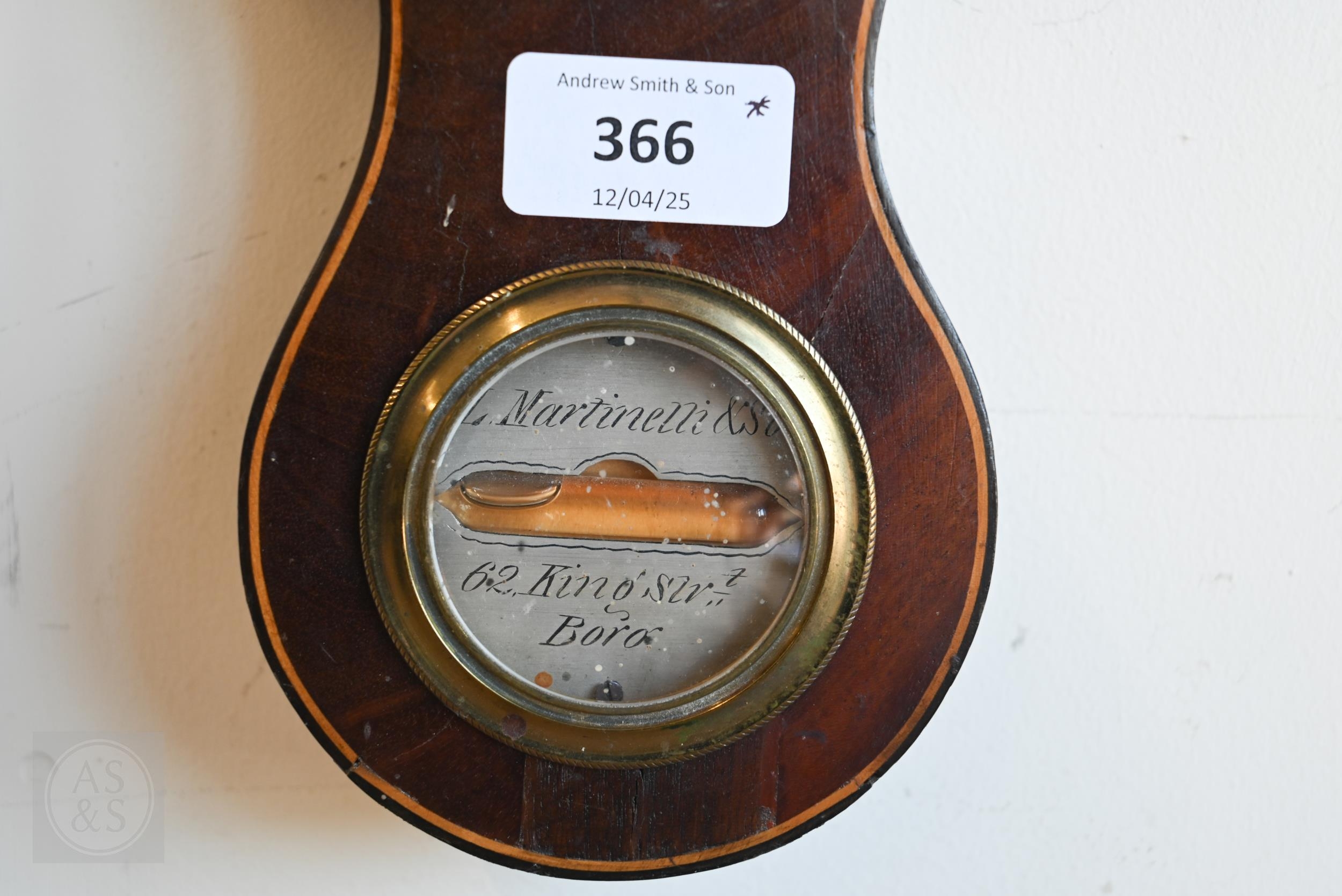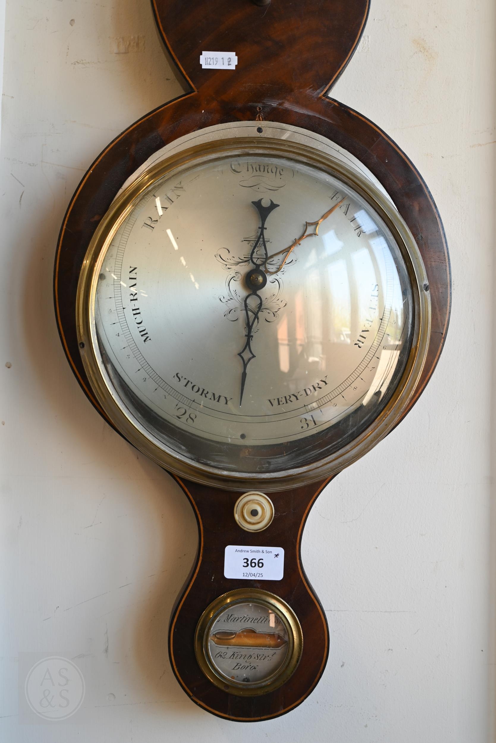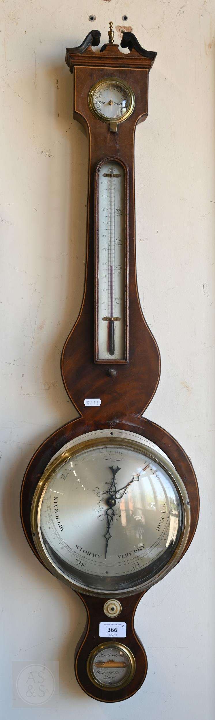 #Antique mahogany wheel barometer with silvered dials/registers by Martinelli & Sons, 98 cm h