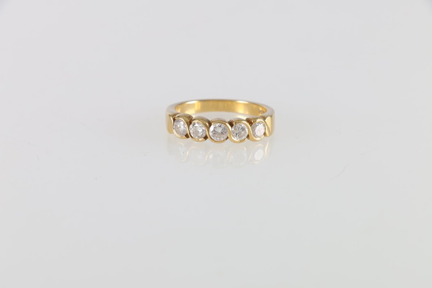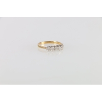 18ct gold diamond five stone dress ring, the central stone approximately 0.2cts, size M 4.5g
