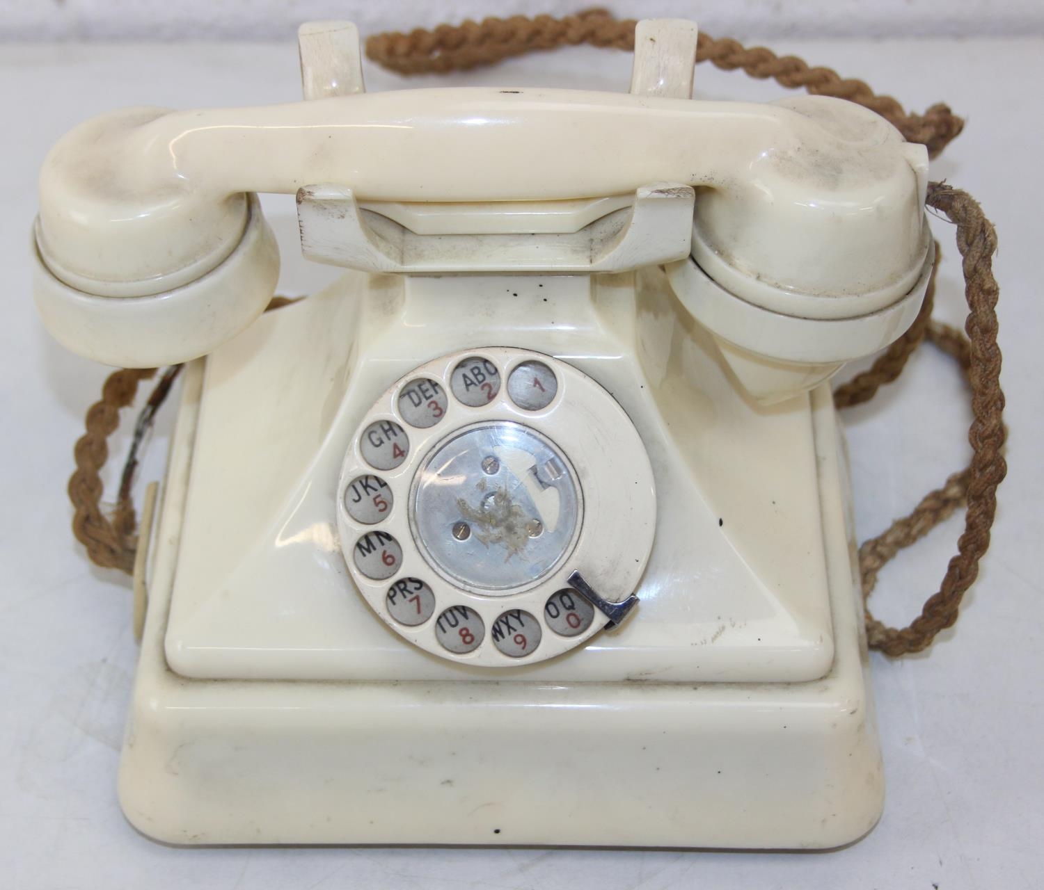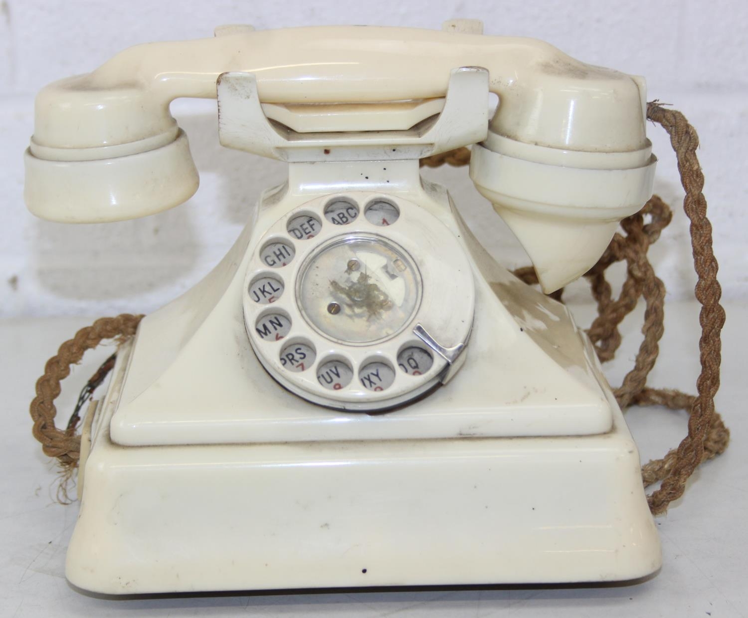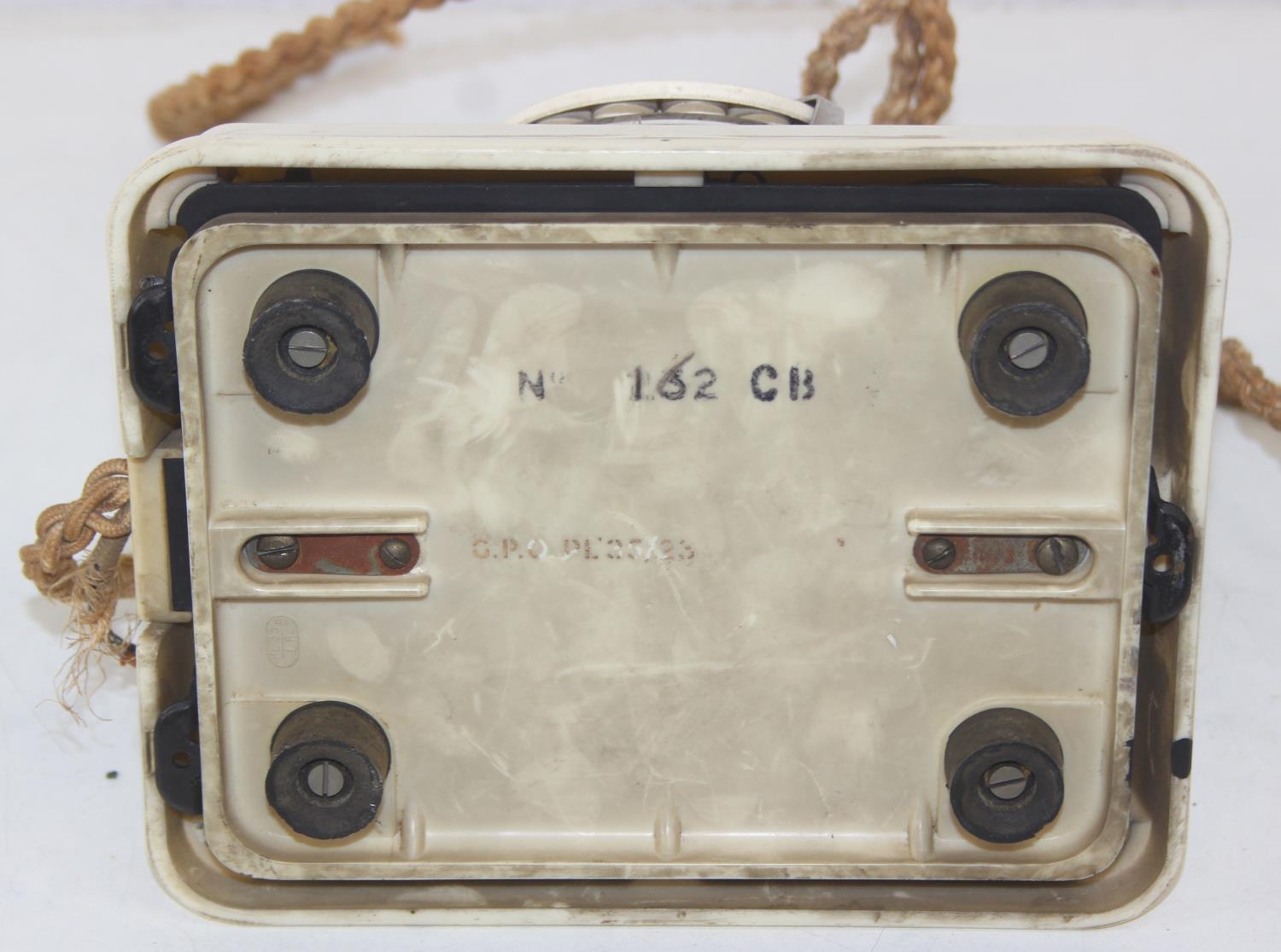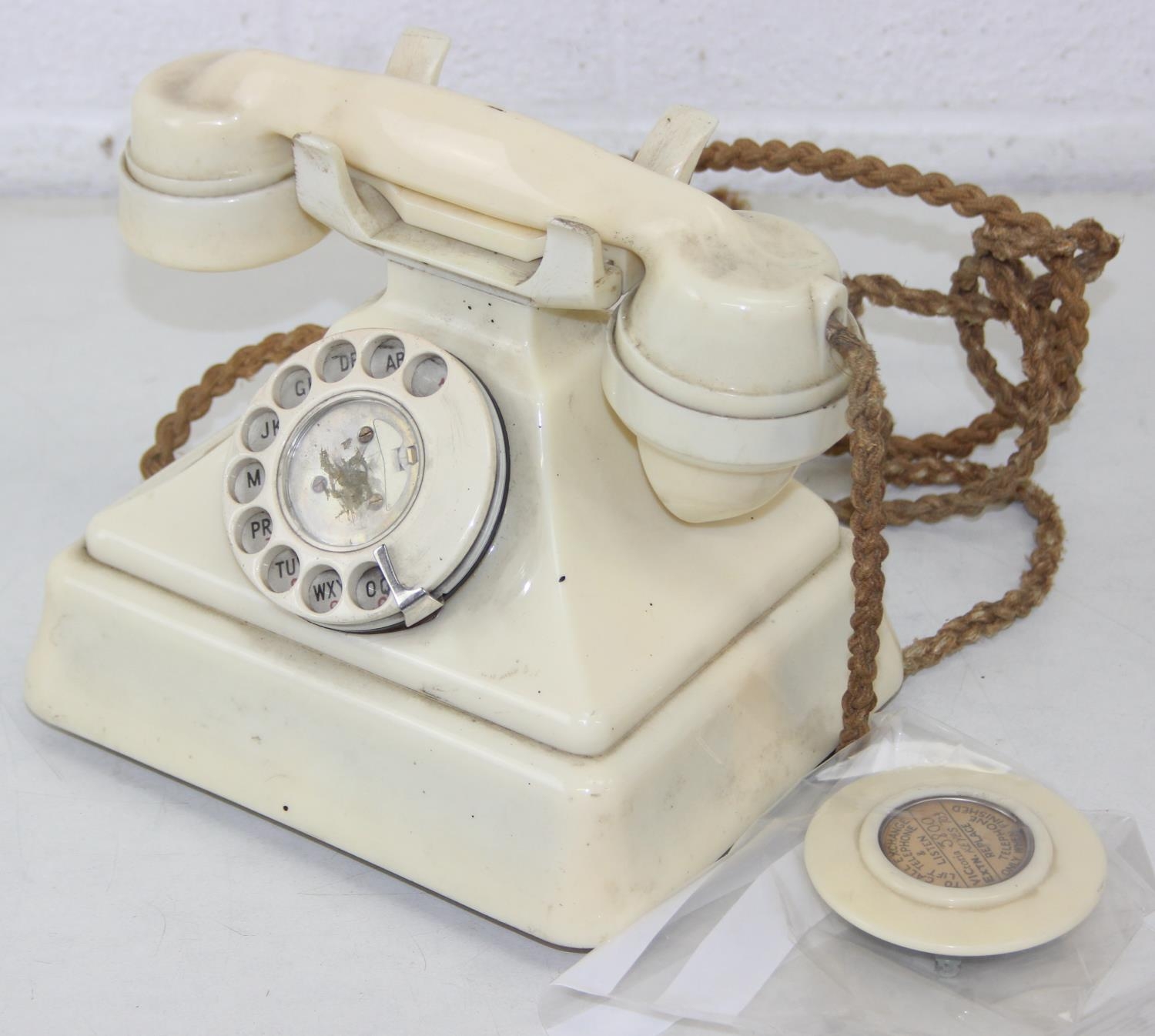 Telephones - a vintage white Bakelite "pyramid" telephone, marked to base 162 CB and GPO 35/23, with spare dial piece