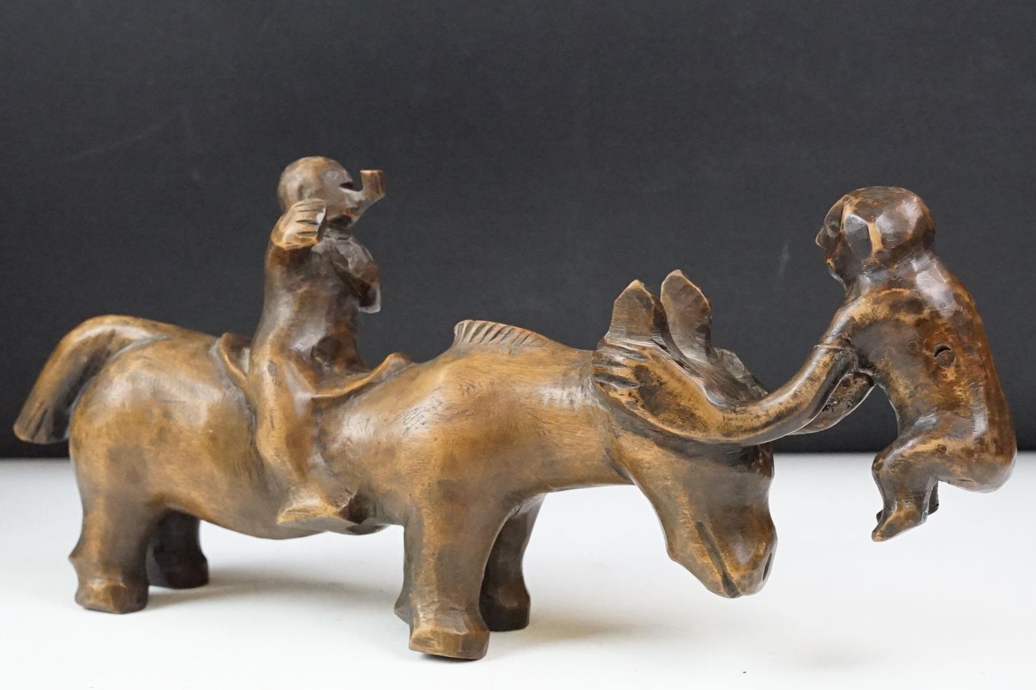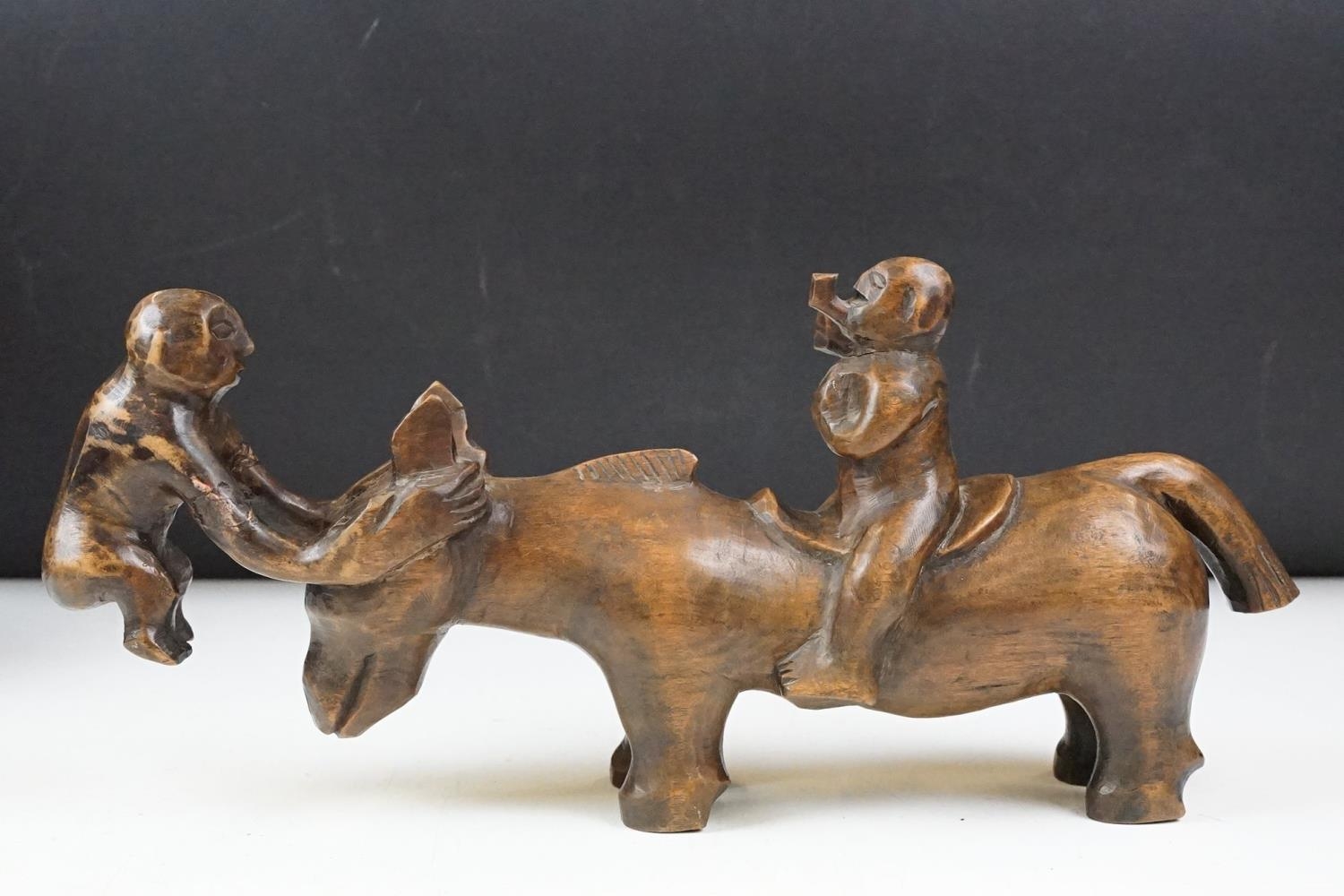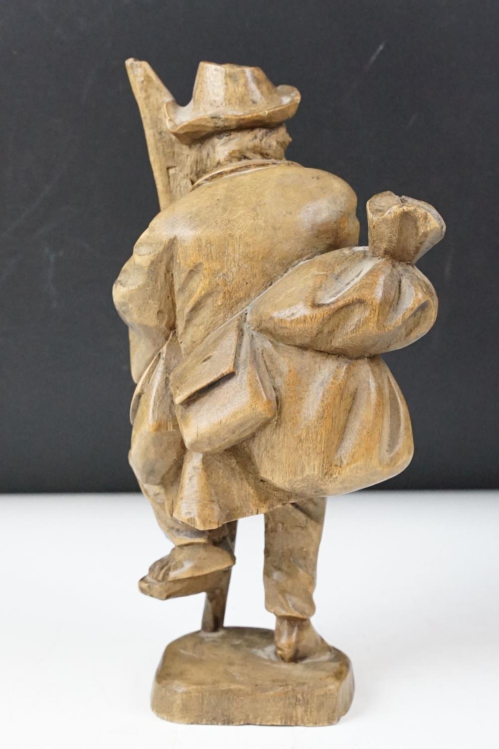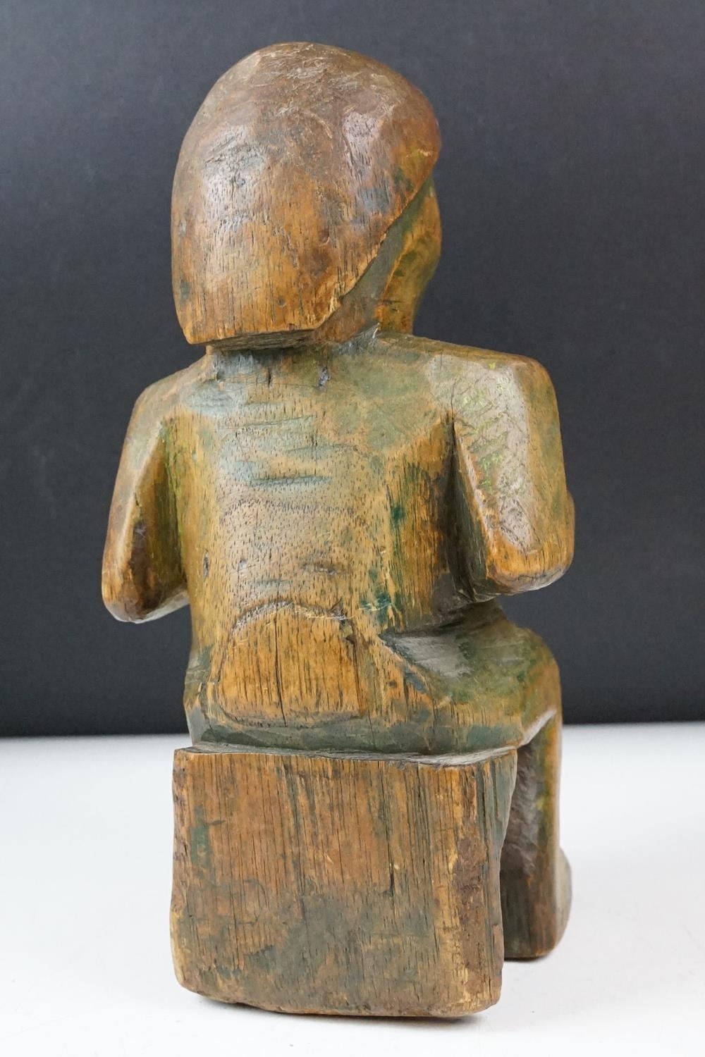 Collection of carved wooden figurines to include some African Tribal examples, a mother and child figure, traveller and female bust. Tallest measures 28cm.