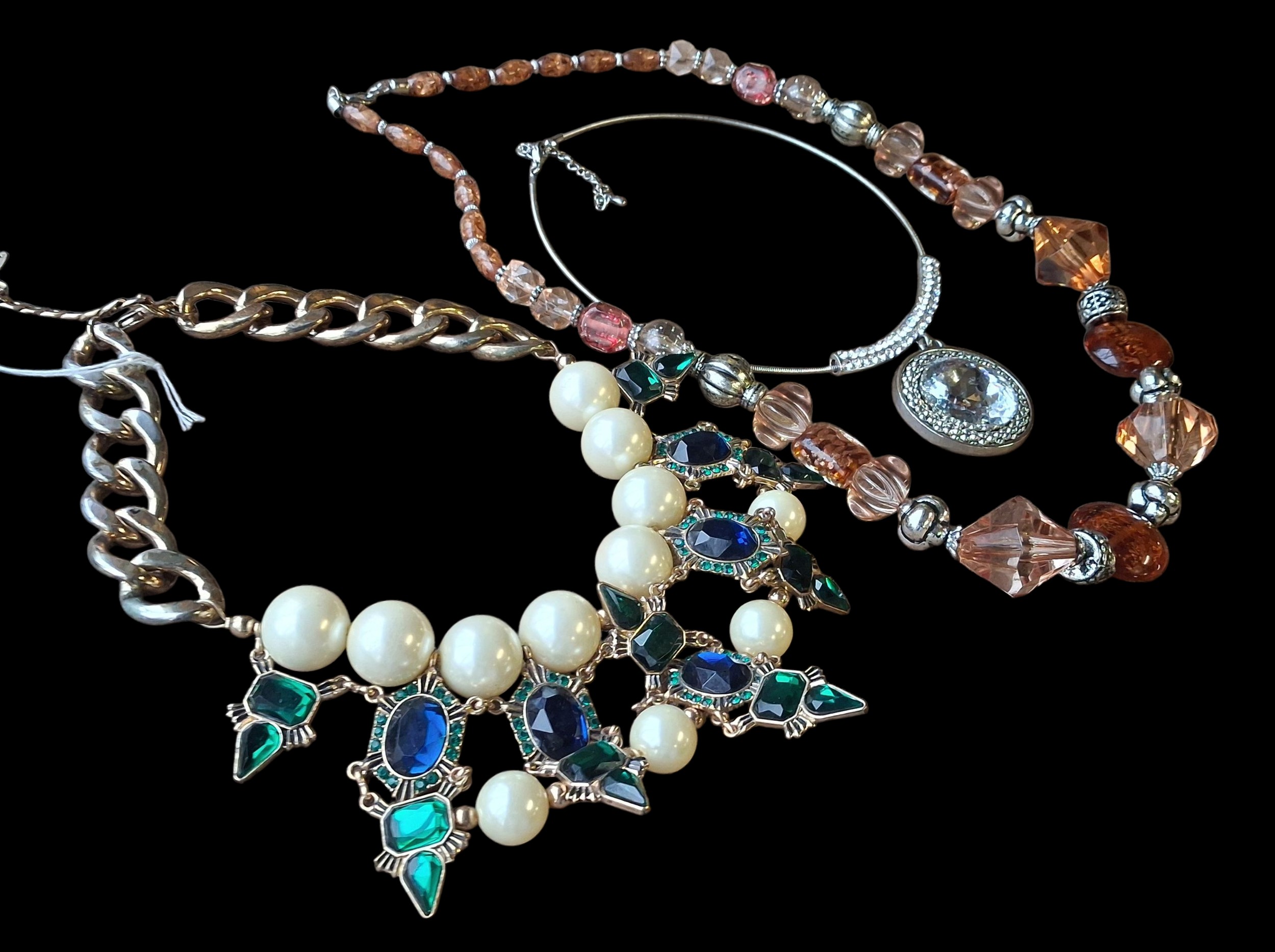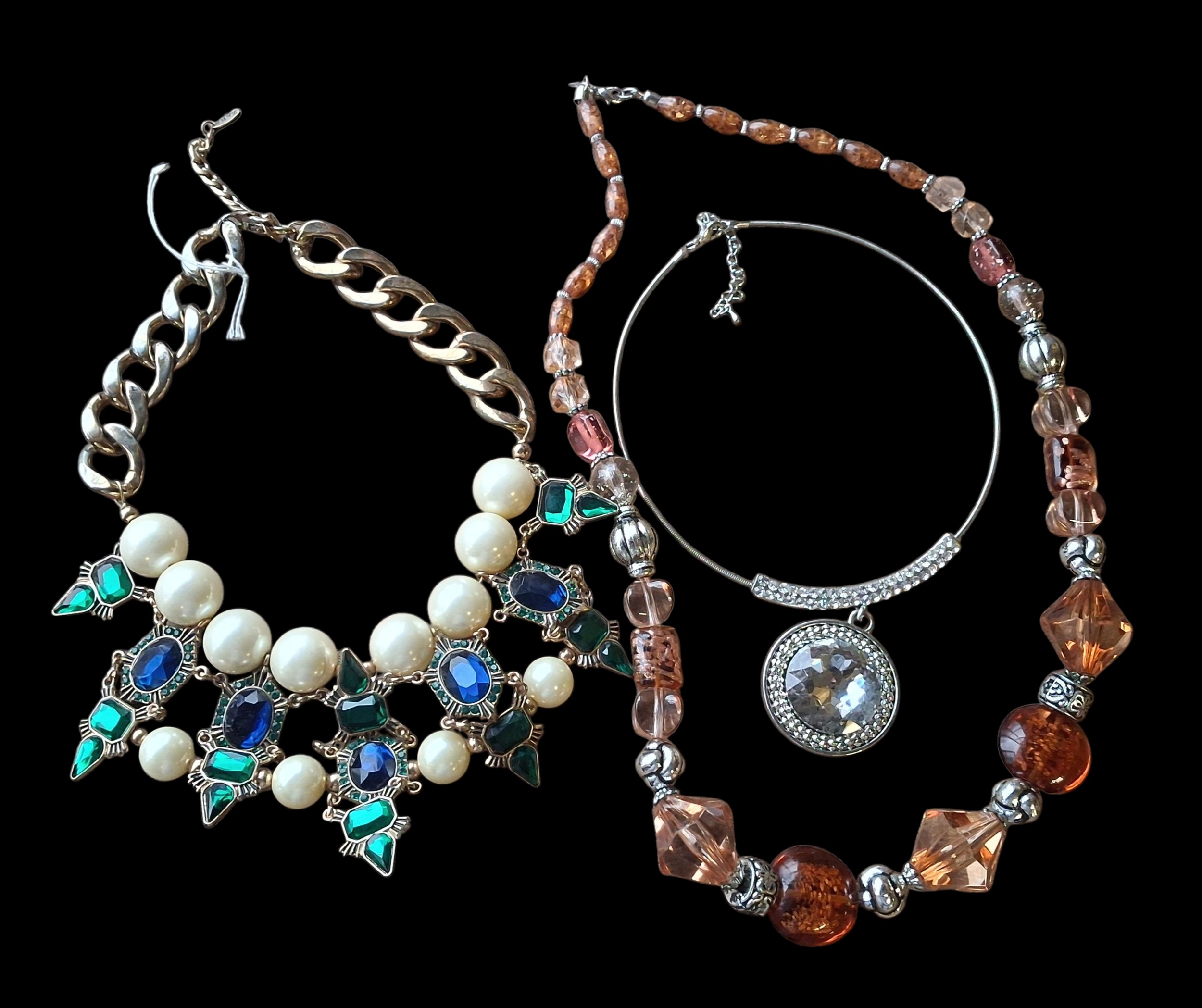 3 COSTUME NECKLACE 2 LARGE BEADED AND A CHOKER TYPE