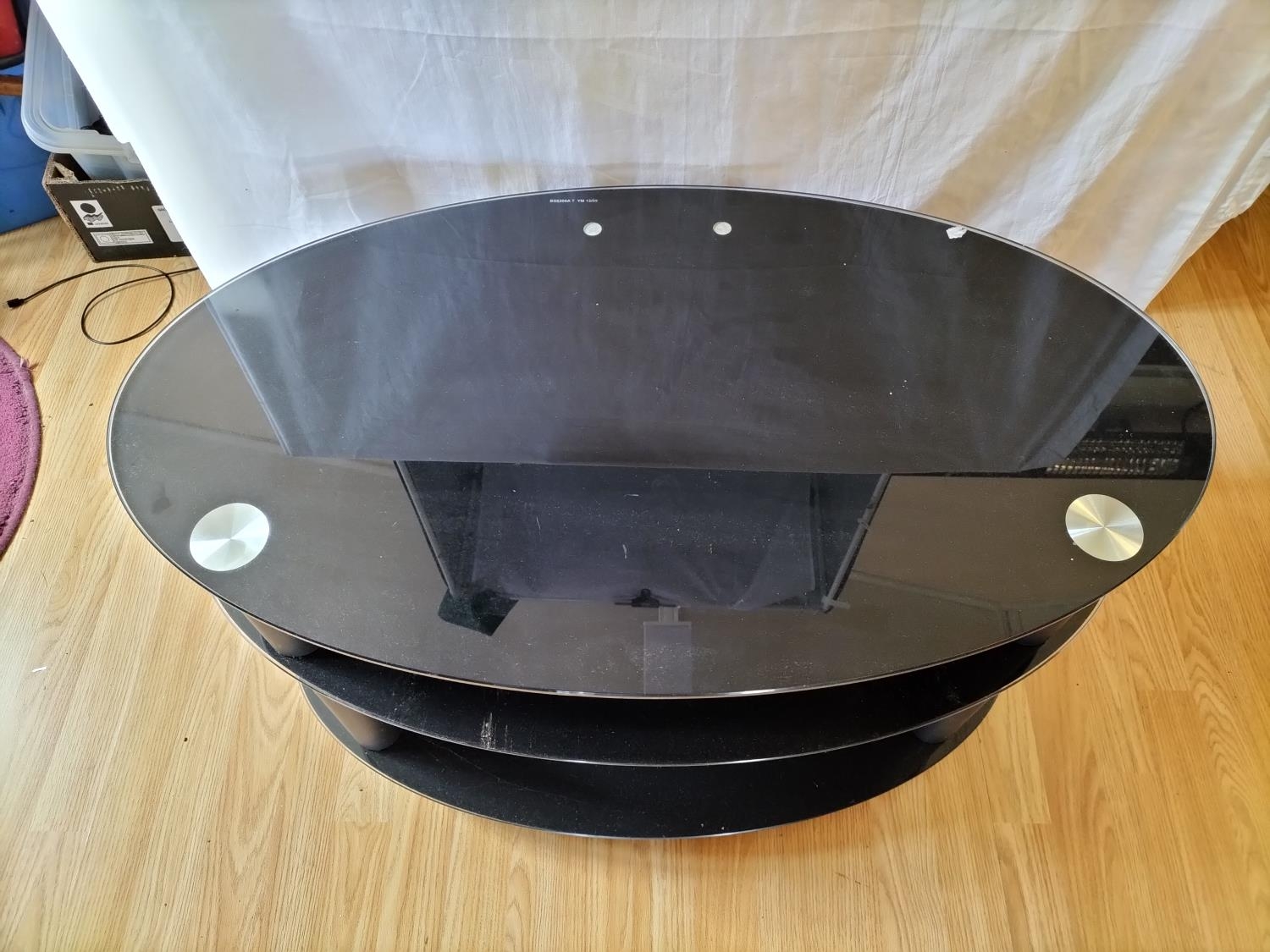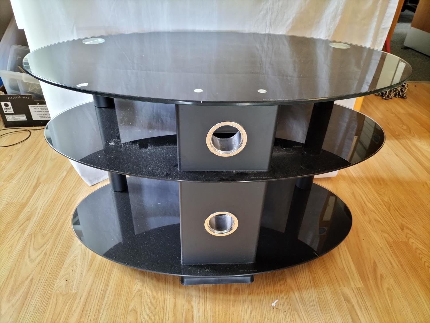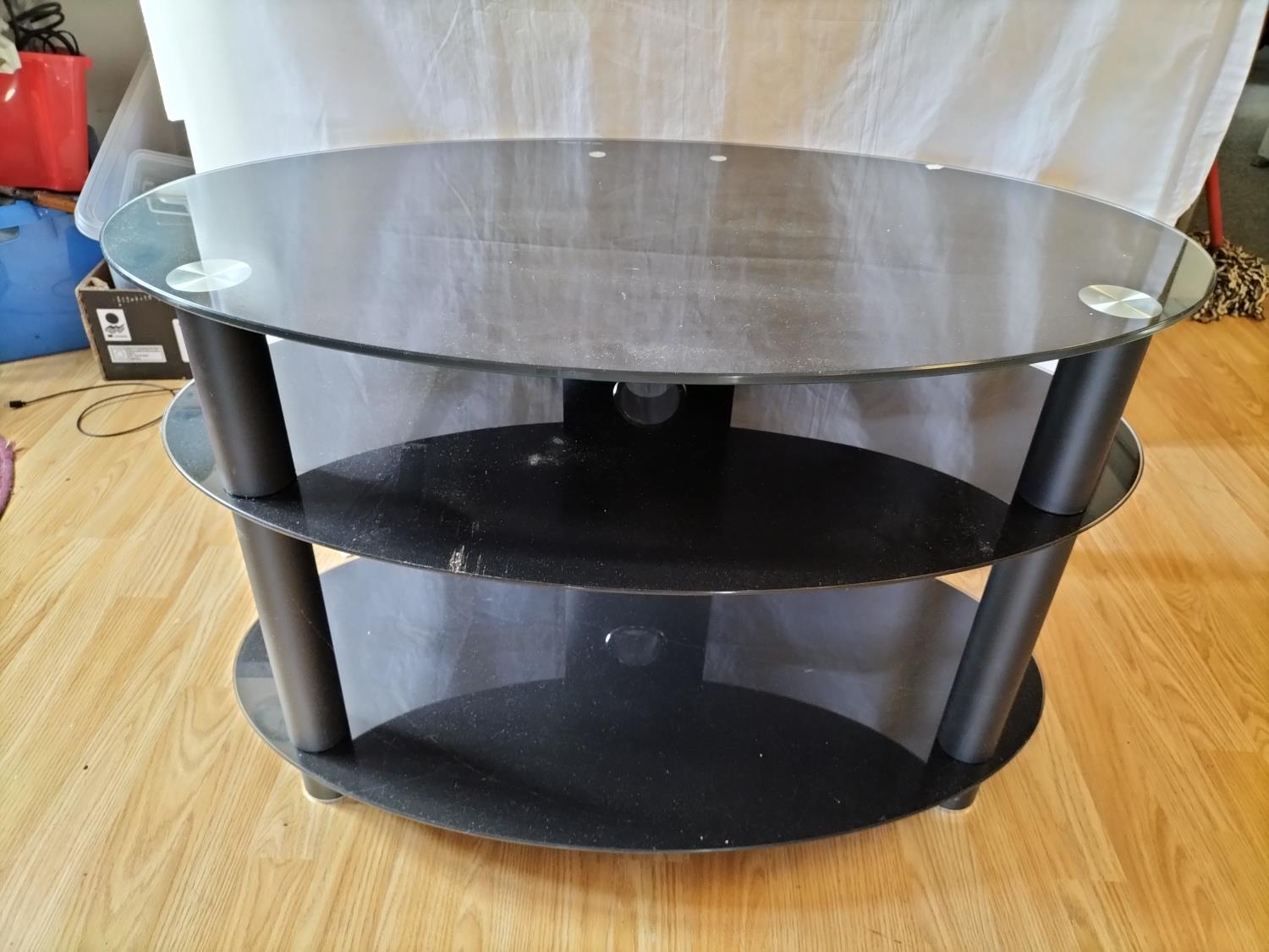 Glass 3 Tier Oval TV Stand. 80cm x 50cm x 50cm. Collection Only. Sold in Aid of Ukraine.