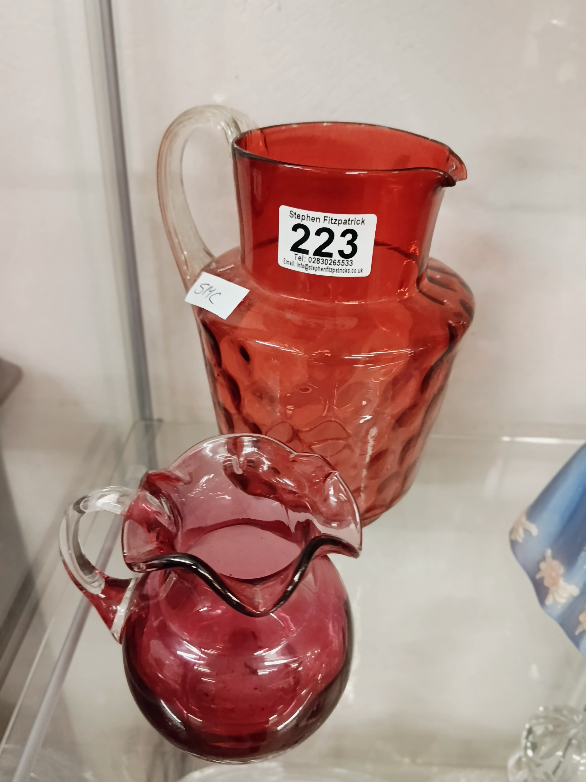 Cranberry glass Jugs x 2