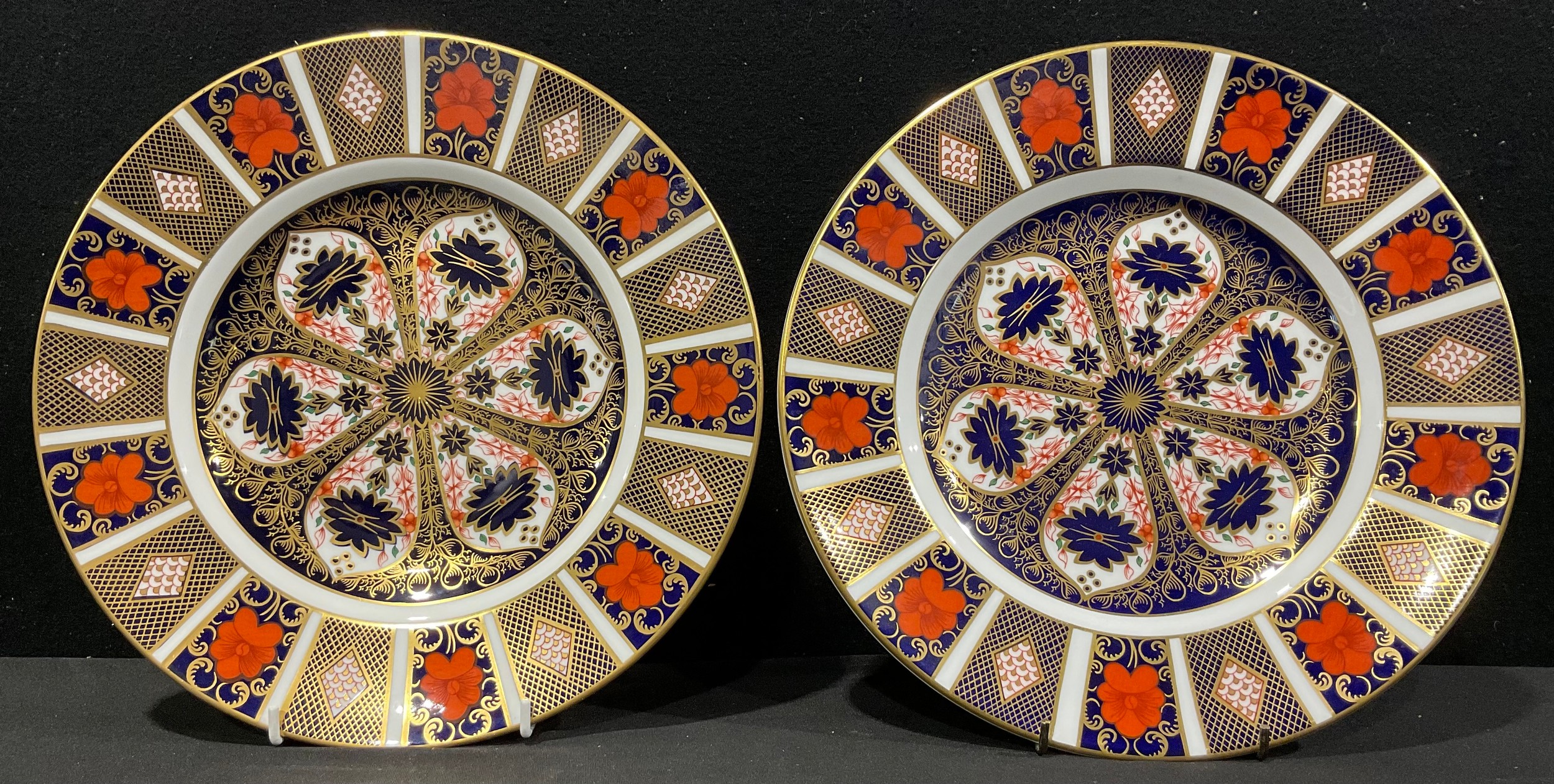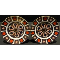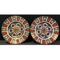 A matched pair of Royal Crown Derby Imari 1128 pattern dinner plates, 27cm, one first quality, the other a second (2)