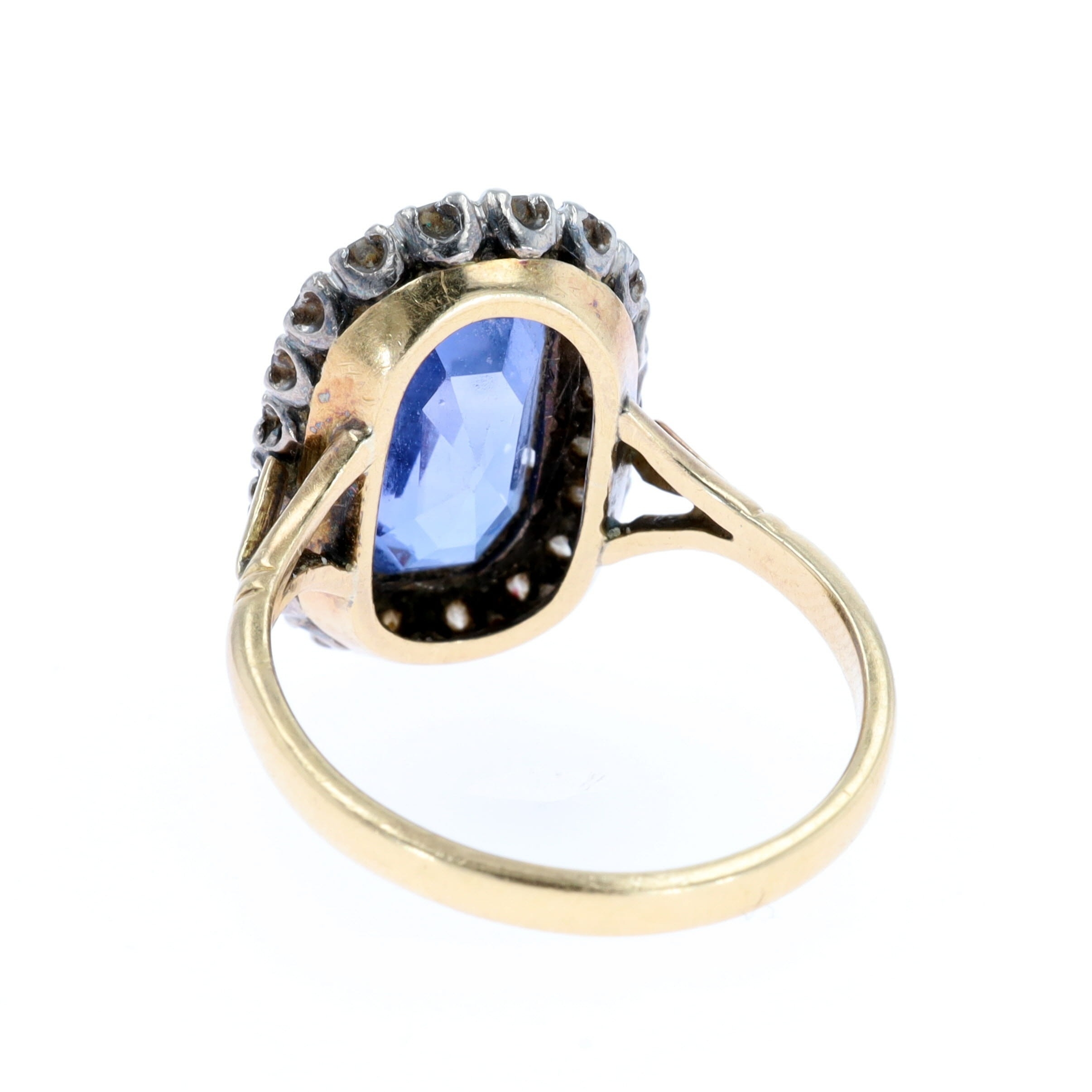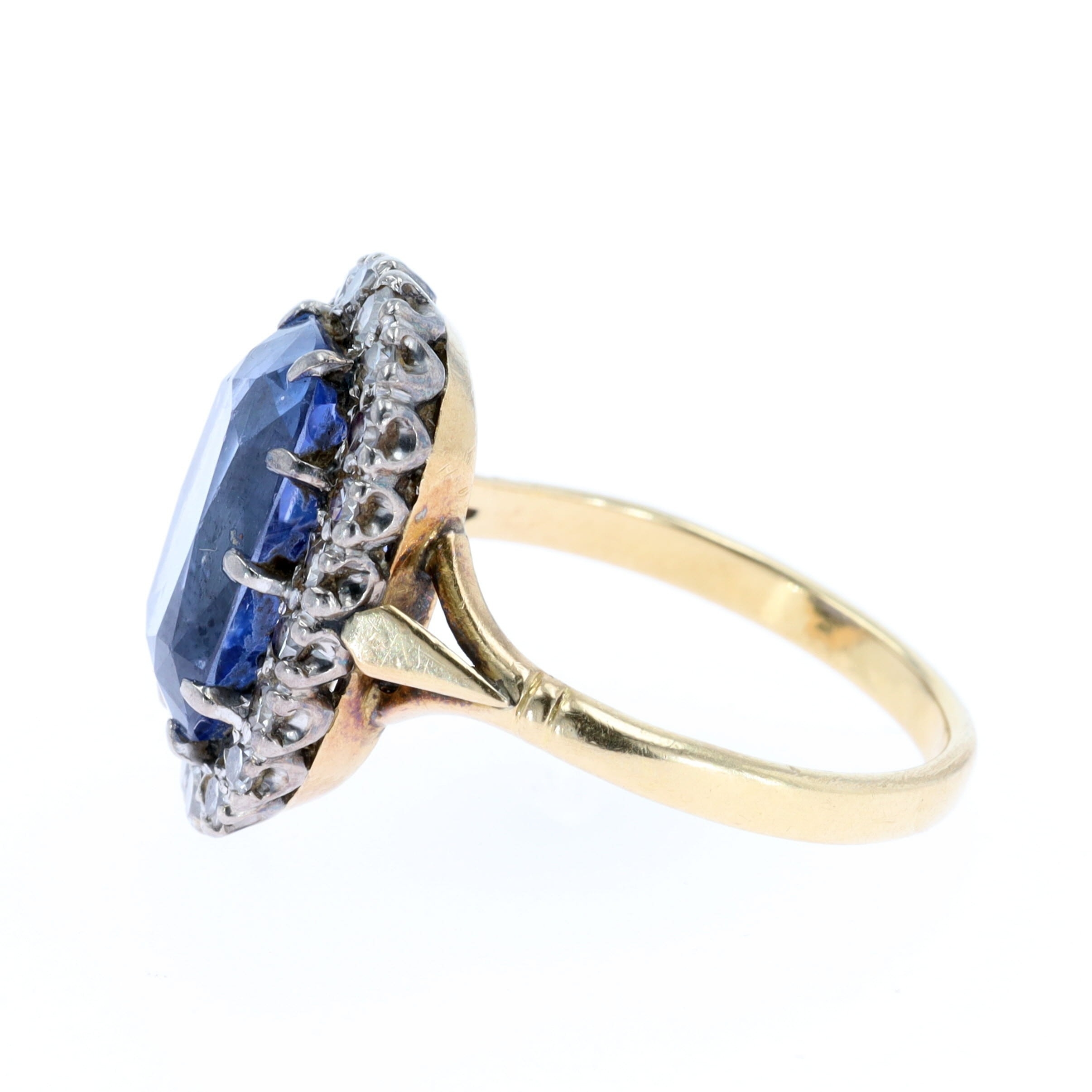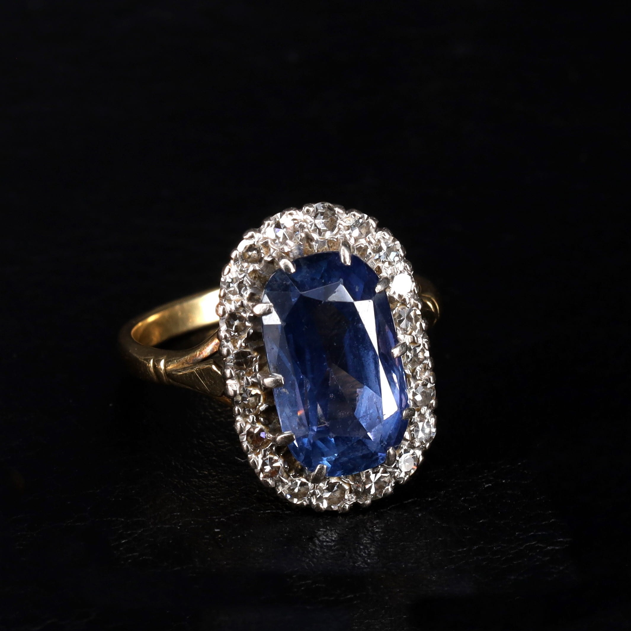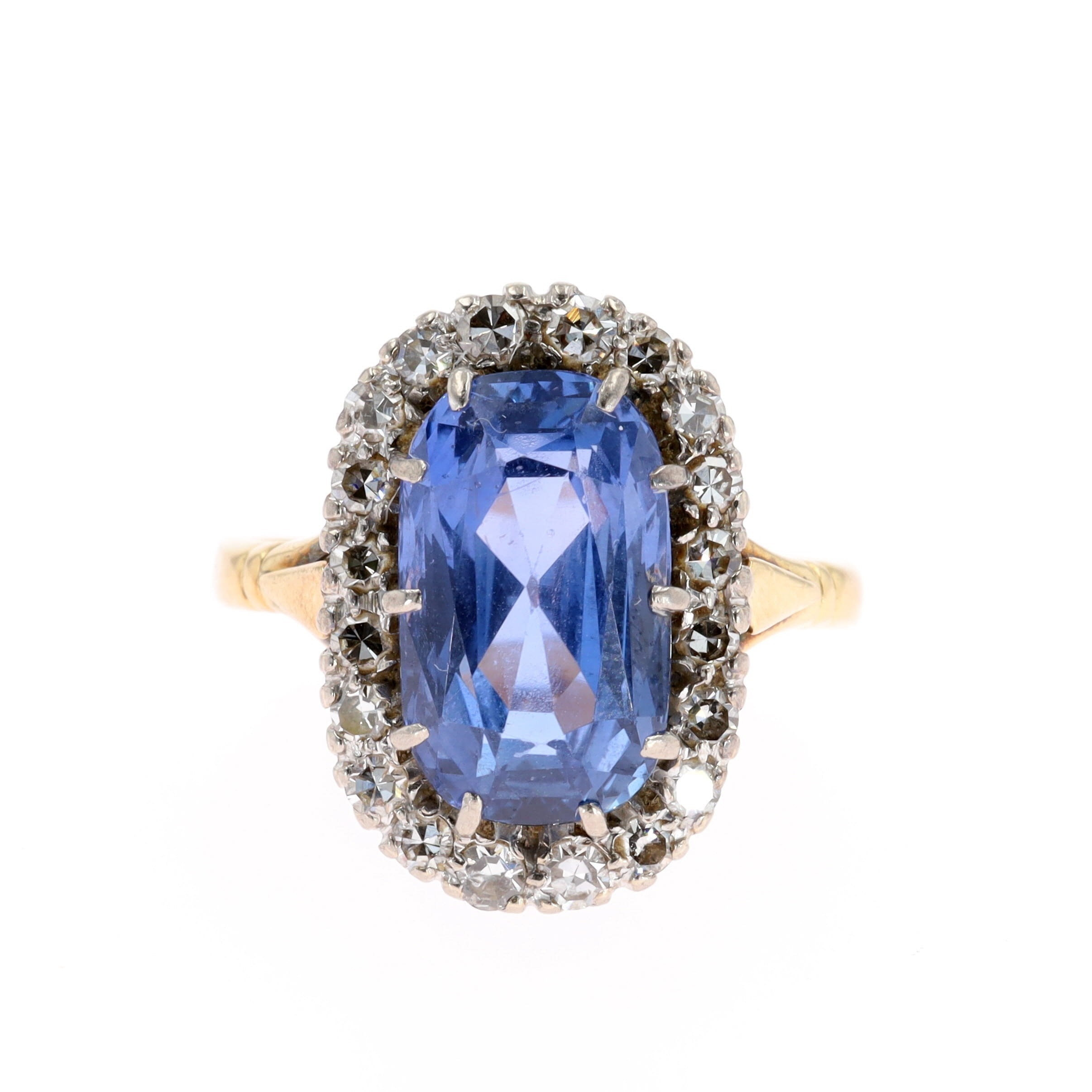Sri Lankan Cushion Cut Sapphire and Diamond Halo Gold Ring