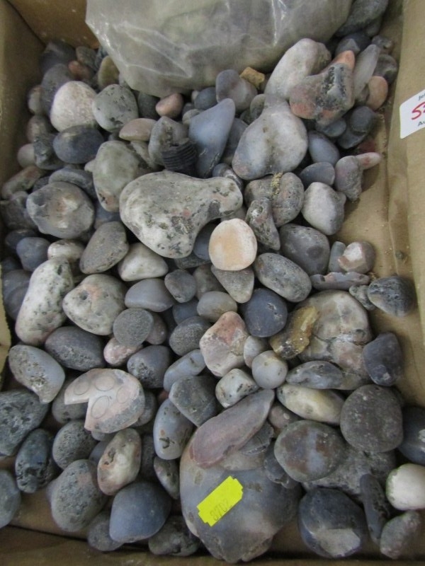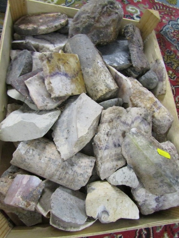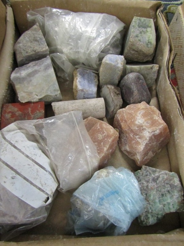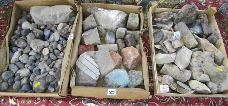 MINERALS, 3 boxes of various uncut minerals and stones, including quartz and granite