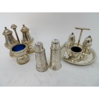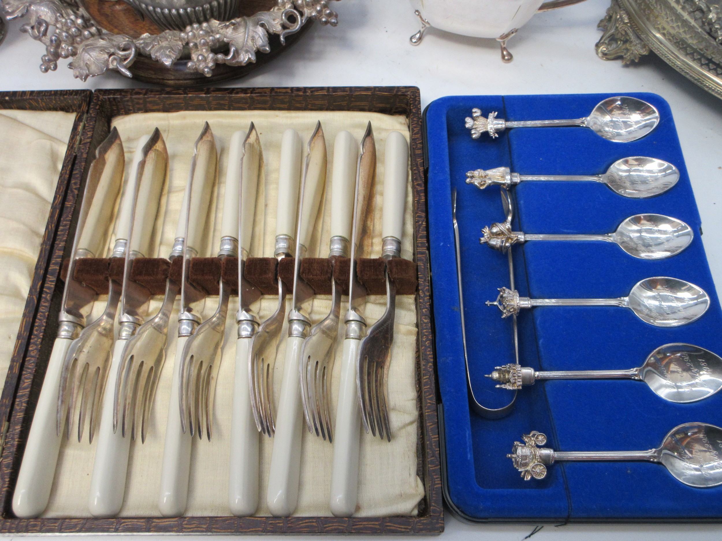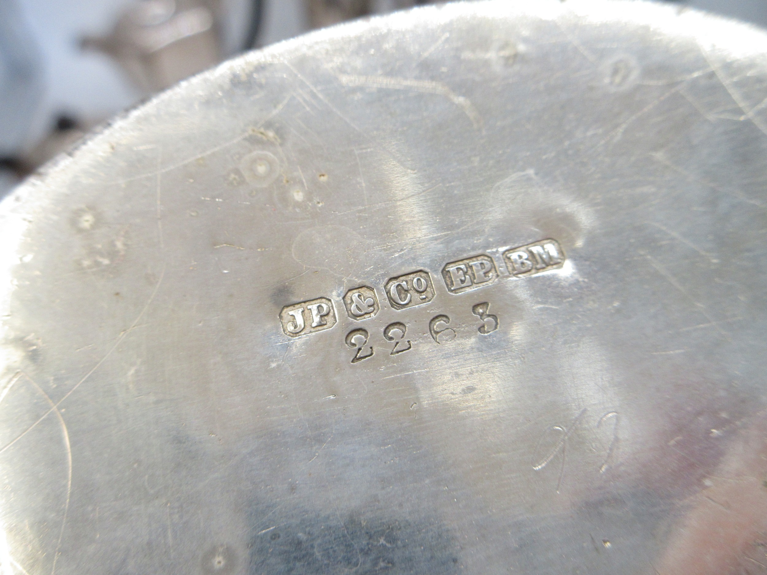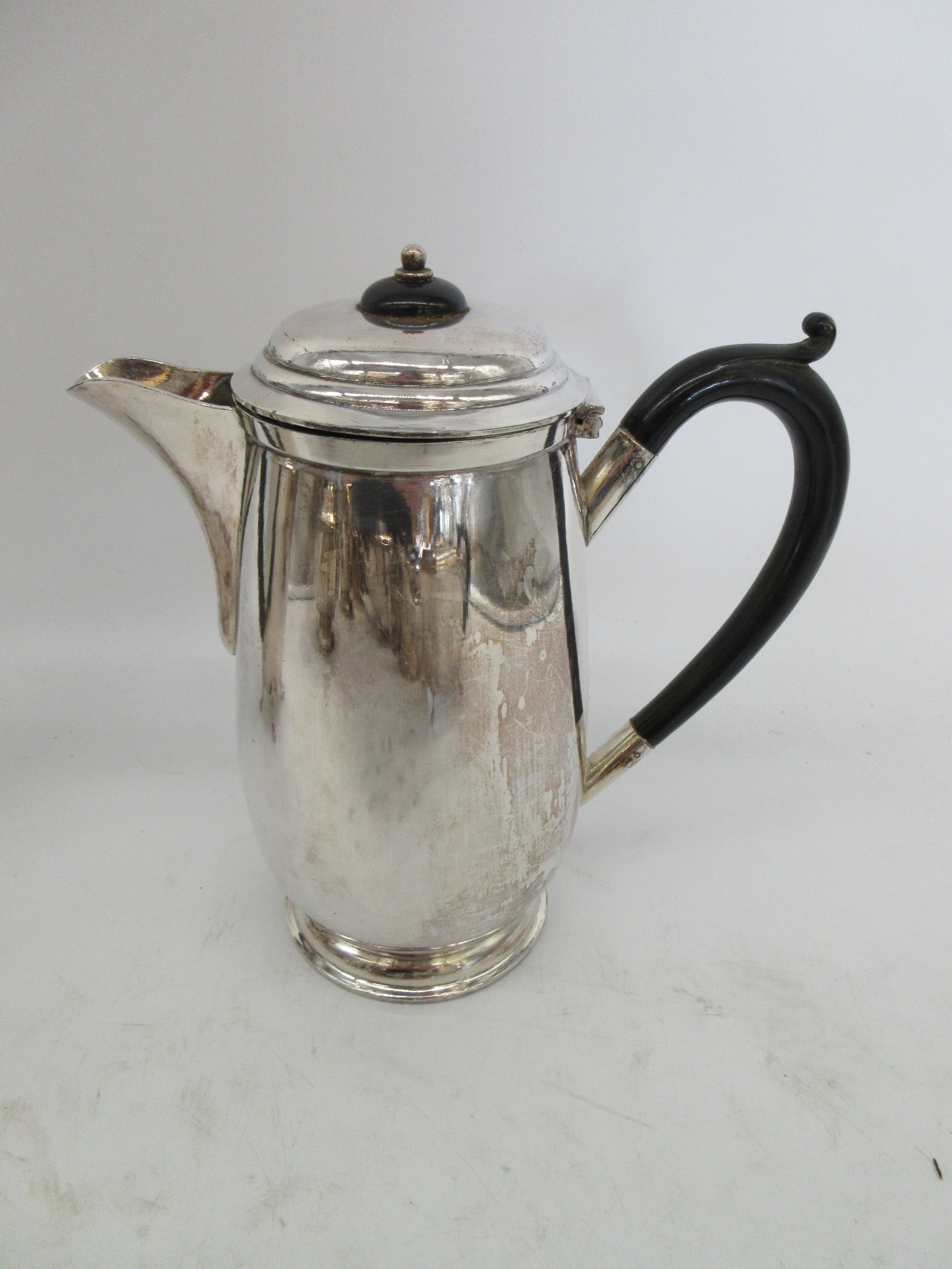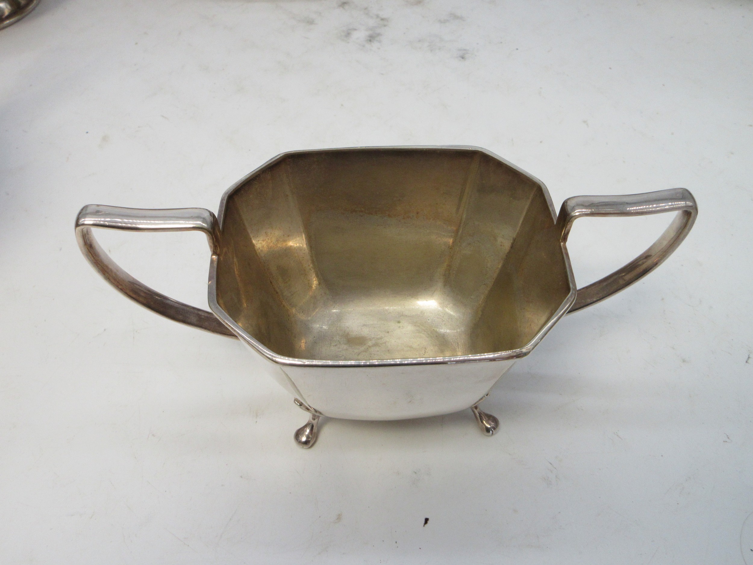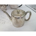 A good collection of silverplated wares incl. Atkin Bros Sheffield coffee pot, James Pinder & Co Sheffield teapot, Viners of Sheffield Alpha plate tea & coffee pots, cased EPNS fish knife and fork set, Walker & Hall teapot, Thomas Harwood & Son condiment bottle holder etc.